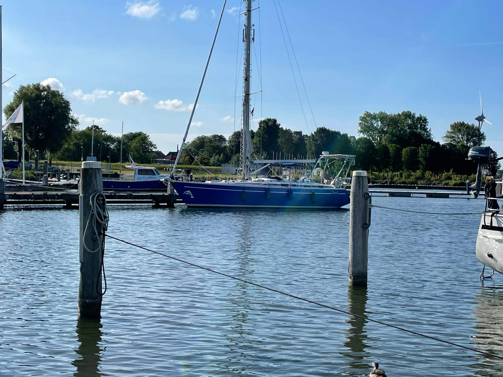 Ich habe mich in der Flevo Marina mit der Werft verabredet, weil wir vielleicht Auryn über den Winter hier lassen möchten und die einige Arbeiten für uns durchführen sollen. Es herrschen heute deutlich über 30°C aber ein angenehmer segelbarer Wind. Und so kommen wir ganz gemütlich nach 25sm in 6h in der Marina Flevo an. Leider sind die Werftleute wegen der Hitze an dem Tag schon um 15.00 Uhr gegangen und das Treffen kommt nicht zustande. Schade auch aber lässt sich nicht ändern. Die Marina ist nicht ganz so schick wie in Muiderzand aber dafür deutlich billiger. Rundherum gibt es auch nicht viel außer einem nettem Hafenrestaurant und einem Strand um die Ecke. Da es wegen der Hitze kaum auszuhalten ist, passiert außer einem Essen in dem Restaurant nicht mehr viel.