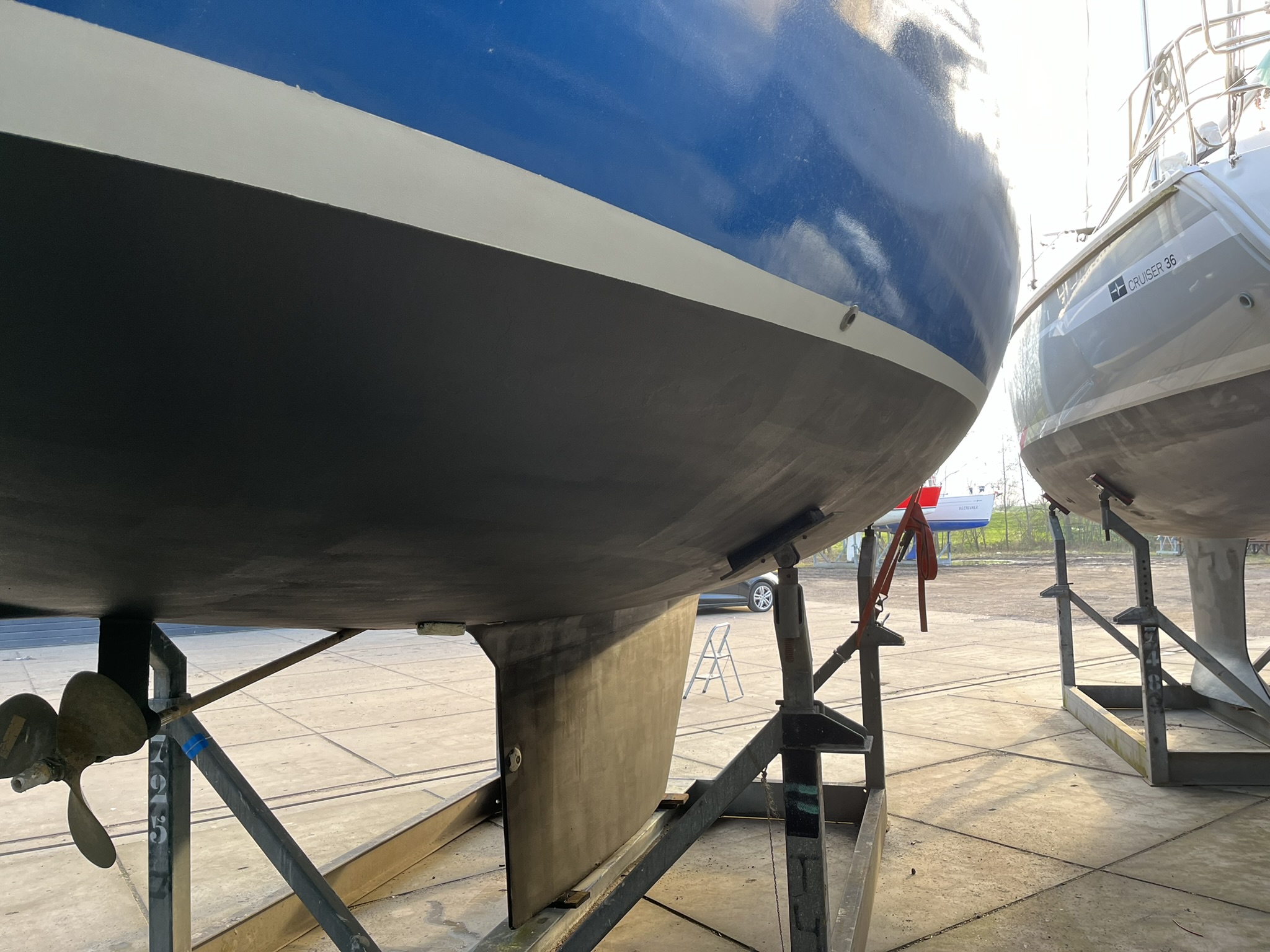 Segler wissen natürlich mehr als gut was das Wort bedeutet, aber für die Nicht-Segler eine kurze Erklärung. Antifouling ist eine Farbe die einmal jährlich, bevor das Boot wieder ins Wasser kommt, auf den Rumpf für den Bereich unter der Wasserlinie gestrichen werden sollte. Dieser hat eine abweisende Wirkung gegenüber Bewuchs, Schnecken und anderen Organismen, die sich ansonsten auf dem Rumpf des Bootes festsetzen. Es gibt unterschiedliche Arten von Antifouling. Die GFK Rümpfe der Segelboote nehmen meistens ein selbstpolierendes Antifouling welches sich während der Fahrt selber abträgt und dadurch den Bewuchs hemmt.