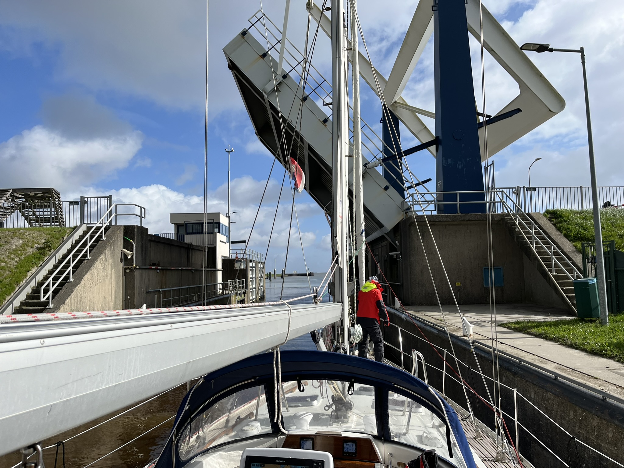 Nach 2,5 Jahren mit unserem Boot in den Niederlanden, war es nun Zeit das Land zu verlassen und neue Ufer kennenzulernen. Das Ziel ist Borkum und wir müssen durch eine Schleuse in die Nordsee. Das erste Stück ging ein gut betonntes Fahrwasser ca. 15sm durch das Wattenmeer an der Insel Schiermonnikog vorbei, bis wir die offene Nordsee erreichten. Was uns dort an Wellen erwartete war deutlich mehr als gedacht. Der Wind war wie angekündigt 4-5 Bft und kam wie geplant aus Westen. Die See war allerdings sehr aufgewühlt und kabbelig und außerdem kam der Wind genau von hinten, so dass an segeln erstmal nicht zu denken war. Wir quälten uns durch die See und brauchten am Ende für die 38sm fast 10 Stunden da uns der Strom, vor allem auf dem letzten Stück, schwer abgebremst hat. Das letzte Stück an der Westseite von Borkum hinunter in den Hafen war mit einem netten Sonnenuntergang und beruhigter See wieder etwas versöhnlich. Der Hafen ist schmucklos, hat aber alles was man benötigt.
