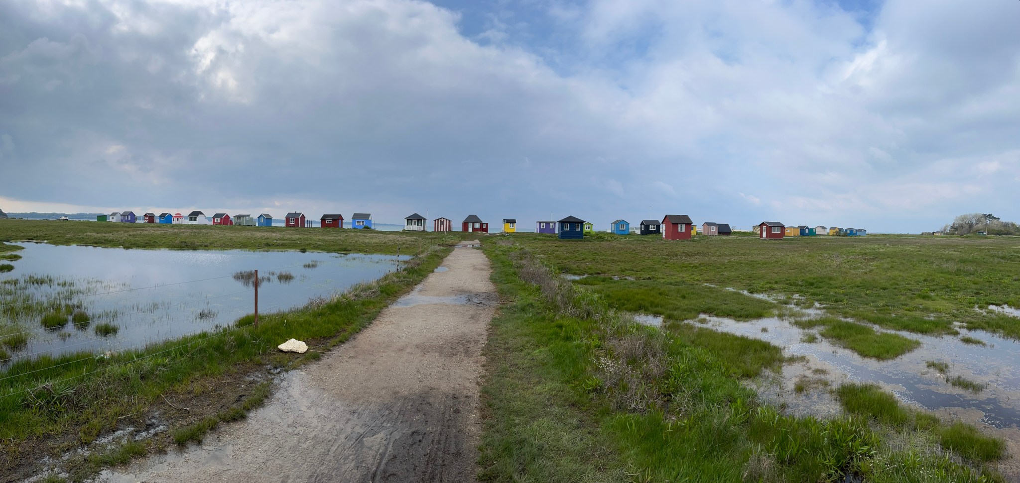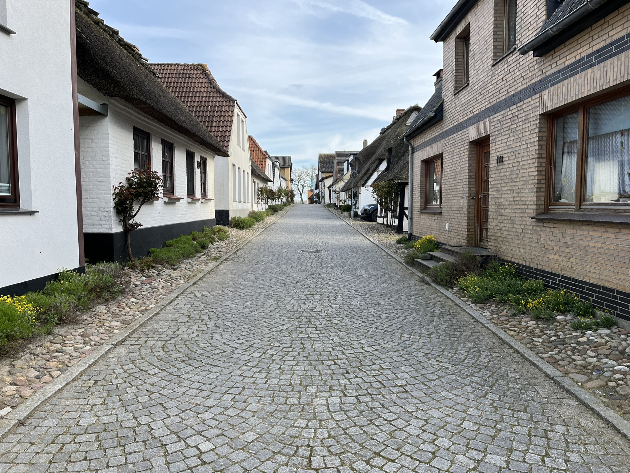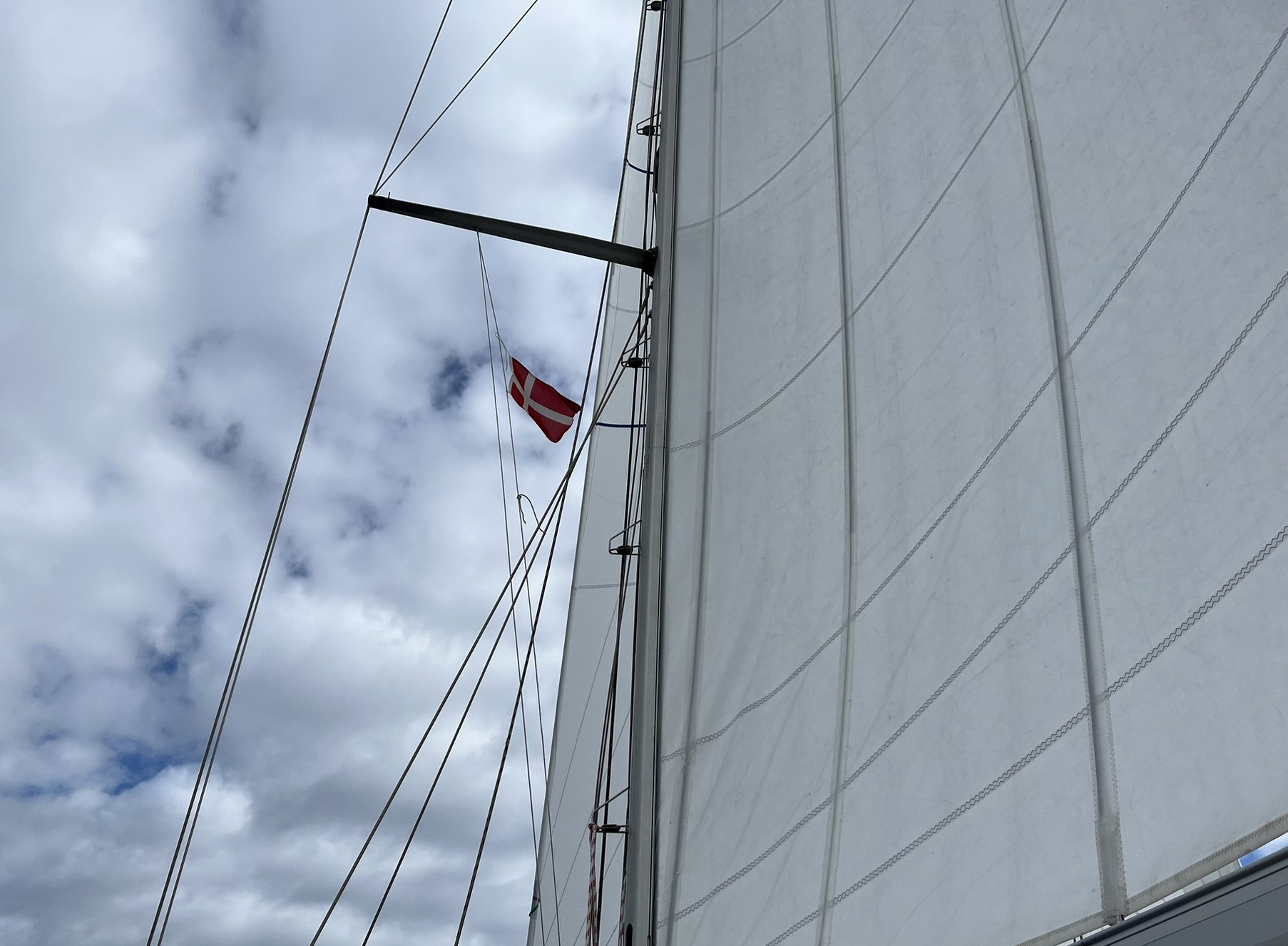 Der folgende Tag hoch nach Dänemark geht als der mit Abstand beste Segeltag auf dieser Tour bisher in die Analen ein. Die ganze Zeit halber Wind aus Backbord, später aus Steuerbord zwischen 4 und 5Bft relativ konstant bis zum Ziel. Guter Brauch ist es, dass man als ausländische Segelyacht immer neben dem Mast die Flagge des Landes hisst welches man besucht. Das erste Ziel in Dänemark ist der Ort Ærøskøbing (sprich Ärösköbing) auf der Insel Ærø. Ærøskøbing gilt als die malerischste Stadt der Insel und hat den Beinamen Märchenstadt. Sie ist 750 Jahre alt und besticht durch die vielen kleinen bunten Häuser in der Altstadt. Wir machen im alten Handelshafen fest wo noch vier andere Segler liegen und bewegen uns am Abend wegen Dauerregen kaum noch von Bord. Dafür ist der nächste Tag fast ohne Regen und wir genießen ihn mit Spaziergängen durch den Ort und einer Wanderung die Küste hinauf. Abends gönnen wir uns Fish and Chips von der Fischbude am Hafen.