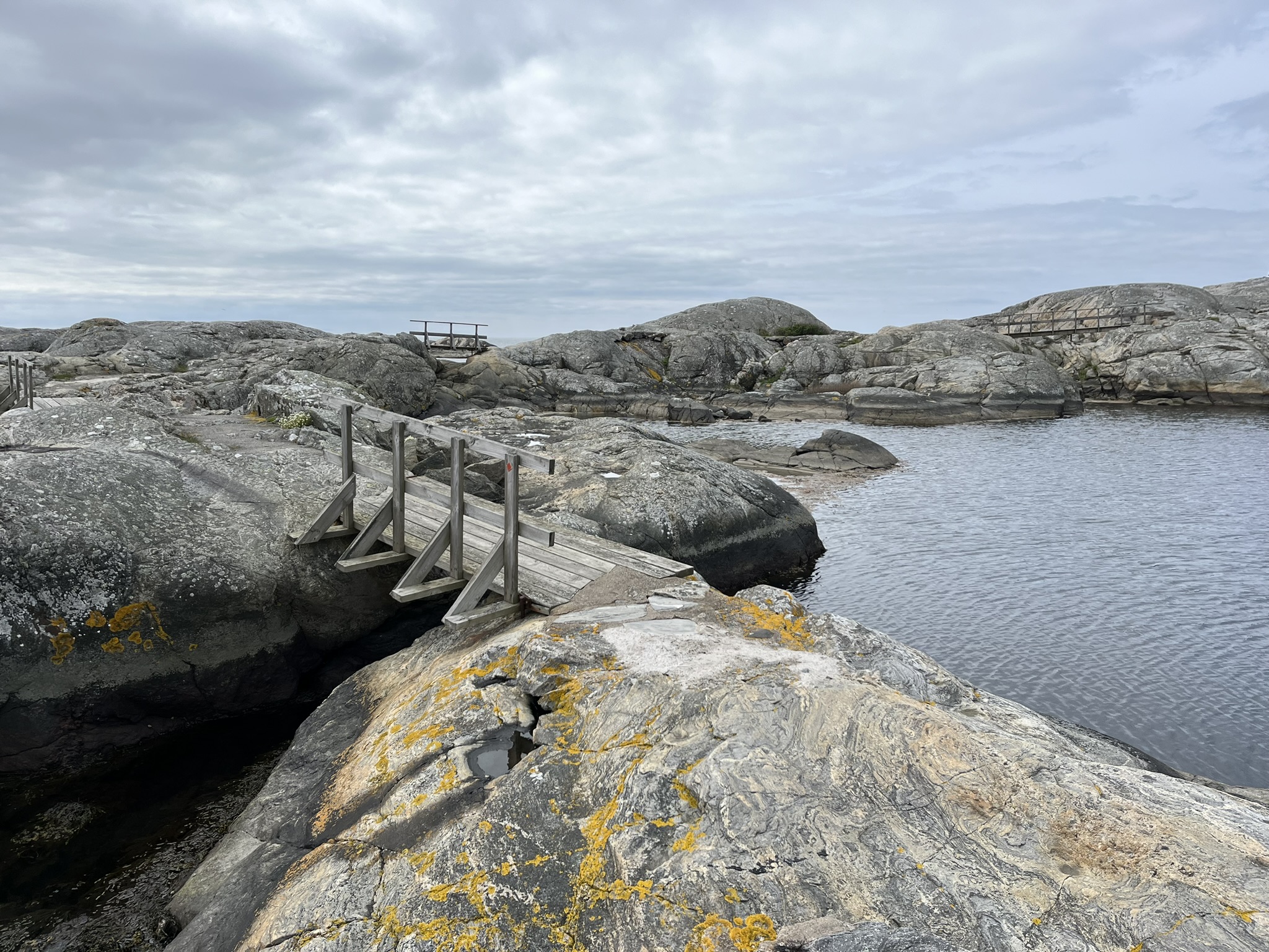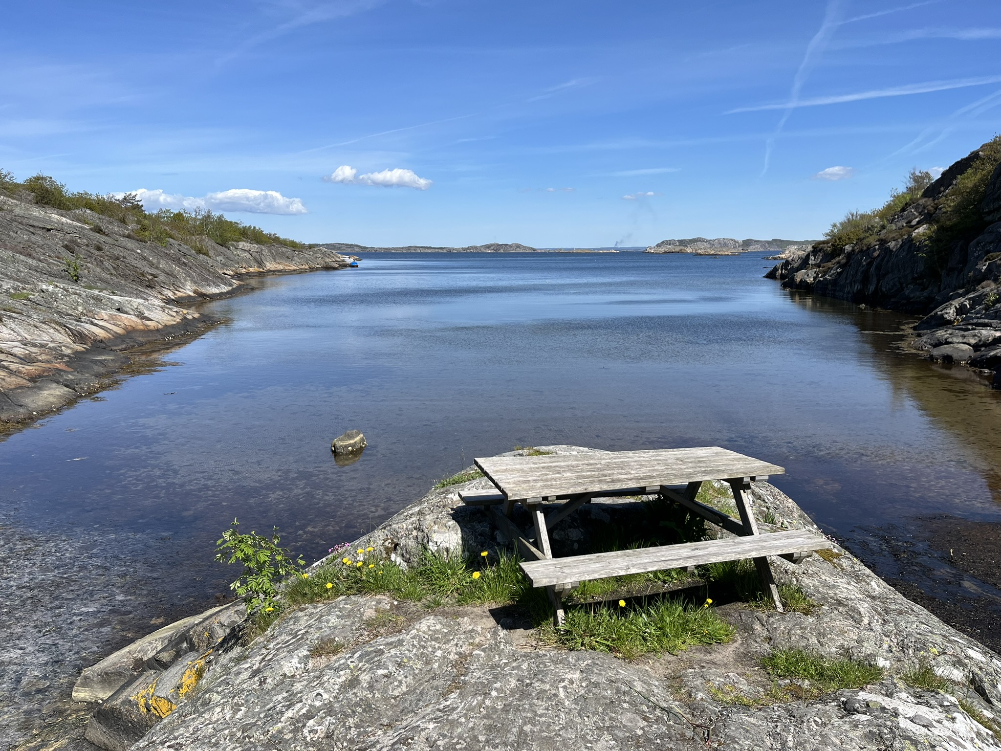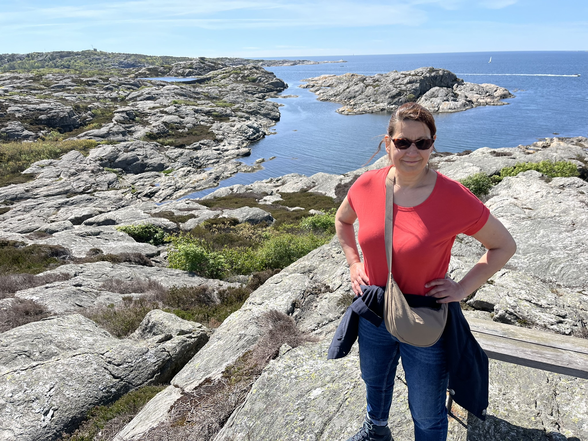 Am nächsten Tag wollen wir die andere Insel der Stadt erkunden, die den interessanten Namen Koö trägt. Auch hier gibt es einen Rundweg der um die Insel führt. Die Schären auf dieser Seite sind noch mal etwas zerklüfteter und wir haben nicht nur einmal den Weg verloren und mussten wieder umkehren. Am Ende ist es aber an vielen Stellen dann auch wieder dem Klientel auf den Inseln gerecht gemacht worden, die unwegsameren Stellen sind mit Holztreppen und Stegen zum einfacheren Laufen ausgestattet. Trotzdem hat es uns sehr gut gefallen was auch an den wenigen Leuten liegt die zur Zeit hier sind. Im Hochsommer möchten wir eher nicht hier sein. Was den guten Eindruck unterstützt ist das Wetter, volle Sonne und 18°, echt super. Am Abend kommt dann wieder Besuch. Nataschas alte Freundin Theresa die seit Ewigkeiten in Schweden lebt, ist die weite Strecke von Örebro herübergekommen und bleibt auch über Nacht.