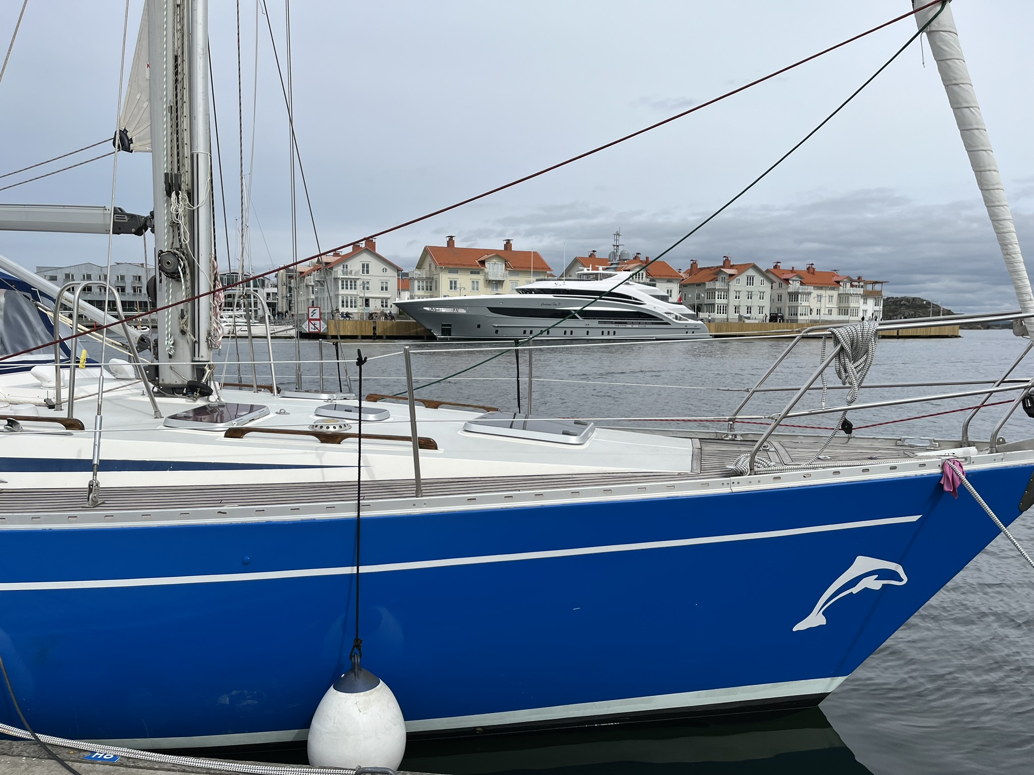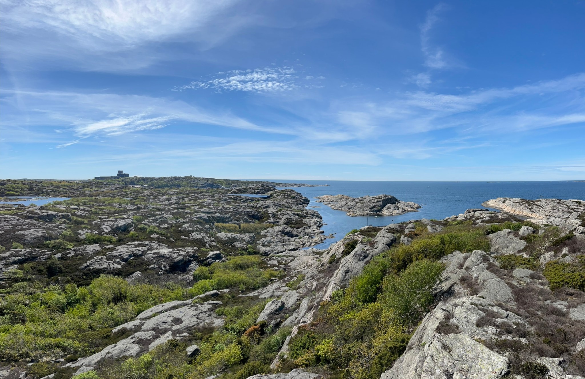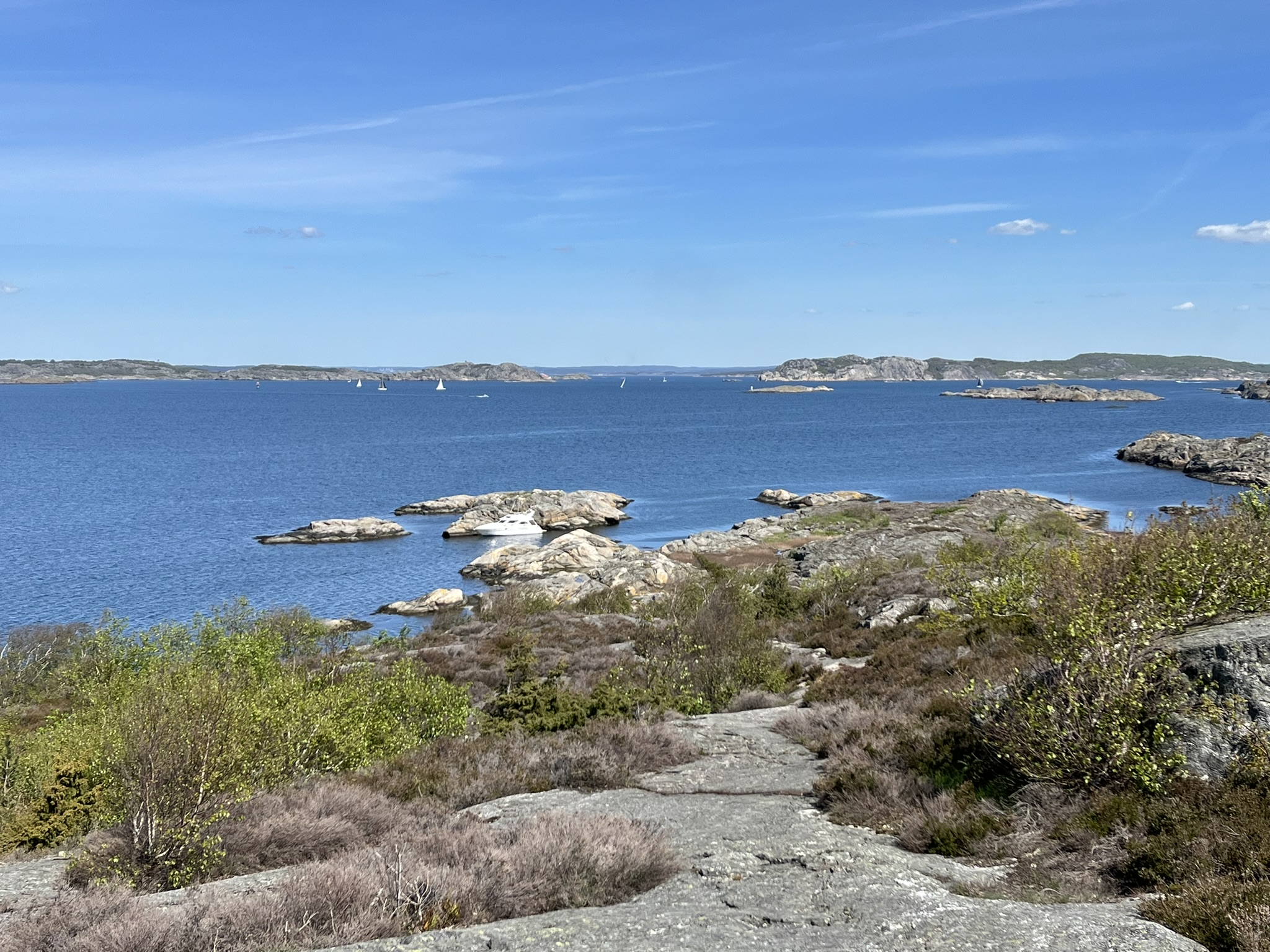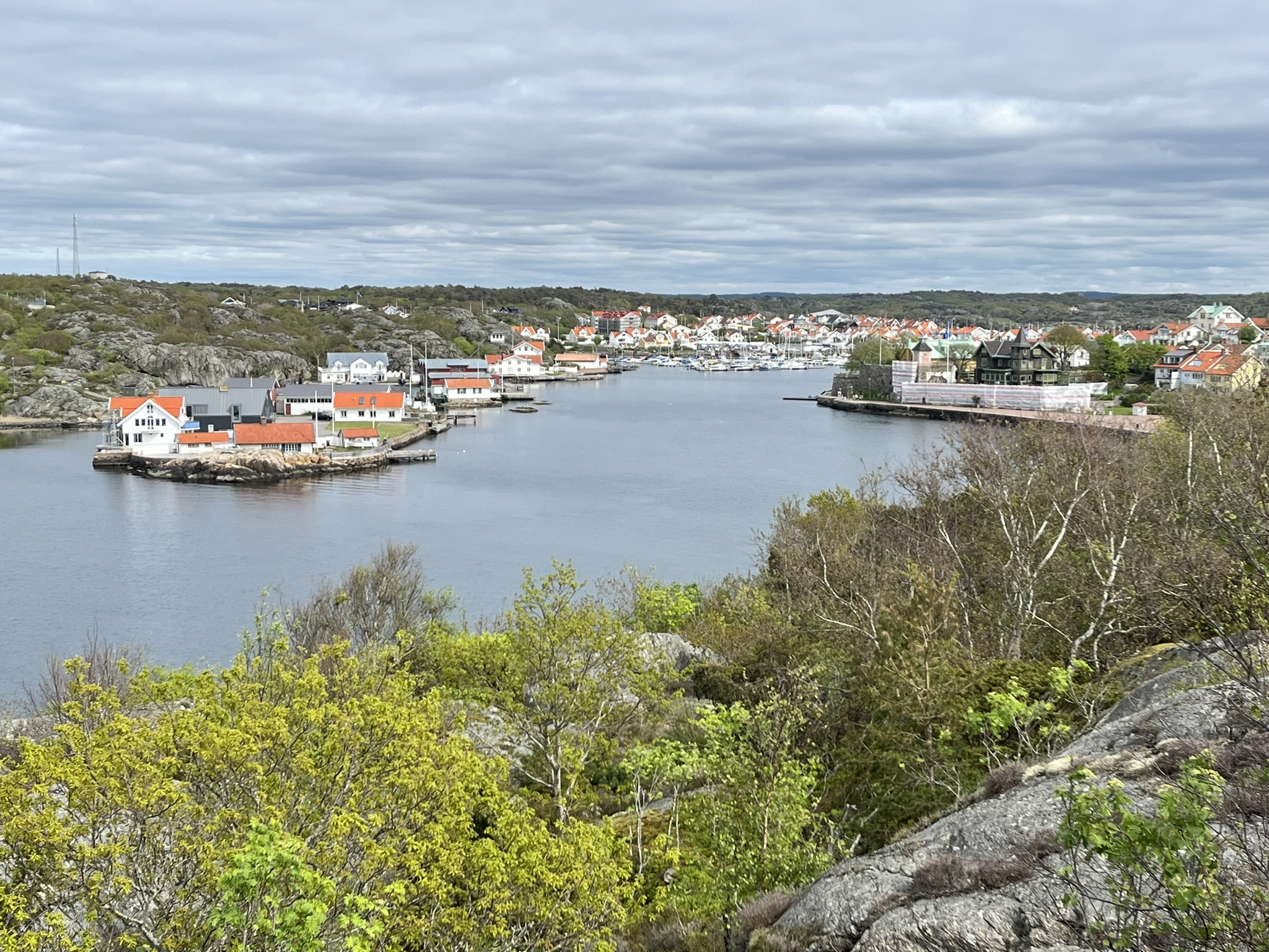 Wie erwartet ist Marstrand eine andere Welt als der Teil der Schären die wir bisher kennengelernt haben, man sagt quasi das St. Tropez der westlichen Schären. Die Stadt besteht im Prinzip aus zwei Inseln die über eine Fähre miteinander verbunden sind. Wir sind im Segelhafen auf dem östlichen Teil und kommen uns zwischen den großen und meistens auch deutlich jüngeren Booten etwas anders vor. Auffällig ist, dass die deutlich Mehrzahl der Boote keinen Mast hat, also reine Motorboote sind. Das ist im Prinzip nicht so unser Dingen aber die paar Tage werden wir uns damit arrangieren können. Zum Glück ist noch Vorsaison, man bekommt problemlos einen Platz im Hafen und die Umgebung ist nur mäßig voll. Und natürlich schick ist es hier, auch die Leute machen einen gediegenen Eindruck. Nachdem wir den Segelhafen zum ersten Mal verlassen haben und eine Wanderung über die Insel machen, verfliegt der skeptische Eindruck sehr schnell. Es ist wunderschön, die Wege über die Schären und durch die Wälder sind sehr natürlich angelegt und man hat phantastische Ausblicke über die vielen Buchten. Wir laufen fast 17.000 Schritte über Stock und Stein und gehen am Nachmittag noch um die Burg Carlsten herum, die über diesem Teil der Stadt auf der Inseln Marstrandsö thront. Am Abend bekommen wir Besuch von Nataschas alter Arbeitskollegin Rita und ihrem Mann Lars die seit über 16 Jahren in Schweden leben und arbeiten. Wir gehen nett zusammen essen, klönen über die alten Zeiten und haben einen sehr schönen Abend gemeinsam.