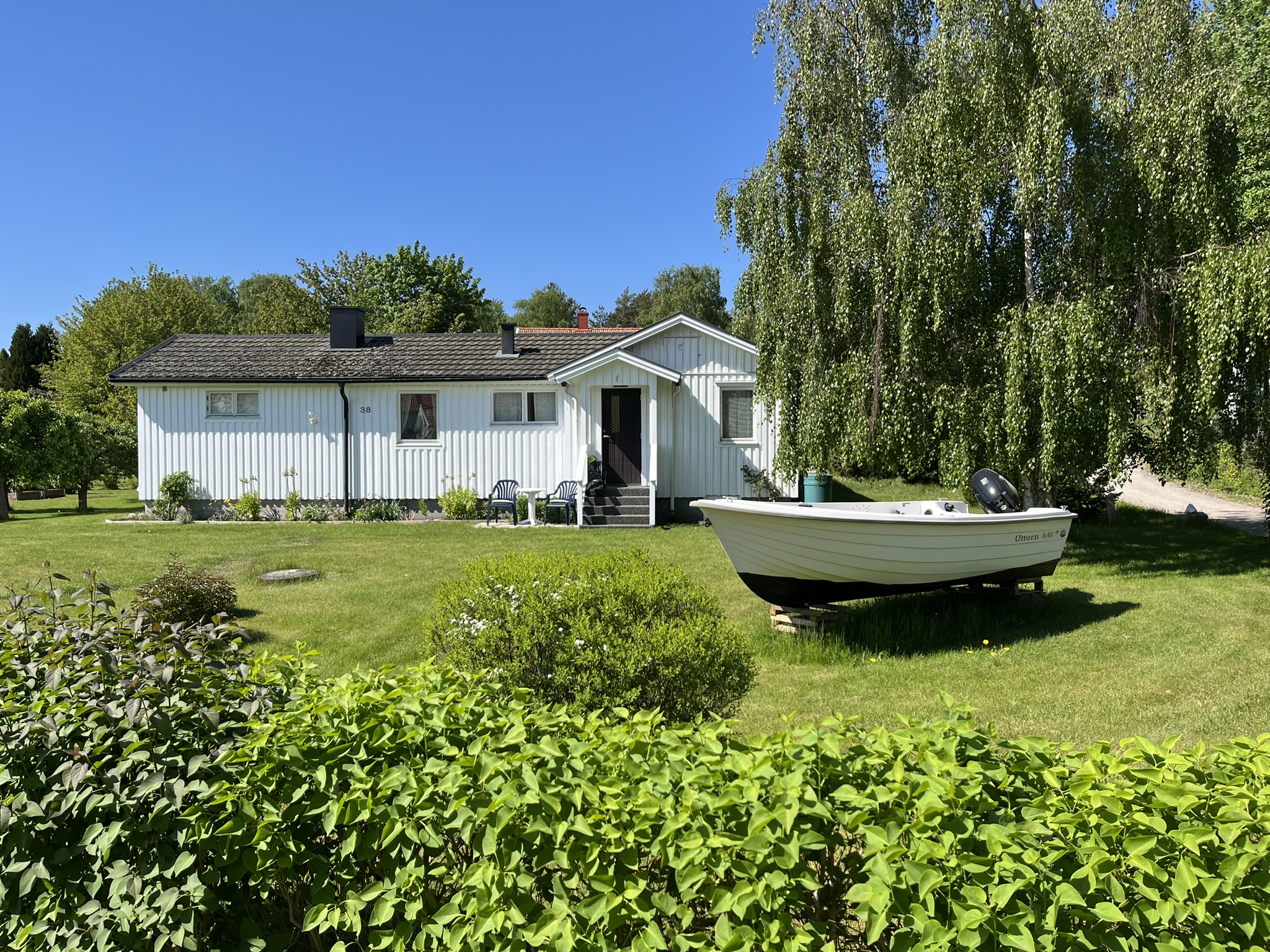 Den Samstag nutzen wir dann für eine Wanderung um die gesamte Südinsel, und haben am Ende 15km in den Stiefeln. Der Weg ist wunderschön und sehr abwechslungsreich. Es geht erst am Strand entlang, dann kommen die unvermeidlichen Schären mit den Klippen. Dann geht es in den Wald (mit sehr gefräßigen Moskitos) und über Felder und Wiesen bis zum Hafen. Wir sitzen draußen in der Sonne mit Eis und Kaffee und finden das im Moment alles echt prima läuft. Zwischendurch kommen wir immer wieder durch kleine Siedlungen, wo an allen Ecken und Ende gewerkelt wird, um Häuser und Gärten fit für den Sommer zu machen. Am späteren Nachmittag gibt es an Bord noch etwas Bundesliga mit einer kleinen Meisterfeier an Bord.