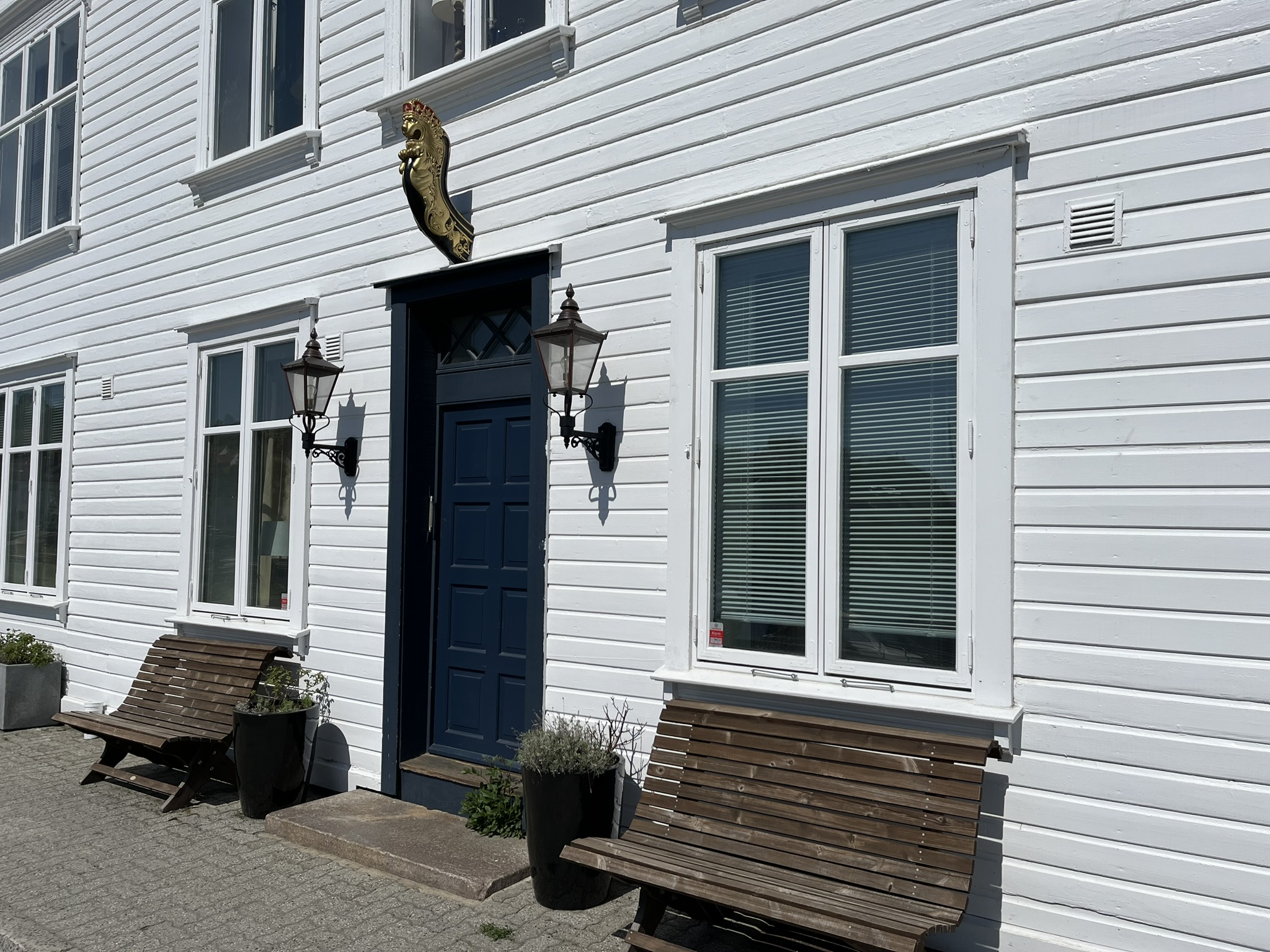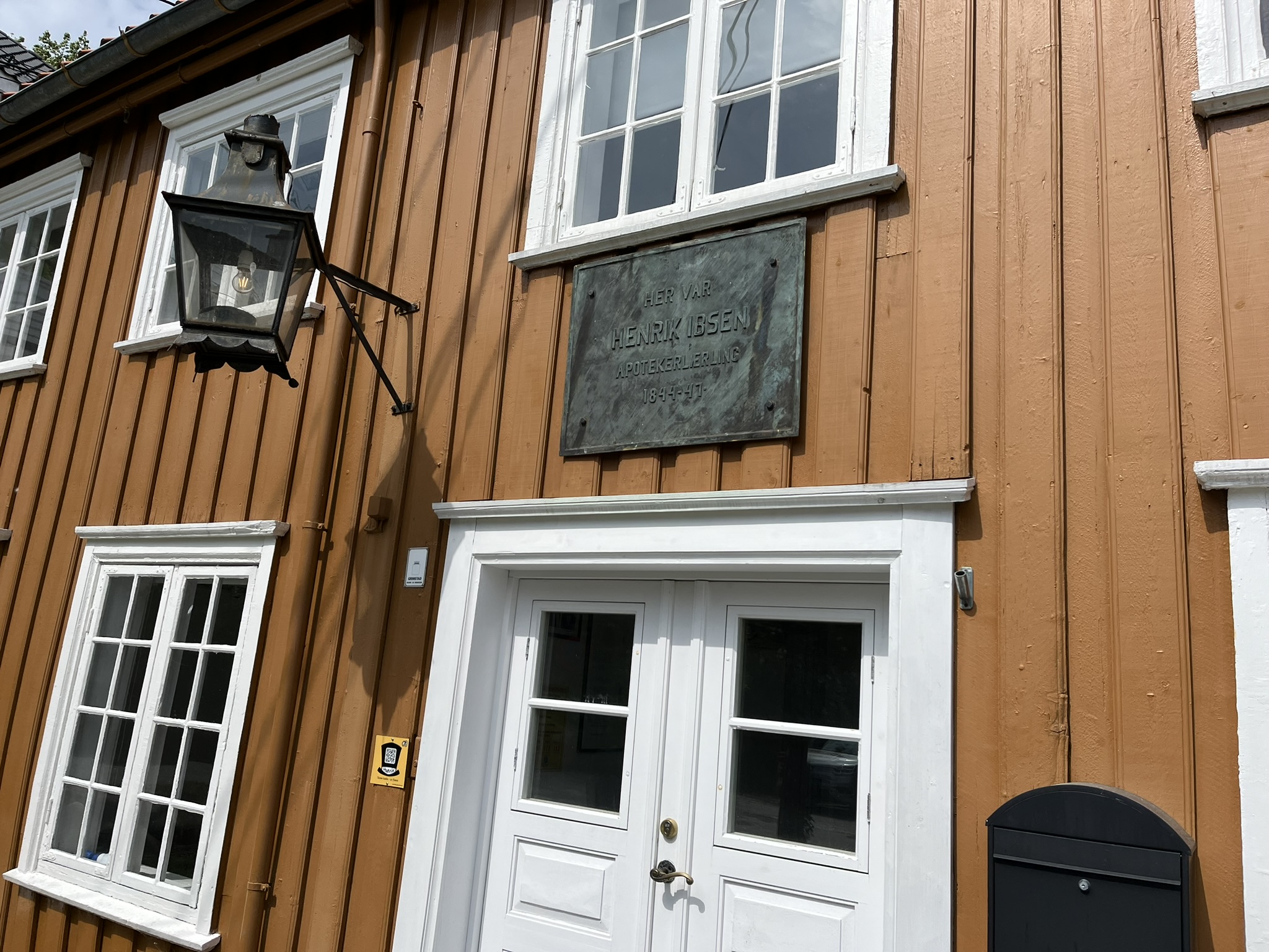 Auch in Grimstad gibt es einen kleinen Gästehafen wo aber auch nur 3 andere Boote lagen. Die Stadt hat nicht ganz so viel Charme wie Risør und besticht vor allem durch ihr kleines Einkaufsviertel direkt hinter dem Hafen. Wir nutzen den Morgen erstmal für einen Großputz des Bootes vor allem von Innen. Danach gehen wir etwas das Städtchen erkunden, und laufen auf einen Berg um die unvermeidlichen Panoramabilder der Stadt zu machen. Henrik Ibsen hat 1844 ein paar Jahre hier eine Ausbildung in einer Apotheke gemacht was etwas übertrieben herausgestellt wird. Es gibt nach ihm benannte Straßen, Plätze, Cafés und natürlich die Apotheke.