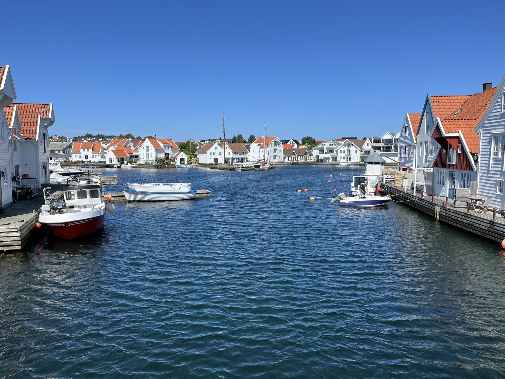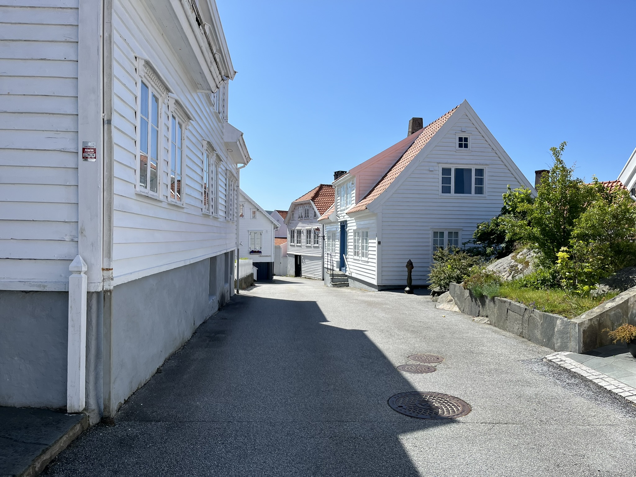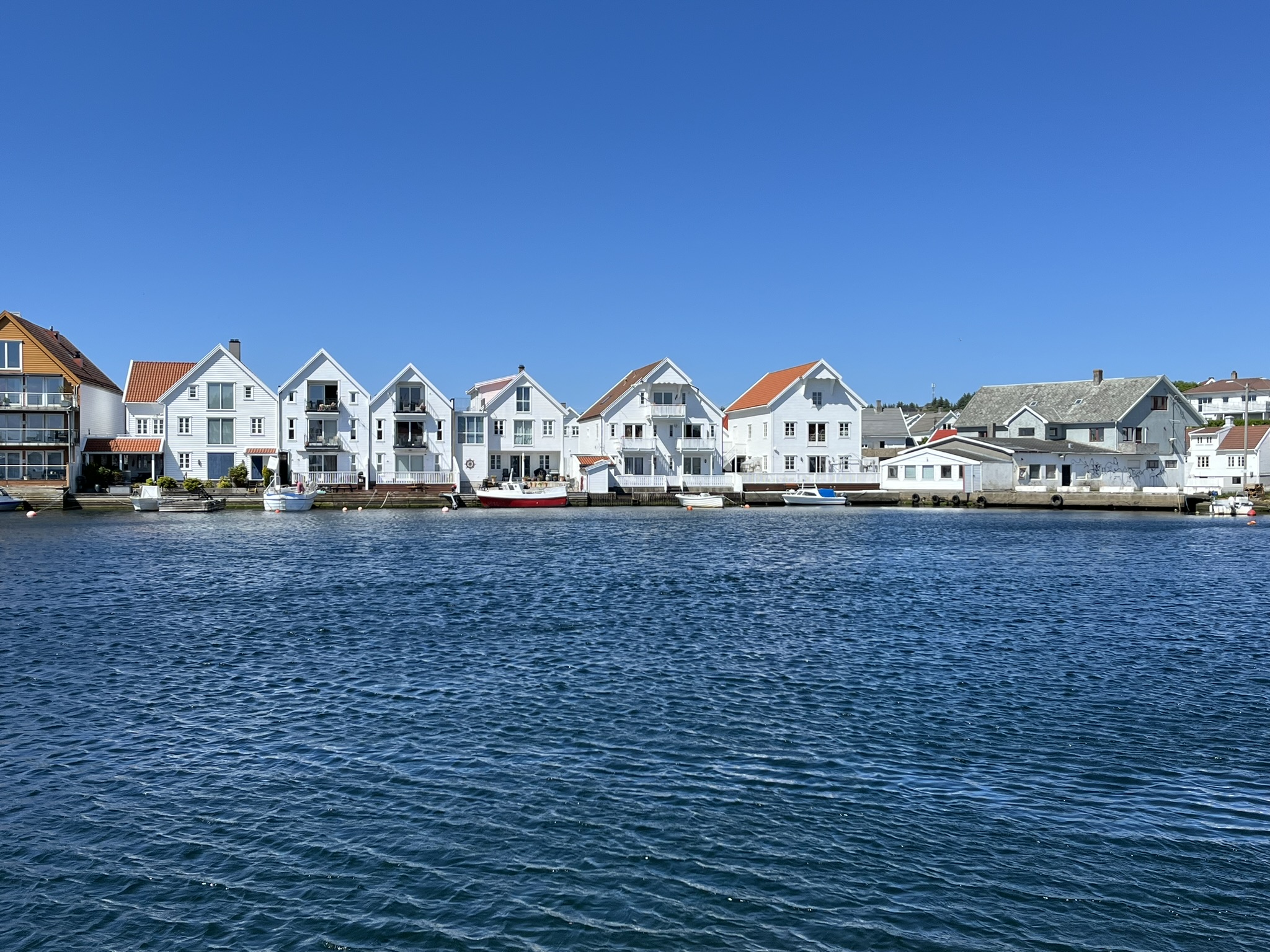 Inzwischen haben wir die Starkwindphase in Haugesund abgewettert, und uns bis hierhin noch ganz gut beschäftigen können. Wir sind zum Beispiel mit dem Bus in den Süden der Insel Karmøy gefahren, und haben dem wunderschönen Ort Skudeneshavn einen Besuch abgestattet. Er besteht im Prinzip aus einem tief ins Landesinneren gehendem Hafen, um den herum weiße Holzhäuser mit privaten Bootsstegen sind. Dann gibt es noch eine Altstadt die auch aus ausschließlich weißen Häusern besteht. Wir haben noch eine Wanderung um den Ort herum gemacht und mussten dafür durch diverse Sumpfgebiete inkl. nasser Füße wandern.
