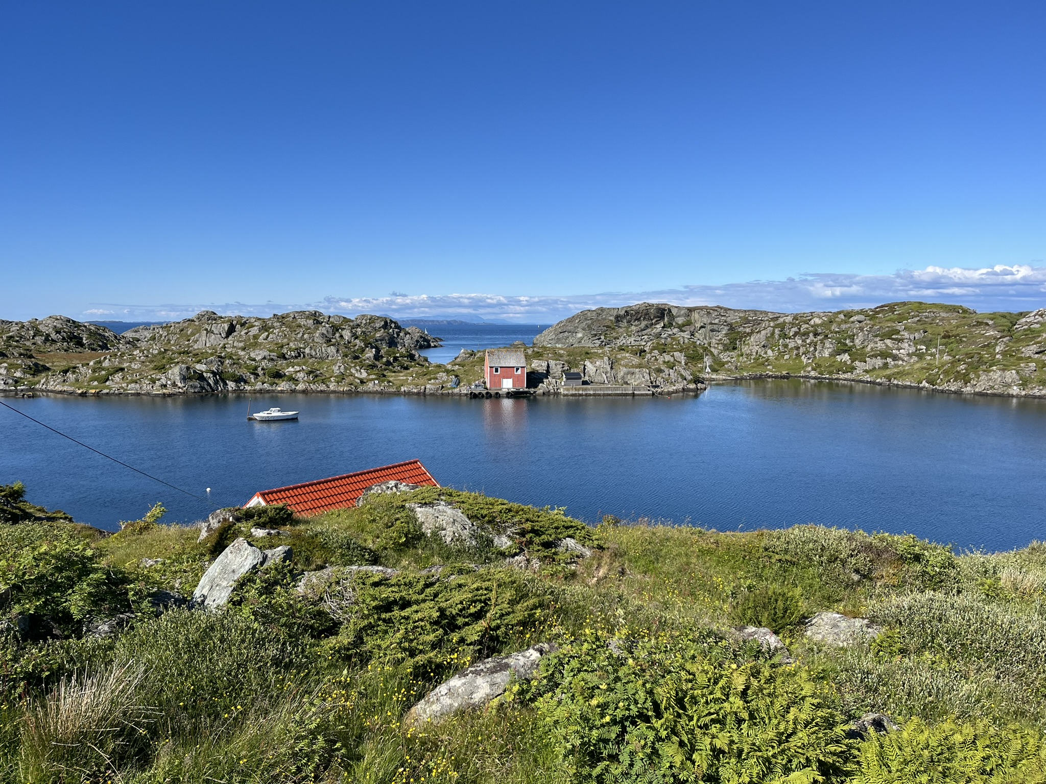 Gestern war der Wind dann vorbei, und wir wollten eigentlich auf die Shetland Inseln rüberfahren. Die gute Nachricht, der Wind hat gedreht und geht in die richtige Richtung. Die schlechte Nachricht, er wird morgen mit 6-7Bft für unseren Geschmack zu stark. Da wir von Haugesund so langsam die Nase voll haben, fahren wir noch rüber auf die vorgelagerte Insel Røvær, sozusagen als krönender Abschluss von Norwegen. Diese hat, wie so viele norwegische Inseln, innen gelegen eine geschützte Bucht mit kleinem Hafen. Es leben 110 Menschen hier und es ist mal wieder bezaubernd. Am Hafen gibt es 2 Stege die von Besuchern benutzt werden können. Die geringe Hafengebühr wird in einen Umschlag gesteckt und in den Briefkasten geworfen. Es gibt einen kleinen Supermarkt und sogar ein Museum was über die Meere informiert. Wir laufen wieder quer über die Insel und klettern über die Schärenlandschaften. Zum Abschluss unserer 4 Wochen in Norwegen passt das super, aber jetzt freuen wir uns darauf auch mal was anderes sehen zu können.