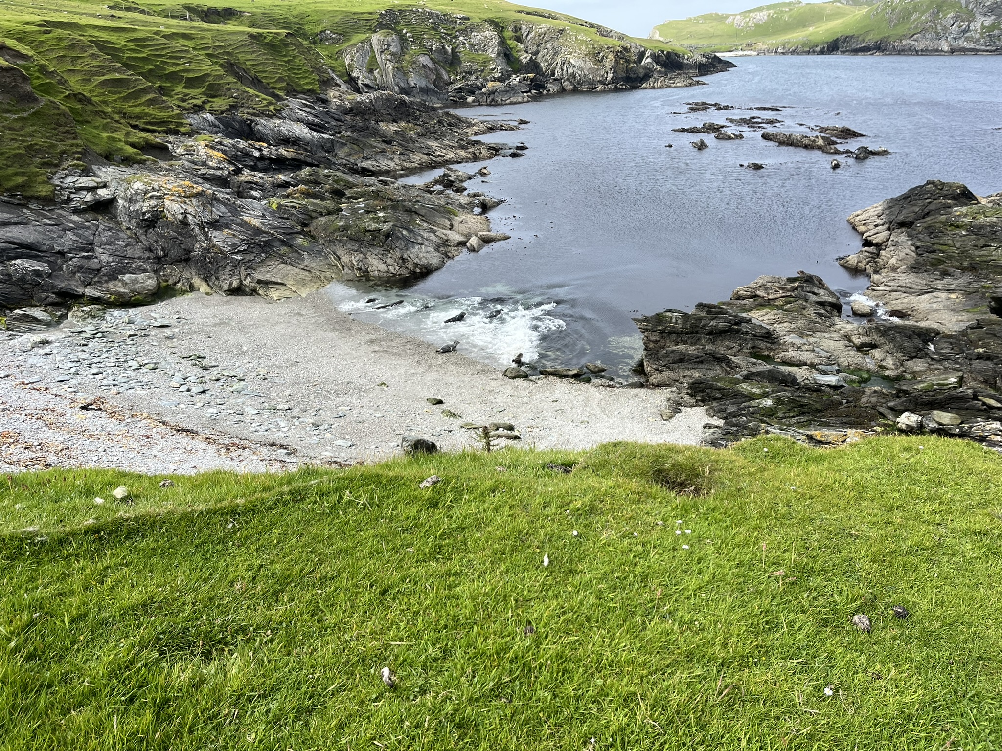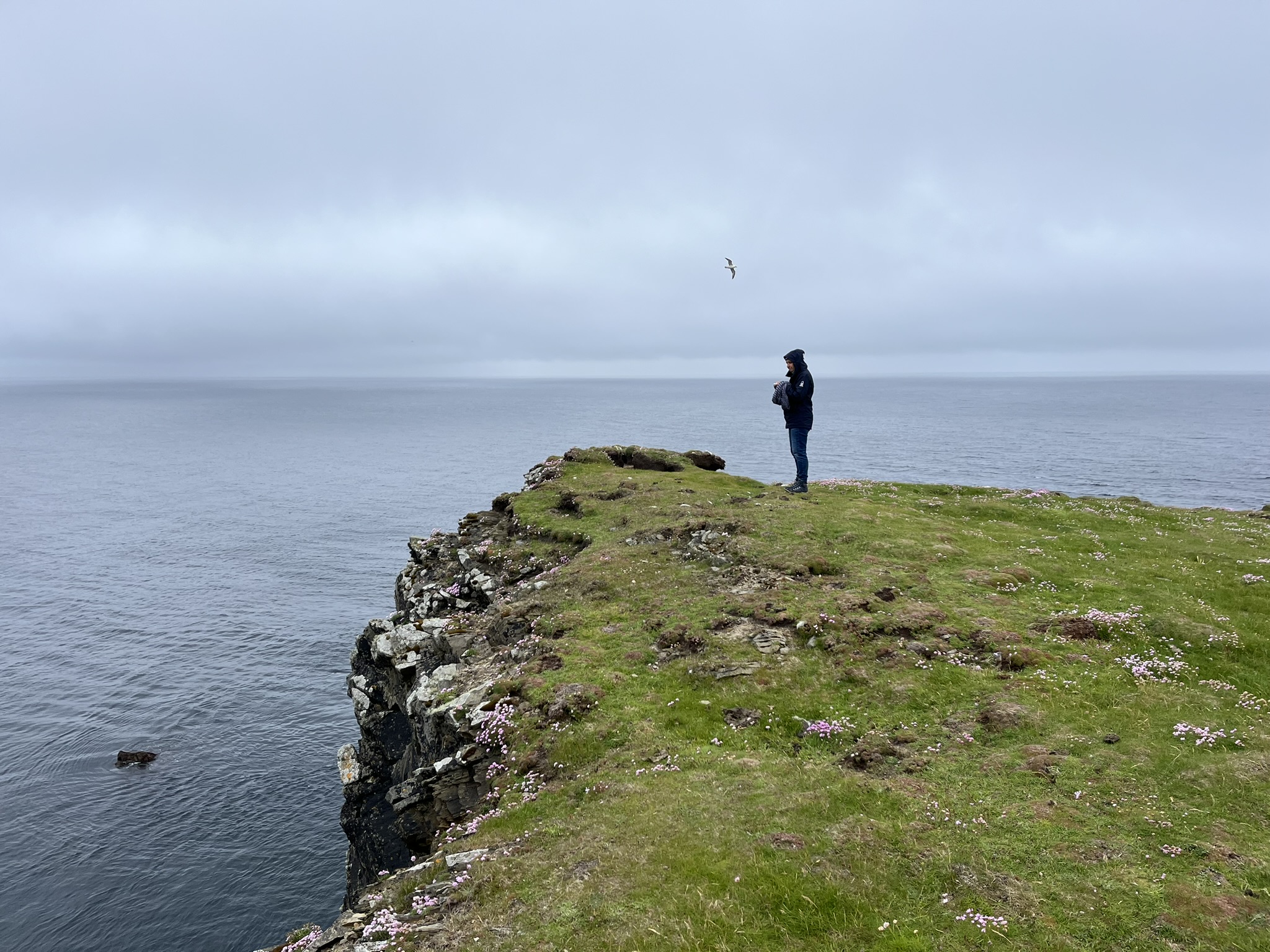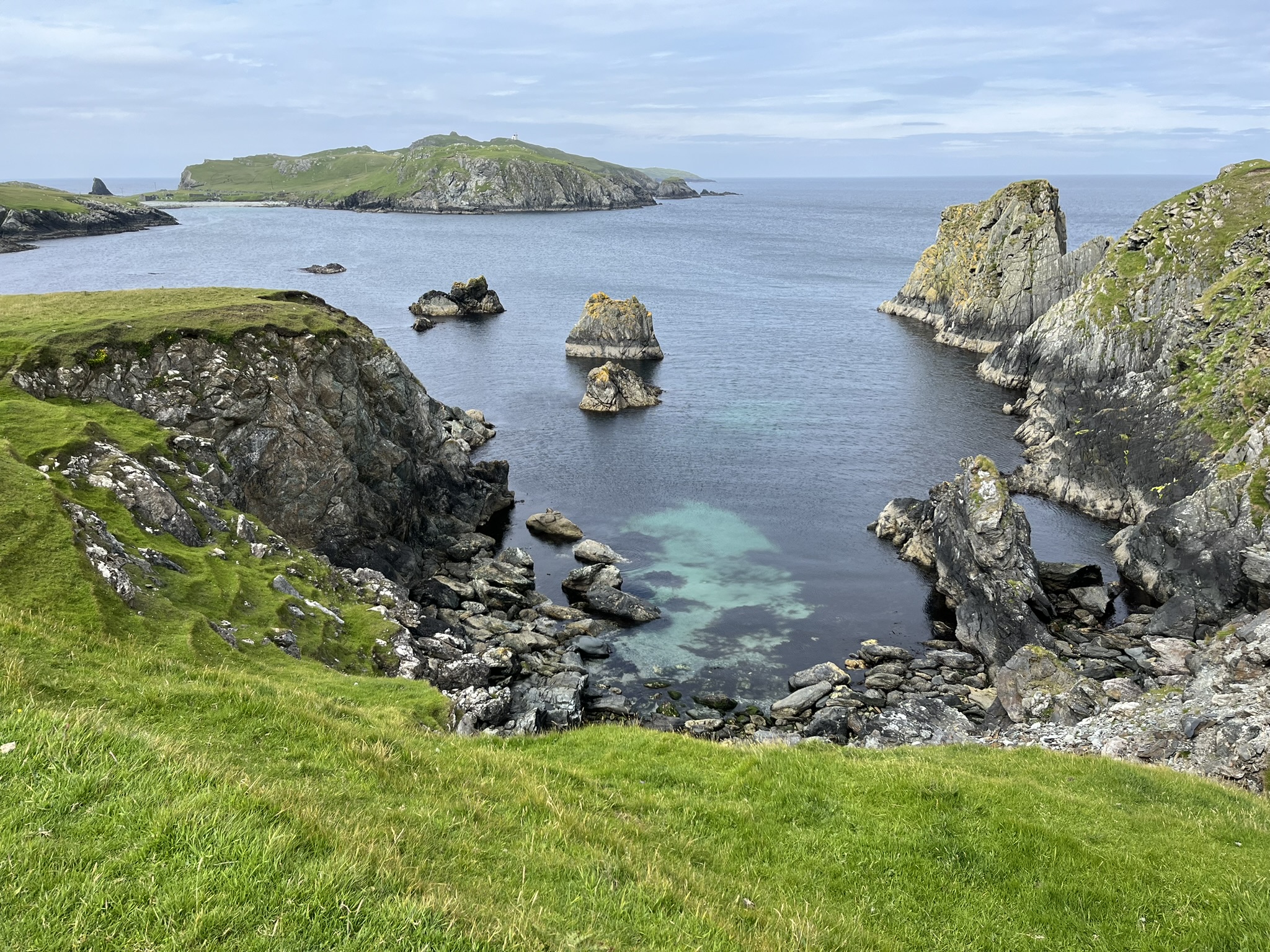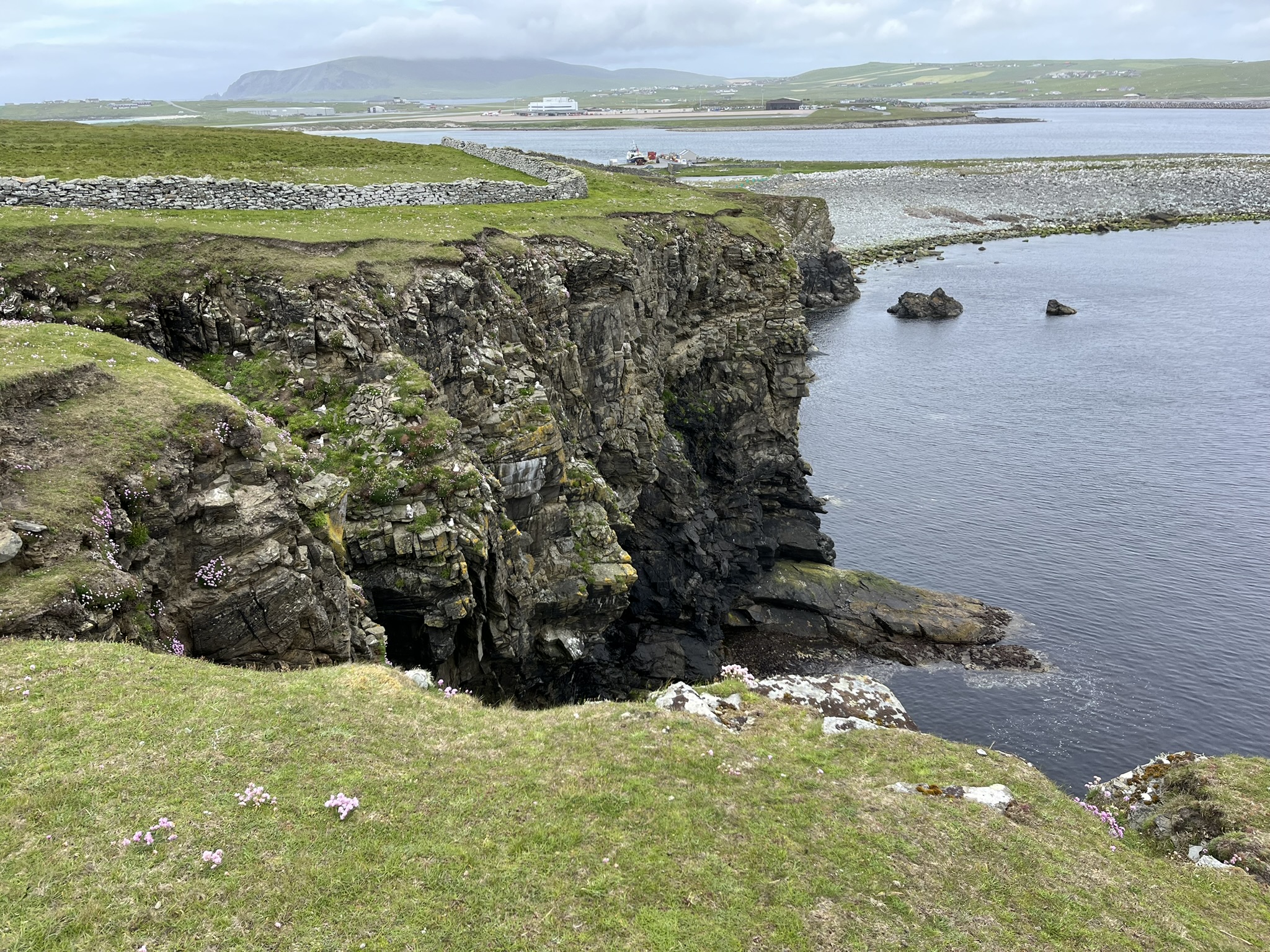 Die Shetland Inseln haben viele Seiten zu bieten, die meisten sind aber durch die Lage und Gegebenheiten wie z.B. das Wetter deutlich rauer und wilder als wir es sonst kennen. Dafür haben wir jetzt einige Tage Zeit das zu erkunden. Was sehr gut funktioniert ist das Bussystem. Wir fahren nach Scalloway der ehemaligen Hauptstadt und den zweitgrößten Ort der Insel. Dort wohnen ca. 1000 Menschen und es gibt ein paar Läden, einen kleinen Segelhafen und sogar ein Museum. Da das Wetter nicht so doll ist, gehen wir dort mal rein und lernen interessante Themen kennen wie den Shetland Bus. Das war eine geheime Seebrücke zwischen Norwegen und den Shetlandinseln im 2. Weltkrieg, durch die viele Norweger nach Shetland flüchten konnten und auch anderwärtig versorgt wurde. Es war etwas heroisch aufgezogen aber gut gezeigt. Wir machen noch eine Wanderung die Klippen entlang und werden nach einem arglosen Gang über die Wiesen relativ heftig und laut von zwei Seeschwalben attackiert. Anscheinend sind wir deren Gelege zu nahe gekommen. Da wir keinen Vögeln Angst einjagen wollen, gehen wir brav wieder zurück.