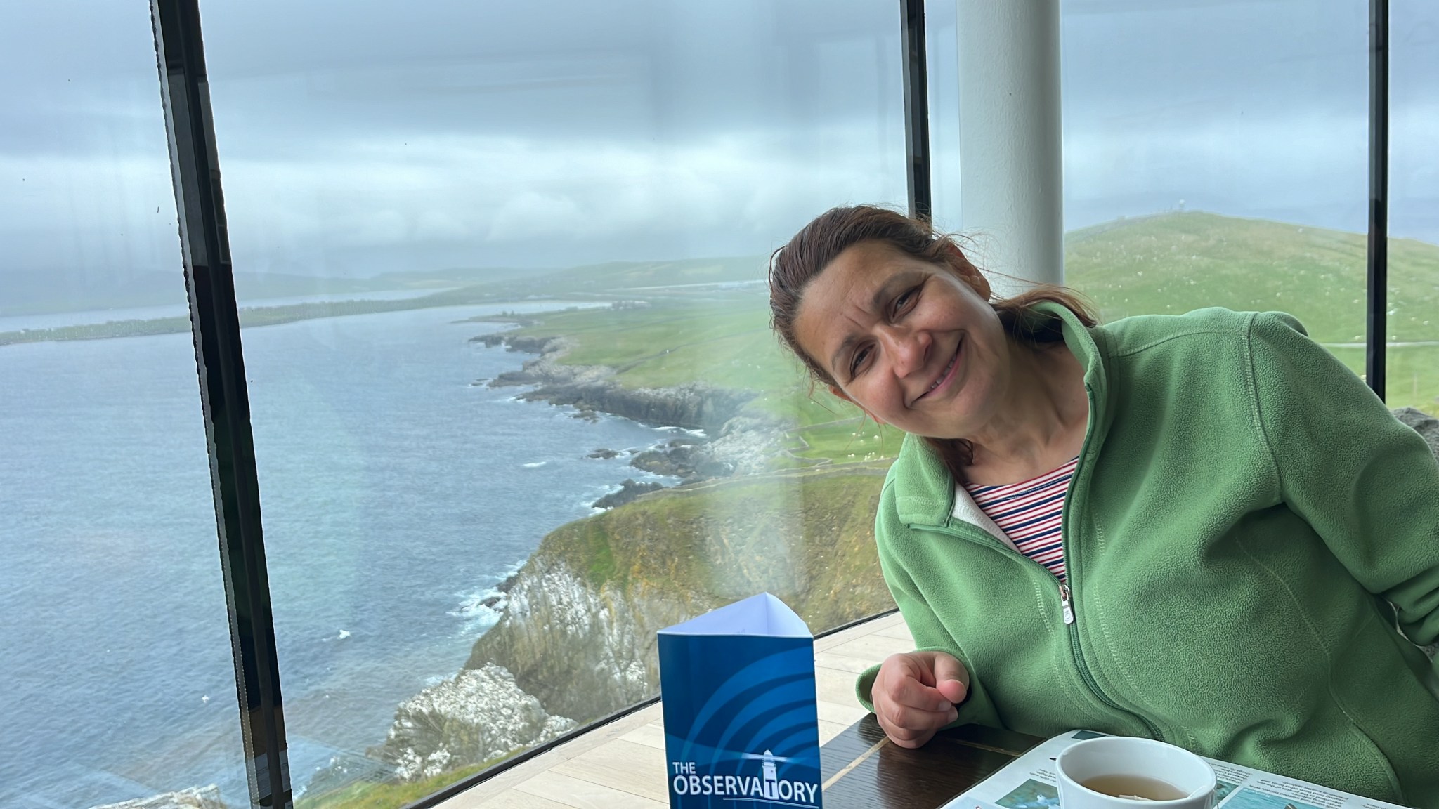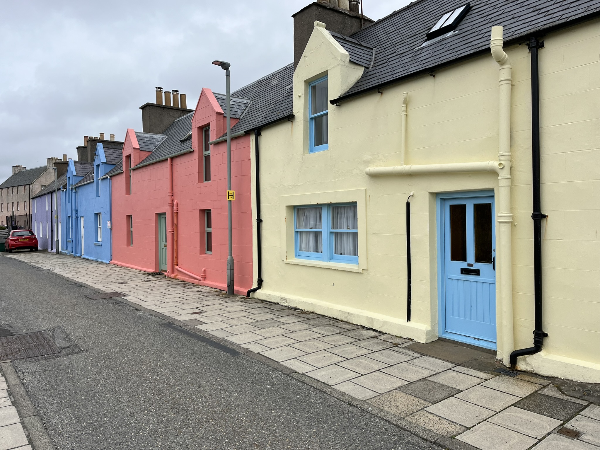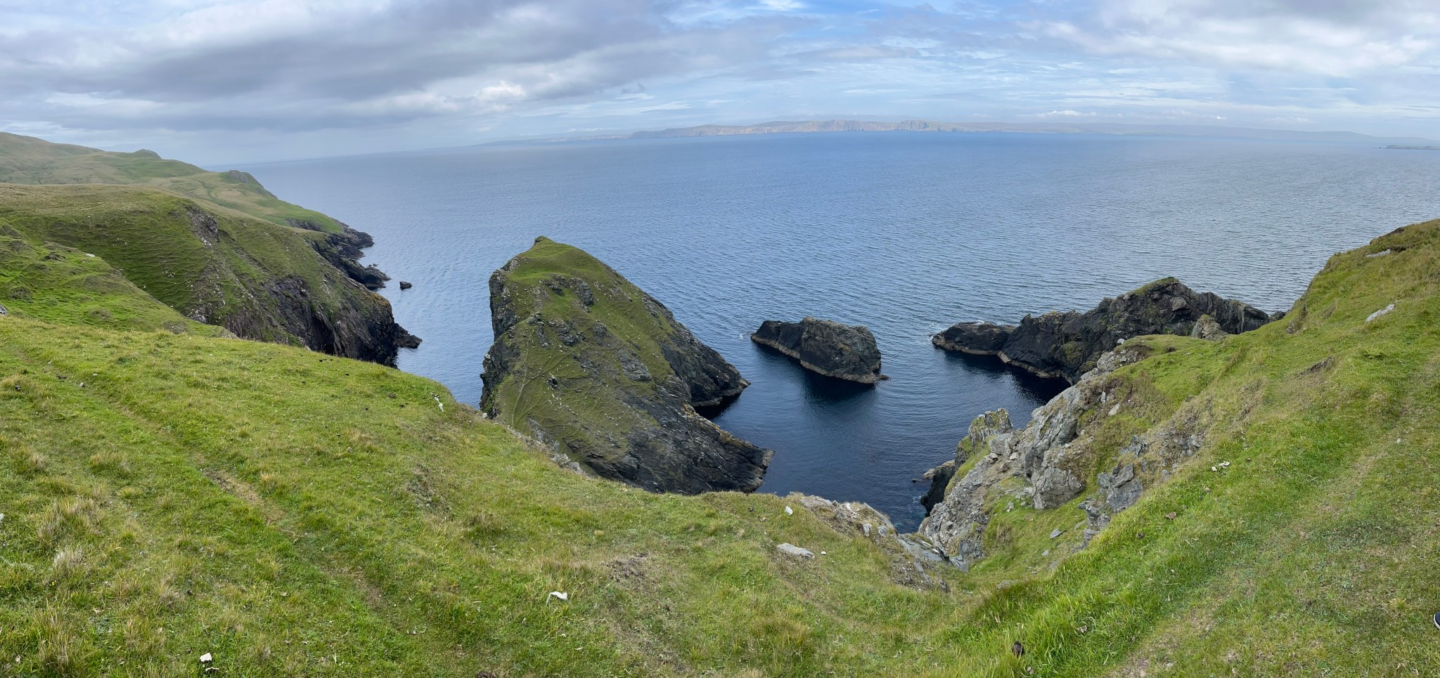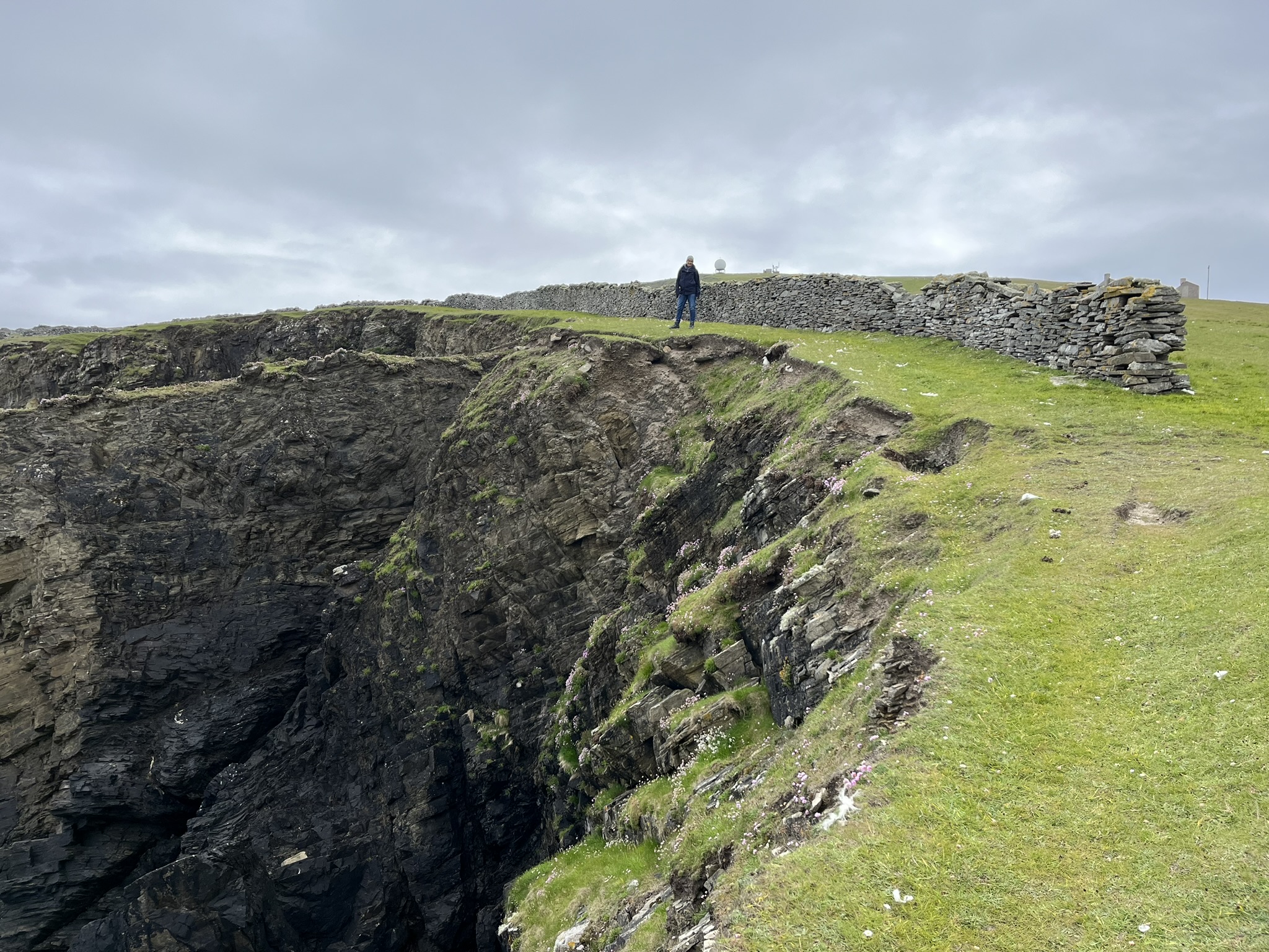 Die Shetland Inseln haben viele Seiten zu bieten, die meisten sind aber durch die Lage und Gegebenheiten wie z.B. das Wetter deutlich rauer und wilder als wir es sonst kennen. Dafür haben wir jetzt einige Tage Zeit das zu erkunden. Was sehr gut funktioniert ist das Bussystem. Wir fahren nach Scalloway der ehemaligen Hauptstadt und den zweitgrößten Ort der Insel. Dort wohnen ca. 1000 Menschen und es gibt ein paar Läden, einen kleinen Segelhafen und sogar ein Museum. Da das Wetter nicht so doll ist, gehen wir dort mal rein und lernen interessante Themen kennen wie den Shetland Bus. Das war eine geheime Seebrücke zwischen Norwegen und den Shetlandinseln im 2. Weltkrieg, durch die viele Norweger nach Shetland flüchten konnten und auch anderwärtig versorgt wurde. Es war etwas heroisch aufgezogen aber gut gezeigt. Wir machen noch eine Wanderung die Klippen entlang und werden nach einem arglosen Gang über die Wiesen relativ heftig und laut von zwei Seeschwalben attackiert. Anscheinend sind wir deren Gelege zu nahe gekommen. Da wir keinen Vögeln Angst einjagen wollen, gehen wir brav wieder zurück.
