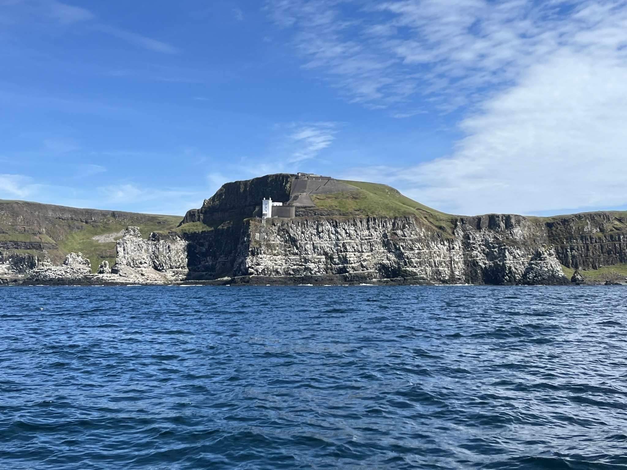 Nachdem wir uns gebührend von Schottland verabschiedet haben, geht es weiter hinunter nach Nordirland. Die erste Station die uns lockt, ist eine kleine unscheinbare Insel namens Rathlin Island. Der Sage nach ist hier die Mutter des Riesen Finn verunglückt, als sie sturzbesoffen mit einem Sack voll Landschaft (Rathlin) auf der Schulter nach Schottland unterwegs war, worauf diese Insel entstand. Rathling Island hat nur noch etwa 75 Einwohner aber im Gegensatz zu Fair Isle z.B. etwas mehr an Infrastruktur. Es gibt einen organisierten Hafen mit Hafenmeister, einen Pub, einen Lebensmittelladen und sogar eine Schule. Wir entdecken auch eine Menge gut erhaltener Häuser die wahrscheinlich vermietet werden. Nachdem wir im Hafen gut vertäut sind, geht es schon bald in den Pub das EM Finale schauen. Anscheinend haben es die Nordiren in der Gegend nicht so mit den Engländern. Als Spanien das Siegtor schießt, grölt der ganze Laden. Wir erkunden die Insel natürlich mit einer langen Wanderung über die Klippen und sind sehr begeistert. Es gibt auch nach längerer Zeit mal wieder eine Seelöwen Kolonie und natürlich tausende von Seevögeln.
