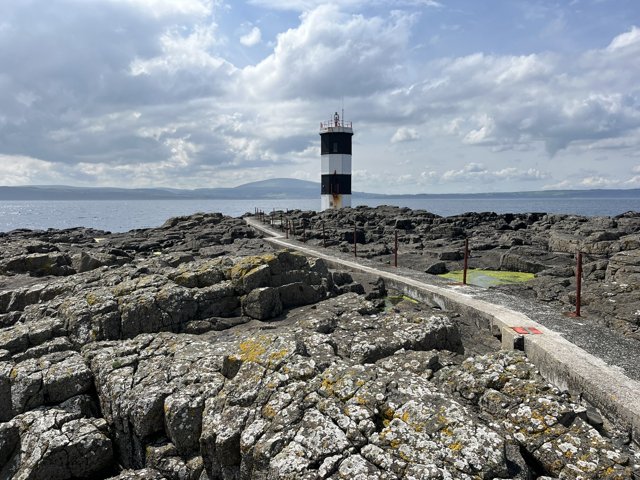 2 Tage später ist der Wind günstig und wir unternehmen einen langen Schlag runter Richtung Belfast. Die Strömung zwischen Rathling Island und dem Festland um die Nordostecke der irischen Insel herum ist extrem stark, so dass wir nur bei Ebbe auslaufen können um den Strom mit uns zu haben. Ebbe ist erst am Mittag und entsprechend wird es ein später aber dafür sehr schneller Törn. Wir schaffen einen neuen Geschwindigkeitsrekord und fahren (durch 3kn mitlaufendem Strom) insgesamt über 9kn schnell. Wir kommen abends kurz vor Sonnenuntergang in Carrickfergus im Segelhafen an, einem Örtchen 20km vor Belfast.