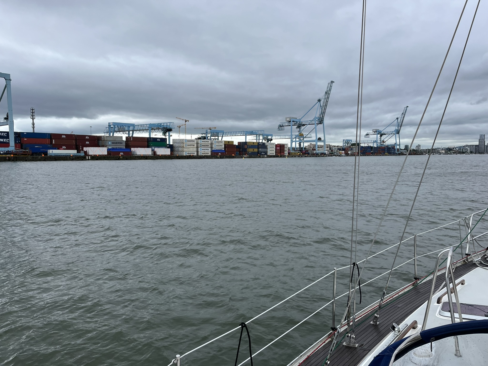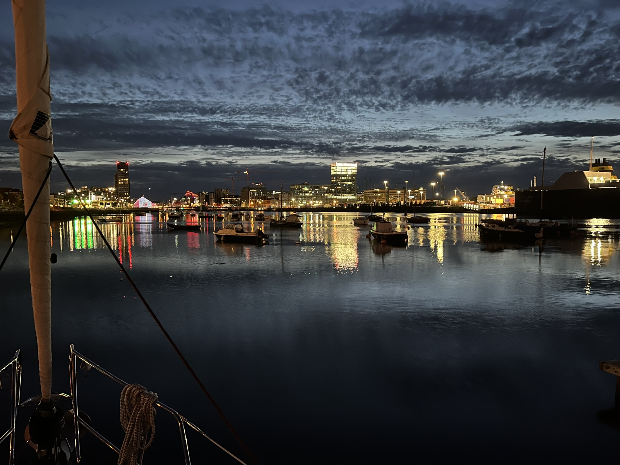 Der Plan in die Marina auf der Halbinsel Howth zu gehen hat sich schnell wieder erledigt, weil am Wochenende ein Segelevent stattfindet und alles voll ist. Das ist das erste Mal auf der Reise, dass wir irgendwo abgewiesen werden. So what, dann machen wir es günstiger und fahren direkt in den großen Fracht und Passagierhafen nach Dublin, wo es einen kleinen Yachtclub gibt. Wir bekommen einen Platz am Ende und haben eine wunderbare Aussicht auf die Container, Kräne und das Fährenterminal. OK man gewöhnt sich dran, dafür sind wir schnell in der Stadt. Es gibt noch einen positiven Effekt, normalerweise gehört Auryn zu den älteren Semestern in den Häfen, aber nicht hier. Sowohl bei der Optik wie auch beim Alter sind wir ganz vorne. Unglaublich was für abgerockte Kähne hier rumliegen. Das motiviert natürlich und so gibt es erstmal eine Entsalzung des Decks und innen einen Großputz.