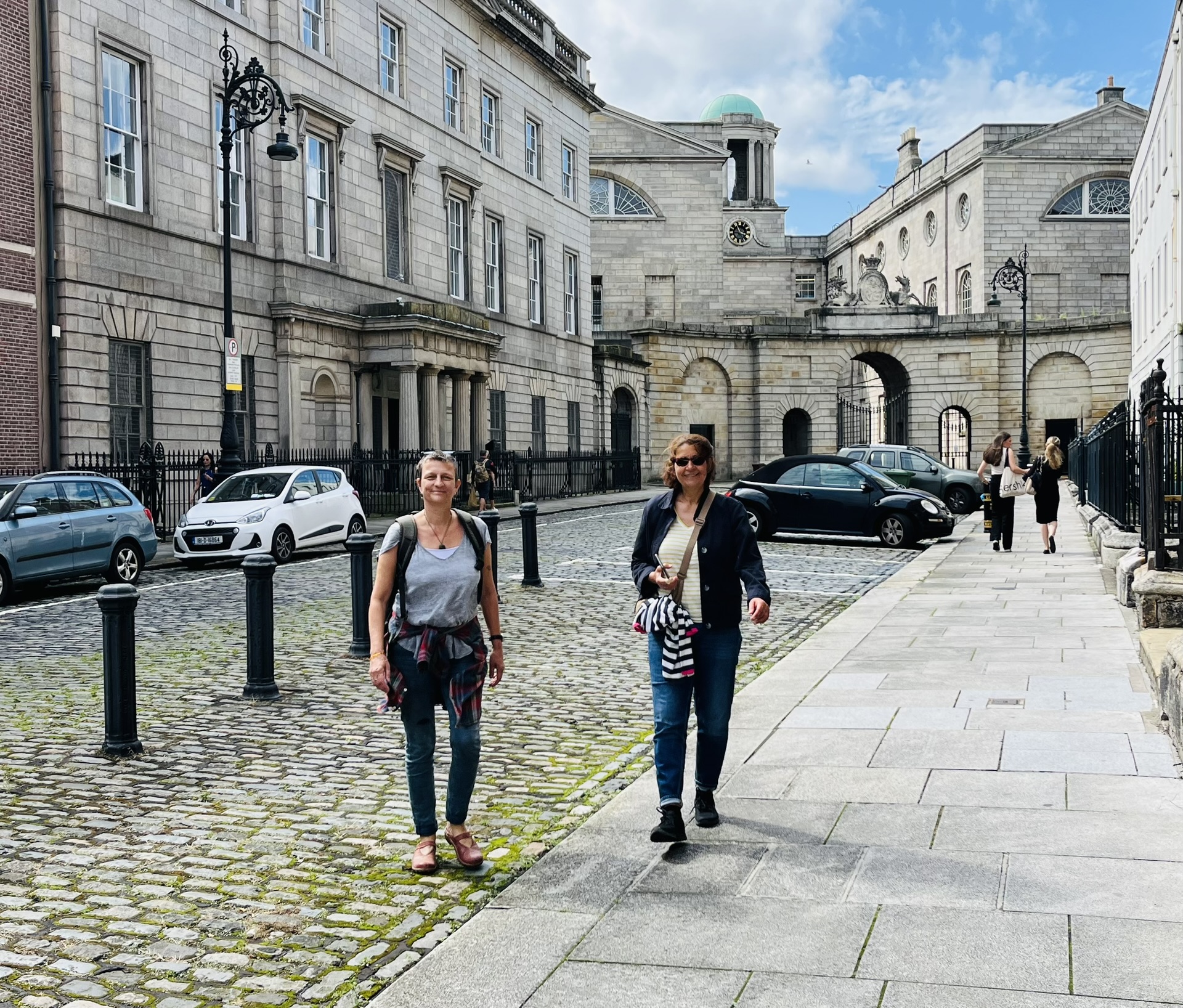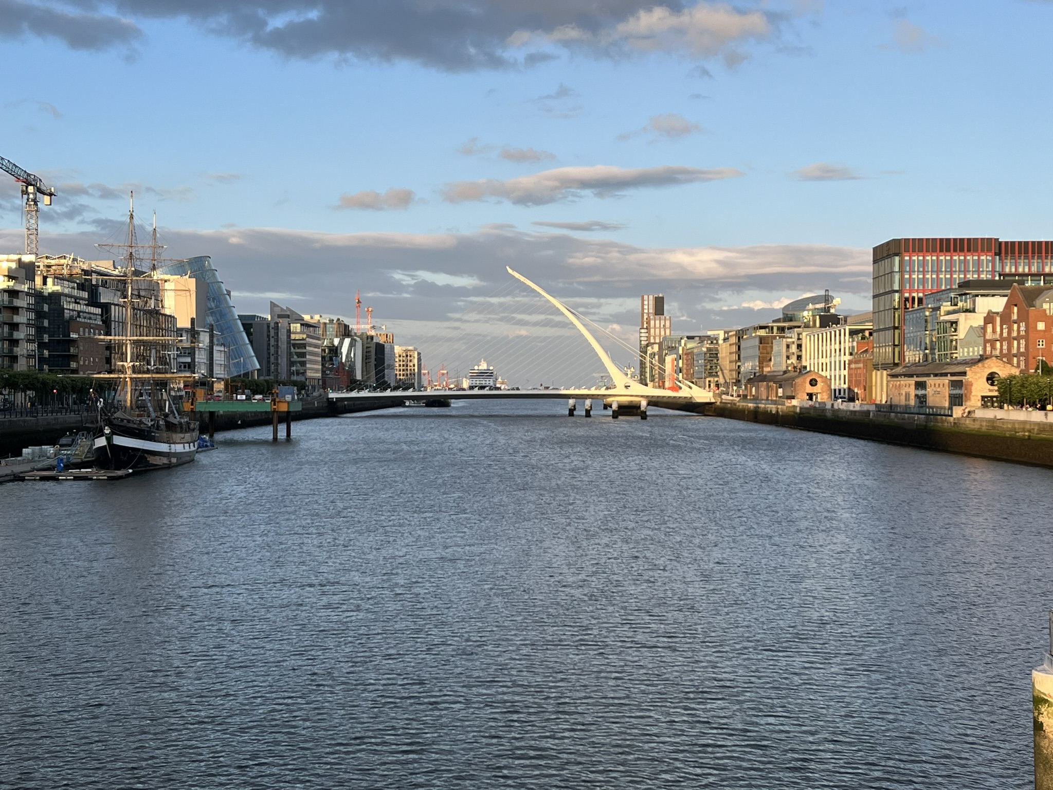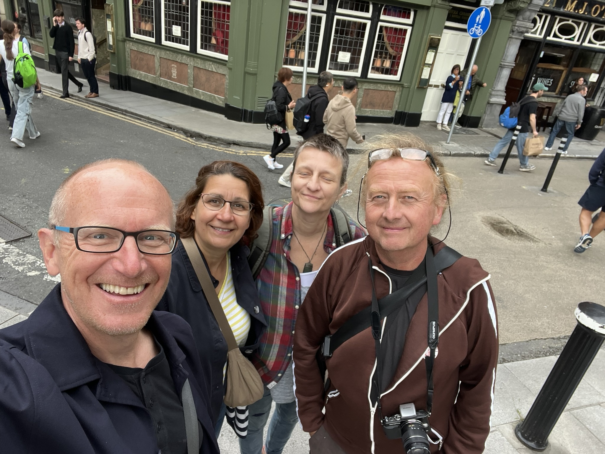Am nächsten Morgen bekommen wir dann Besuch von Hilde und Christian die Urlaub in Irland machen. Wir fahren ein ordentliches Brunch auf und quatschen bis zum Mittag. Es tut richtig gut mal wieder alte Freunde an Bord zu haben. Wir fahren mit dem Auto in die Stadt und besuchen den bekannten irischen Maler Mick O’Dea in seinem Atelier, wo die beiden für ein paar Tage wohnen können. Total netter Typ und ein wirklich abgefahrenes Atelier. Überall hängen Bilder und Figuren rum, komplett organisiertes Chaos. Anschließend gehen wir noch etwas in die Stadt. Vor allem im alten Viertel Tempel Bar ist es hübsch aber völlig überlaufen. Wir finden etwas abseits eine Bar und gehen anschließend noch was chinesisches Essen. Der Rückweg zur Marina ist auch nett, am Fluss entlang kommt man vom alten ins neue etwas geschäftsmäßigere Dublin.