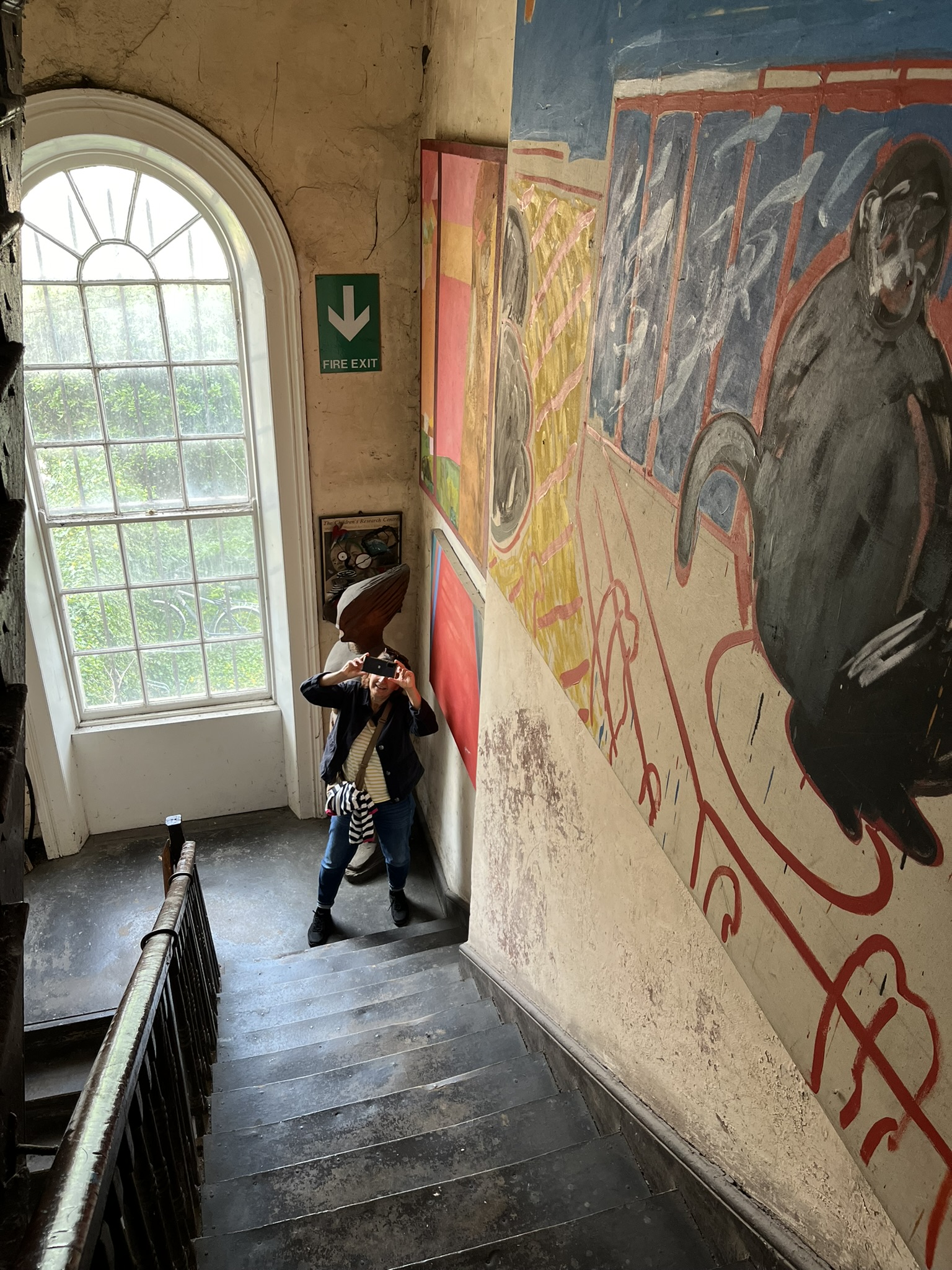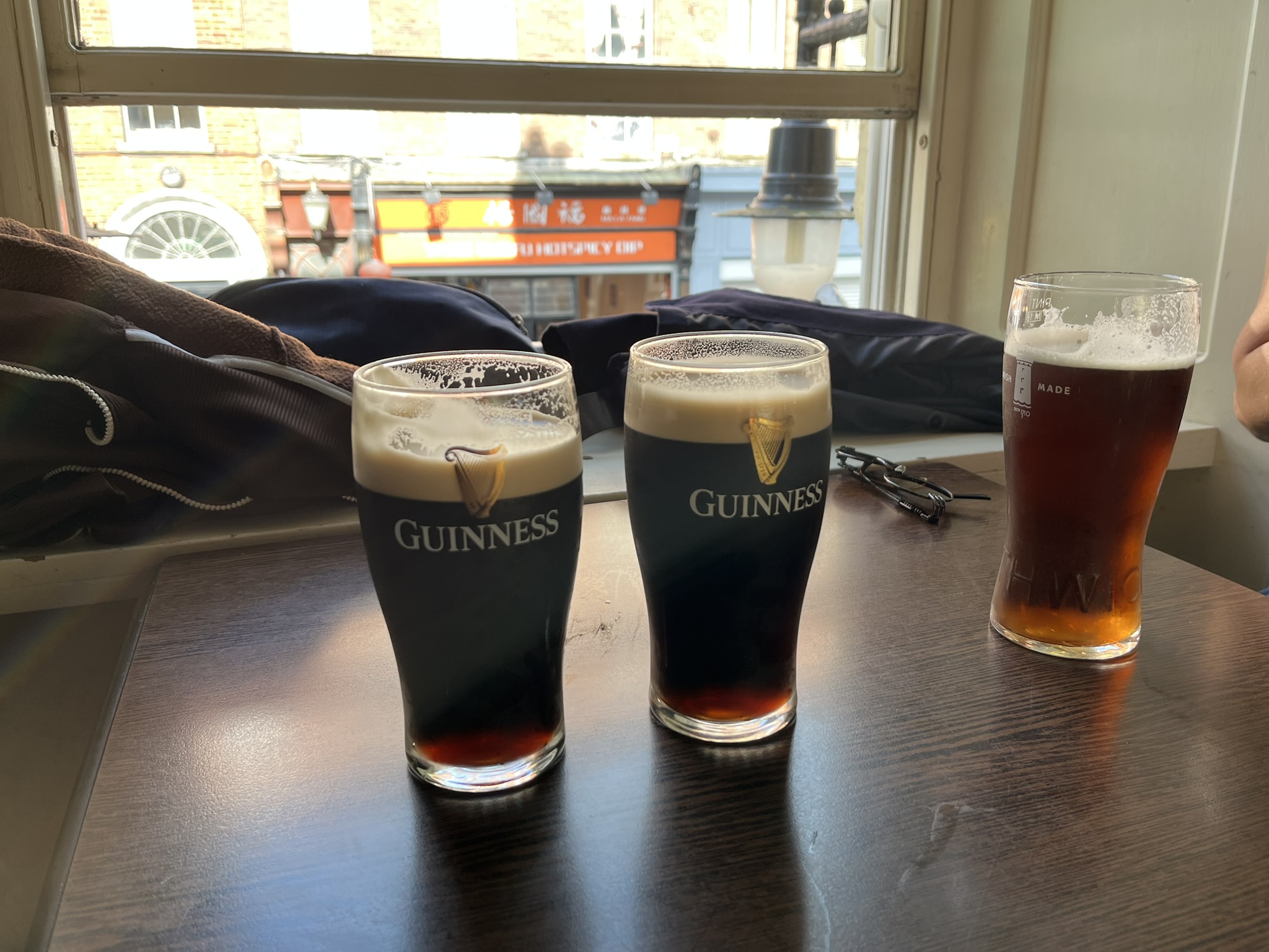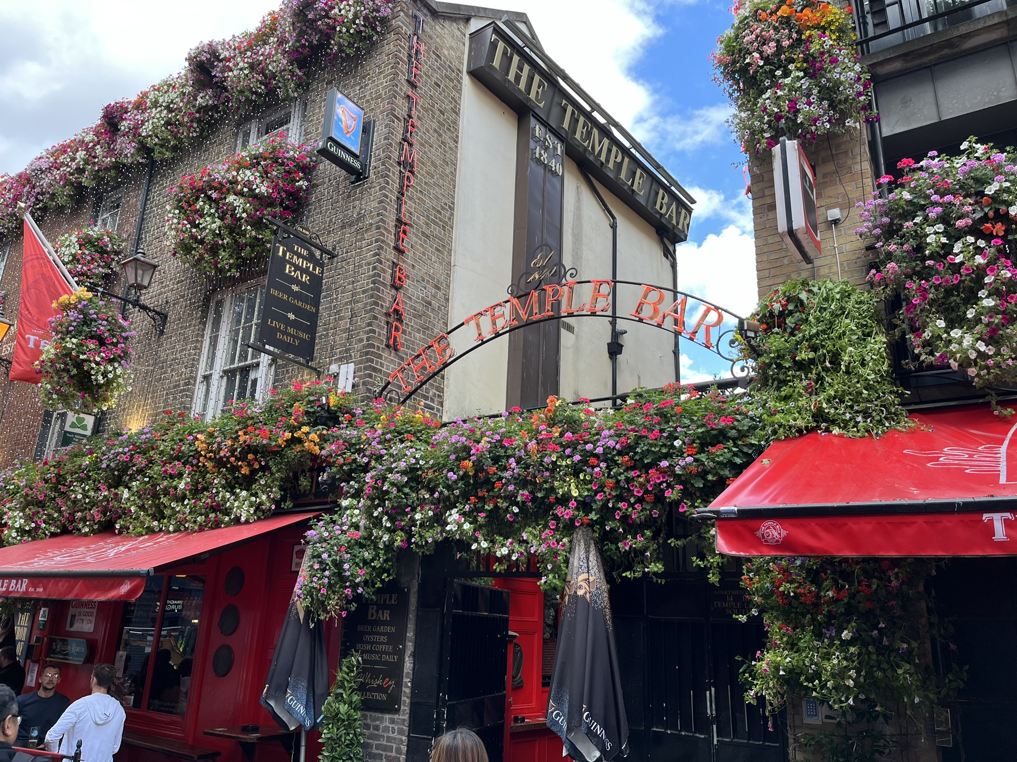 Am nächsten Morgen bekommen wir dann Besuch von Hilde und Christian die Urlaub in Irland machen. Wir fahren ein ordentliches Brunch auf und quatschen bis zum Mittag. Es tut richtig gut mal wieder alte Freunde an Bord zu haben. Wir fahren mit dem Auto in die Stadt und besuchen den bekannten irischen Maler Mick O’Dea in seinem Atelier, wo die beiden für ein paar Tage wohnen können. Total netter Typ und ein wirklich abgefahrenes Atelier. Überall hängen Bilder und Figuren rum, komplett organisiertes Chaos. Anschließend gehen wir noch etwas in die Stadt. Vor allem im alten Viertel Tempel Bar ist es hübsch aber völlig überlaufen. Wir finden etwas abseits eine Bar und gehen anschließend noch was chinesisches Essen. Der Rückweg zur Marina ist auch nett, am Fluss entlang kommt man vom alten ins neue etwas geschäftsmäßigere Dublin.