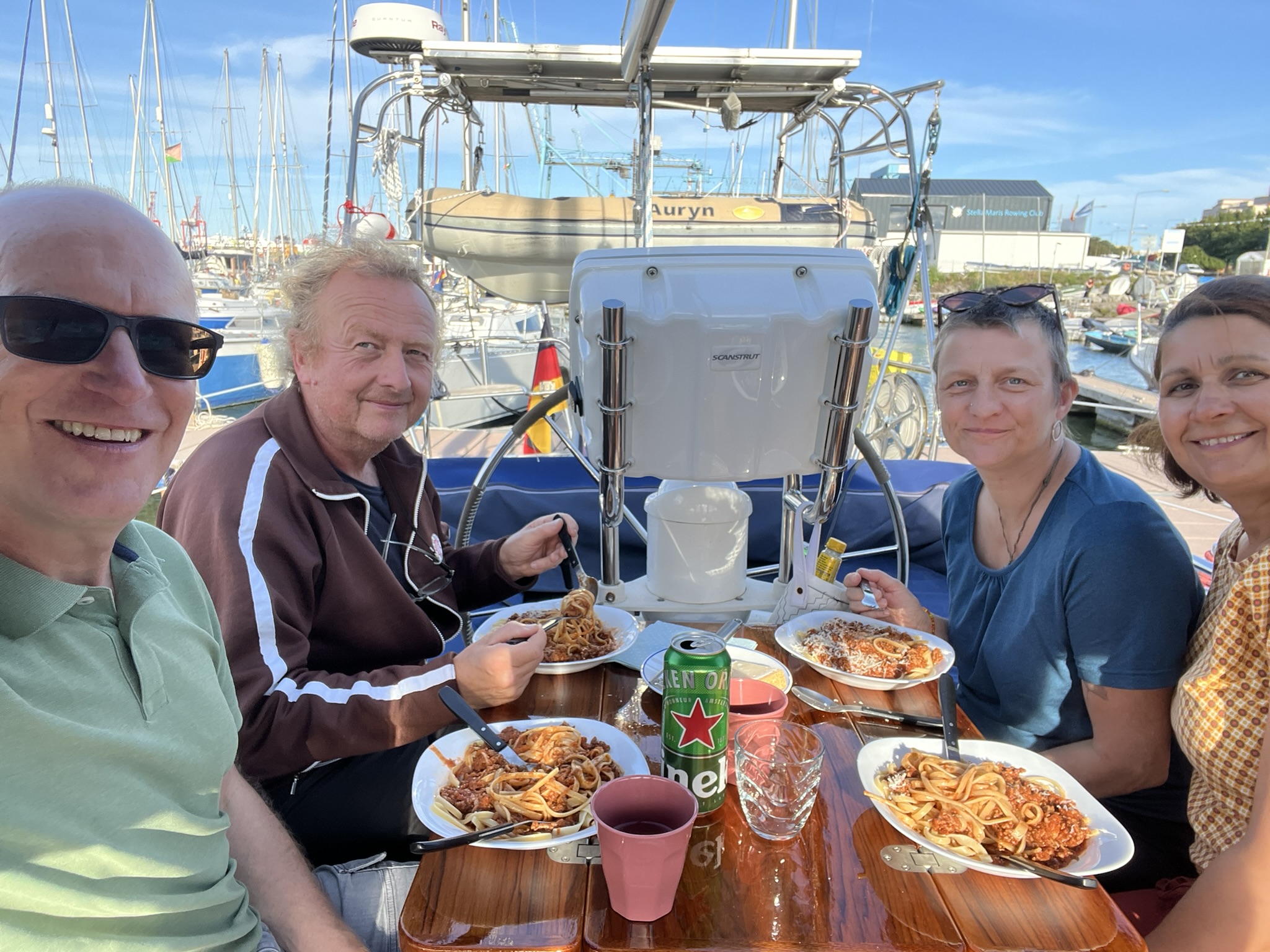 Die beiden setzen ihren Urlaub an der Westküste fort und wir machen uns morgen auf in den Süden nach Wicklow. Vorher verholen wir uns noch neben die Marina in Dun Laoghaire zum Ankern. Wir lernen die Hafenmeisterin Laura kennen, die mit ihrem Speedboot vorbeikommt und uns wegschicken möchte. Wir quatschen etwas miteinander, und nach dem Versprechen morgen früh weg zu sein, dürfen wir bleiben.