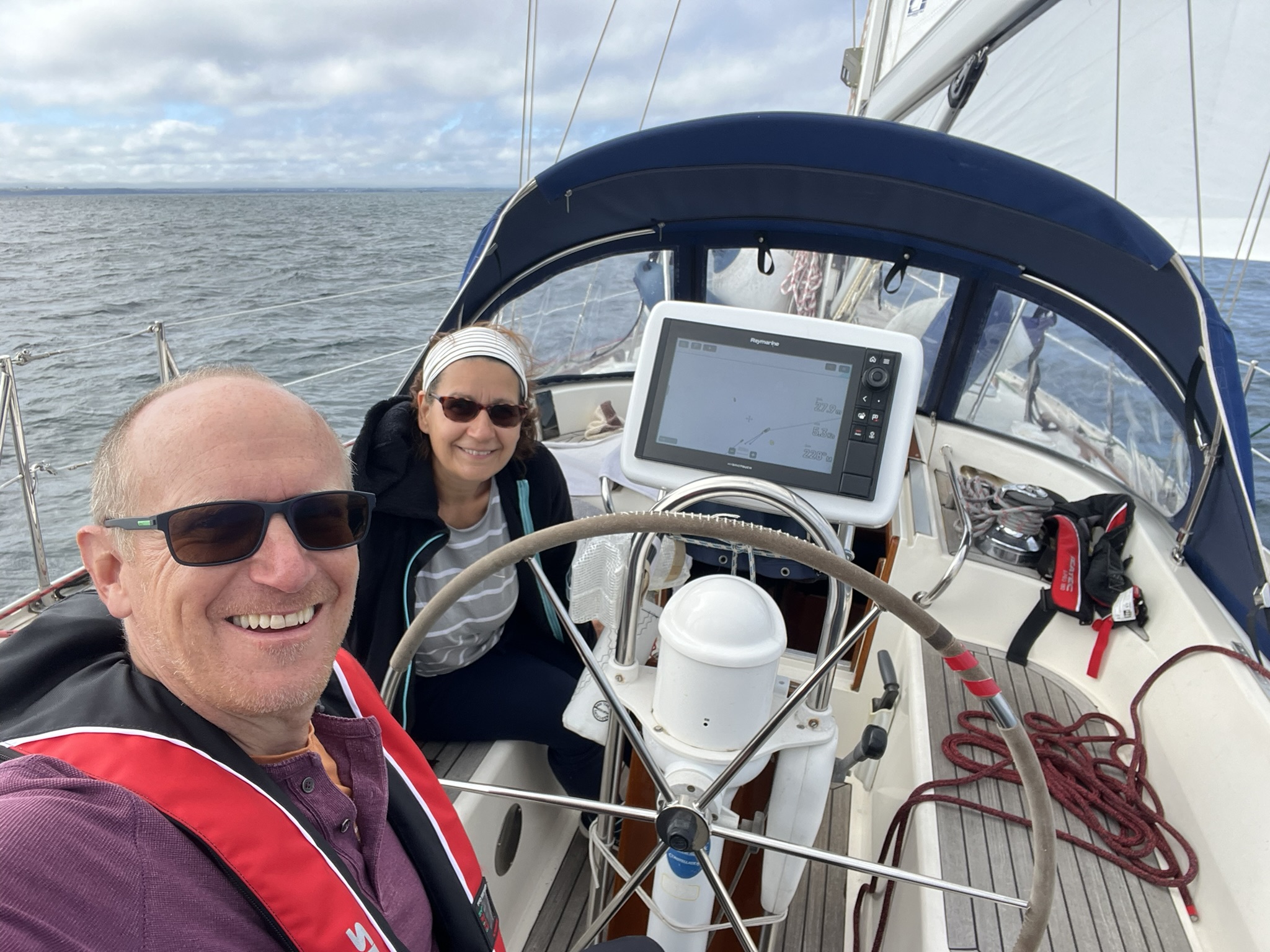 Die Fahrt auf die Scilly Islands ist etwa 66sm lang, und wir müssen gegen 21.00 Abends ankommen, da wir nur ungern im Dunkeln durch kleine Inseln zu einem Ankerplatz fahren möchten. Und da das Fluttor im Hafen erst um 08.30 aufmacht, müssen wir Gas geben. Pünktlich geht es los und das Tempo was wir benötigen ist kein Problem. Der Wind ist super und am Anfang haben wir wenig Welle. Gegen Ende werden die Stunden wegen deutlich zunehmender Welle sehr anstrengend, und wir sind froh als wir pünktlich zum Sonnenuntergang ankommen. Dort gibt es sogar noch eine freie Boje an der wir festmachen. Im Boot sieht es aus wie im Schlachtfeld, da einiges durch die Gegend geflogen ist und einer unserer beiden 20L Wasserkanister ausgelaufen ist. Dann ist bei dem Geschaukel noch eine Welle ins Cockpit und den Niedergang hinunter ins Boot gelaufen, und sorgt für Salz auf den Oberflächen.