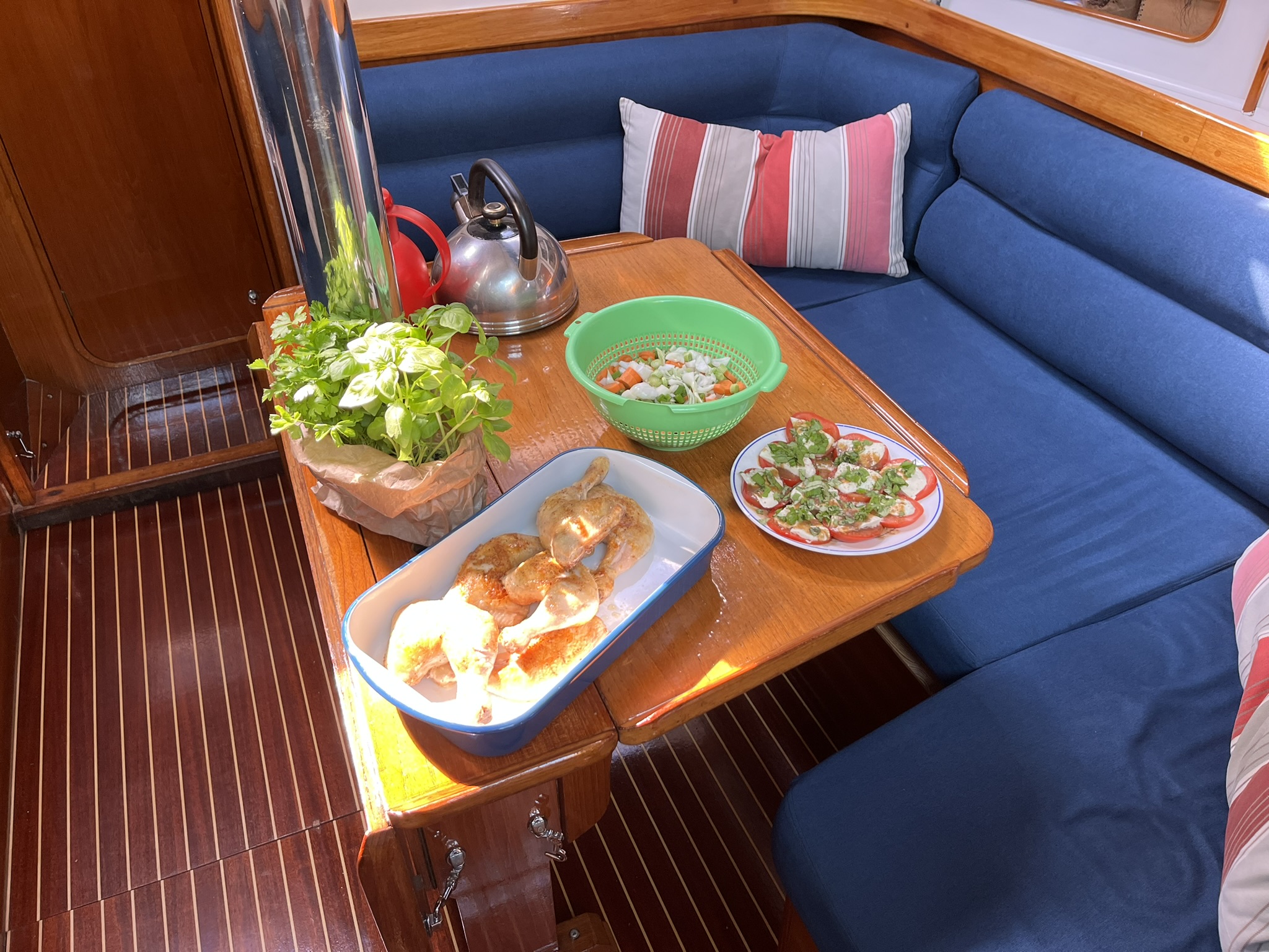 Wir verbringen mit Haui und Adelheid einen sehr schönen Abend an Bord mit Coq au vin und natürlich Rotwein. Auch am nächsten Tag gehen wir noch was essen und tauschen Bordtipps aus. Die beiden haben auf Auryn auch viele Jahre mal mehr mal weniger gewohnt und kennen sich gut aus.