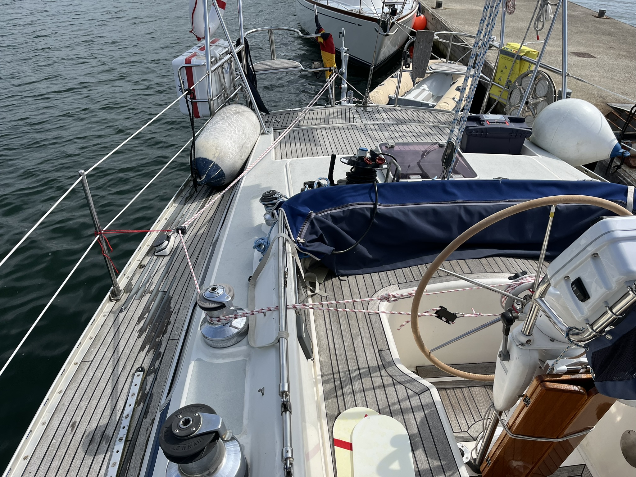 Es gab noch einiges mehr, z.B. wurde ein neues Licht im Mast auf halber Höhe montiert, weil das alte mit 25W einfach zu viel Strom verbraucht hat. Auch das ist vor allem Nachts wichtig damit man gut gesehen wird. Der Skipper ist mindestens 5 Mal raufgeklettert bis das Teil endlich funktionierte. Da nicht die komplette Spannung dort oben ankam, musste unten die komplette Decke abgenommen werden und alle Kabelverbindungen kontrolliert werden, bis die Schwachstelle gefunden wurde.