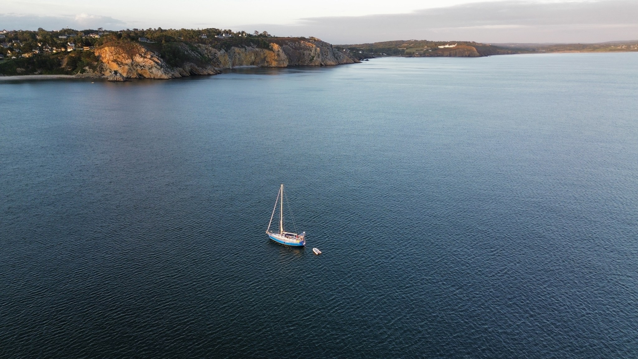 Nach der ganzen Arbeit letzte Woche dachten wir an etwas Ausspannung in der Nähe. Allzu weit wollten wir nicht wegfahren, da wir am kommenden Wochenende sehr wichtigen Besuch in Brest erwarten. Da es in der Woche relativ konstanten Wind aus westlichen Richtungen gab, viel die Wahl auf die Bucht vor dem kleinen Örtchen Morgat. Andere illustre Orte wie die Ile de Seine oder etwas weiter auf die Glenan Inseln mussten wir aus Wind- und Zeitgründen leider ausfallen lassen. Die Fahrt zur Bucht von Morgat mit dem Hauptort Crozon war zwar nur 25sm lang aber der Skipper hat es verschlafen sich etwas mehr mit der Strömung an dem Tag zu beschäftigen. Er war wohl noch zu sehr mit den neuen Geräten beschäftigt, die wir auf der Tour ausprobieren wollten. Und so trinken wir mit ein paar Stegnachbarn noch einen Kaffee bei uns und fahren erst gegen Mittag (wenn die Strömung anfängt entgegen zu laufen) los.