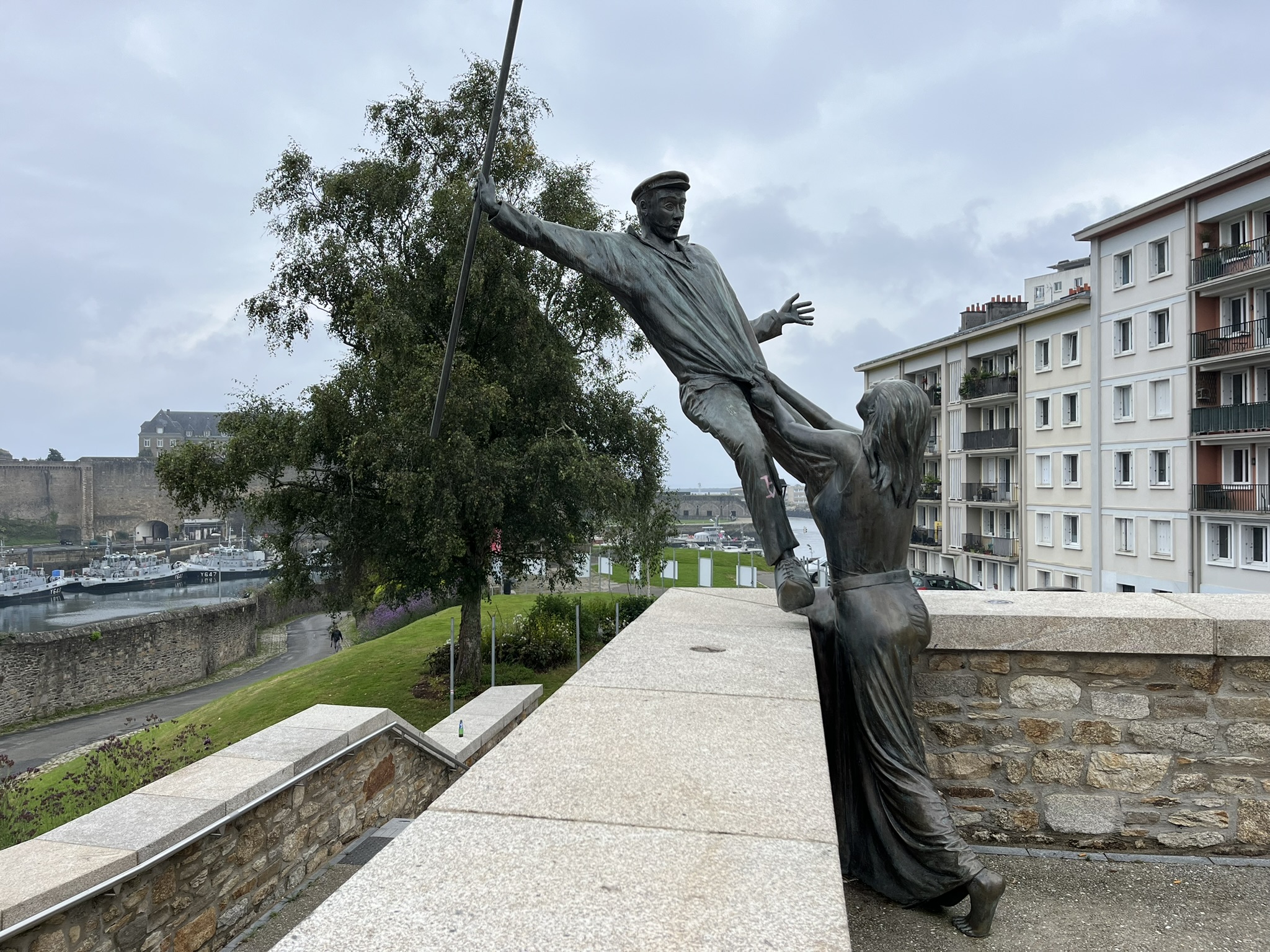 Die Eltern empfangen ihre Kinder auf der Reise und sind aufgeregt. Schließlich haben wir beide schon seit längerer Zeit nicht mehr gesehen. Marlene kommt aus ihrer aktuellen Heimat Australien, mit einem mehrmonatigem Zwischenstopp in den USA, zum ersten Mal seit einem Jahr wieder nach Europa. Und Niklas fliegt einen Tag später spontan aus Wuppertal ein. Wir holen Marlene vom Bahnhof ab und gehen direkt zum Boot wo ein Abendessen vorbereitet ist. Danach schläft sie erstmal 14 (!) Stunden am Stück, da sie die letzten Tage sozusagen Schlaflos in Seattle war. Am Samstag Abend holen wir dann Niklas vom Flughafen ab und sind eine Stunde später alle 4 zum ersten Mal zusammen an Bord. Es werden wirklich nette Tage, wir schauen uns erstmal die Stadt Brest an. Wir sind ja eigentlich schon seit einigen Wochen hier, haben aber die Stadt selber bisher nur von weitem gesehen. Brest wurde während des 2. Weltkrieges fast vollständig zerstört und so besteht die gesamte Innenstadt eigentlich nur aus Nachkriegsbauten. Da ist an vielen Stellen der Lack ab, schön ist anders. Auf der westlichen Flussseite gefällt es uns etwas besser. Wir entdecken eine Halle mit einem riesigen Indoorspielplatz, Museum, Musik und Kaffees.