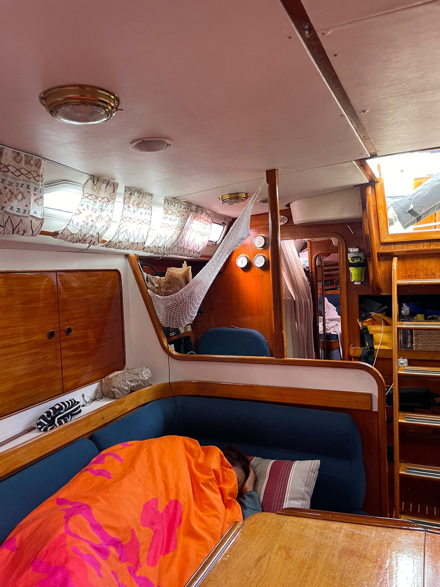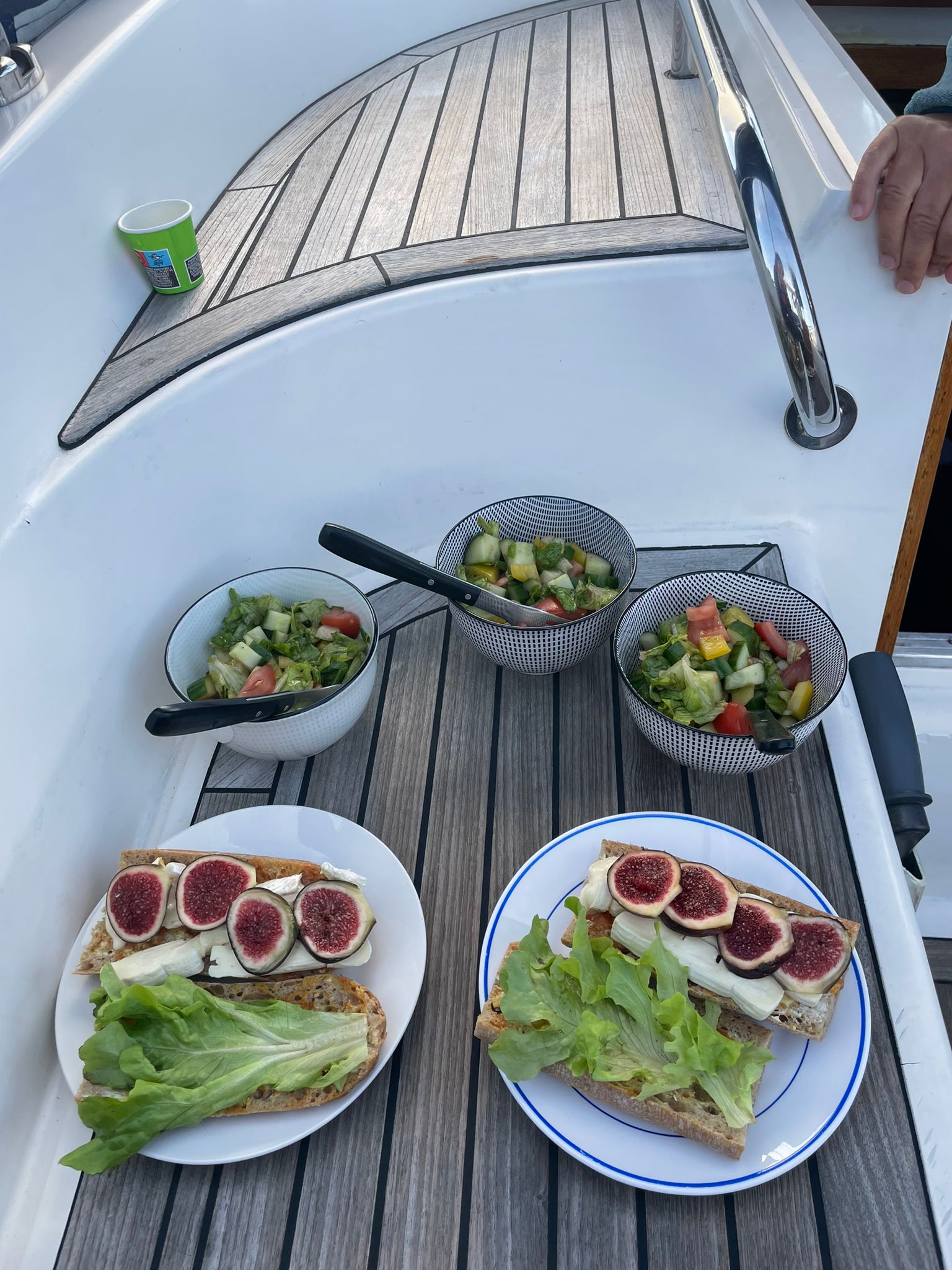 Am 3. Tag wurden wir wegen dem wenigen Schlaf an den wir uns noch nicht gewöhnt hatten lethargischer, dösen herum und tüddeln hier und dort etwas herum. Delfine haben wir keine mehr gesehen, wahrscheinlich weil die Biskaya in der Mitte eine Tiefe von über 4000m hat. Entsprechend ist auch das Risiko hier auf Orkas zu treffen sehr gering. Laut Windy sollte eigentlich erst am Morgen der Wind abnehmen und wir hatten bereits für die letzten paar Stunden mit einer Motorfahrt gerechnet. Leider nahm der Wind schon in der Nacht ab im Gegensatz zur Welle. Diese schmiss uns immer wieder auf die Seite was der Wind durch entsprechenden Druck im Segel nicht mehr ausgleichen konnte. Doof, aber man kann es nicht ändern, wir schmeißen den Jokel an der das letzte Stück übernehmen muss. Es sind bis A Coruna noch gute 14h Fahrt was uns unter Motor eindeutig zu weit ist. Der nächste Punkt am Festland ist Viveiro, was aber etwas ab vom Schuss ist. Inzwischen ist durch die Landnähe das Internet zurück und die Windy App sagt uns, dass wir dort nächste Woche nicht wegkommen würden. Also entschließen wir uns zu einem Kompromiss und fahren noch bis in eine wunderbar geschützte Ankerbucht vor Cedeira. Es sind auch fast 10h motoren was nicht wirklich Spaß macht. Aber so sind wir schon mal Richtung A Coruna und können dort am Wochenende noch rüberfahren. Der Anker fällt auf 5m und wir sind sehr glücklich. Zur Belohnung gibt es ein fürstliches Frühstück. Danach kommt die Sonne raus und wir hängen die ganzen klammen Sachen ins Warme zum trocknen.