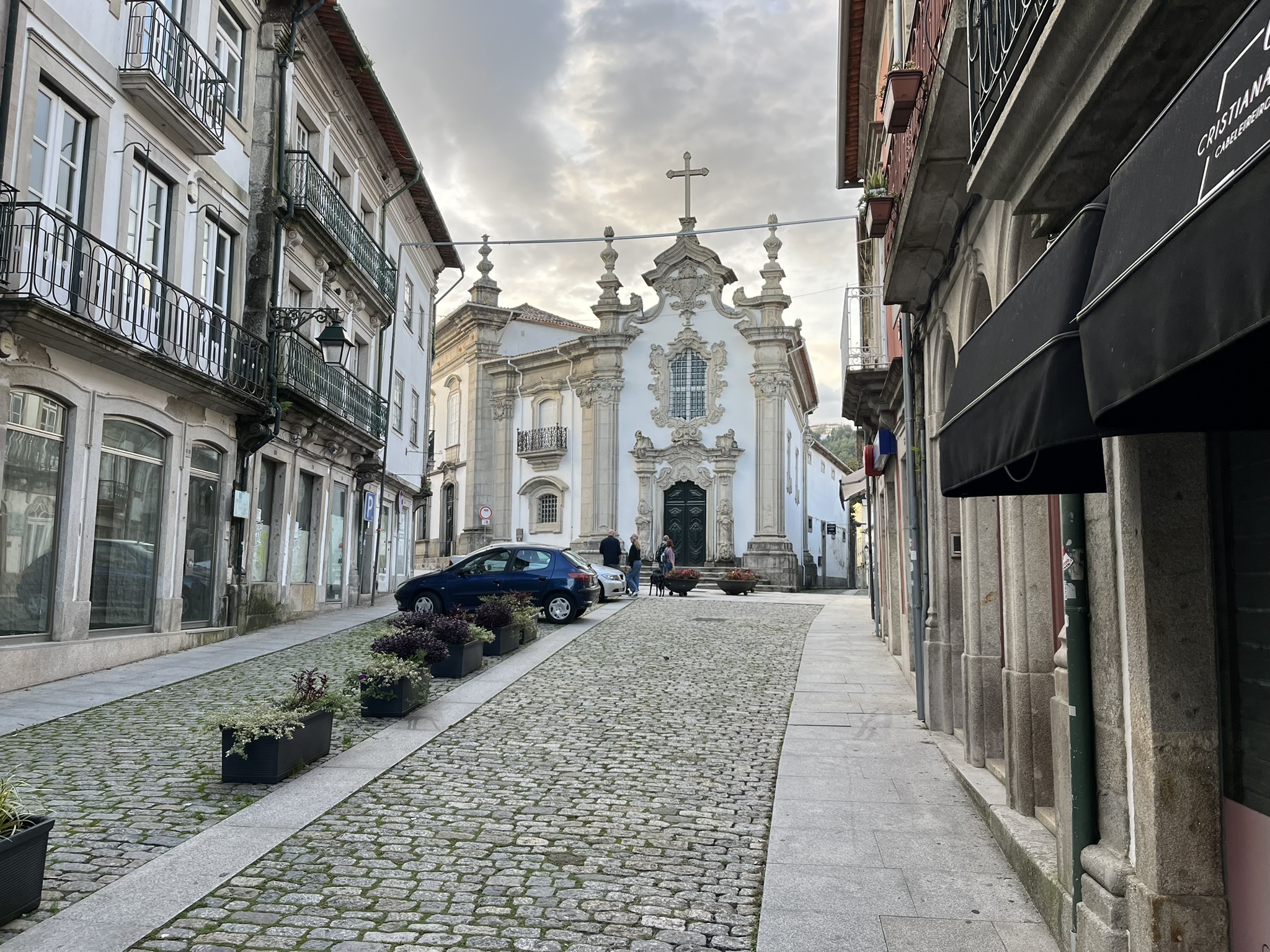Am nächsten Morgen hat es dann die Skipperin erwischt. Wir stehen früh auf um uns auf nach Portugal zu machen, als sie ausgeknockt liegen bleibt. Da es für die 30sm bis Viana do Castelo wenig Welle und und viel Motorfahrt geben wird, beschließen wir trotzdem zu fahren und der Skipper segelt bzw. tuckert halt alleine. Die Fahrt ist auch eher ereignislos bis auf ca. 1,5h, in denen plötzlich herrlicher Segelwind auftaucht. Das wird natürlich ausgenutzt, tröstet aber nicht über die zu vielen Motorstunden hinweg, die wir (und alle anderen etwas verzweifelten Segler hier oben) nutzen müssen. Es weht in diesen Wochen einfach kaum mal ein vernünftiger Wind der einen nach Süden trägt. Und wenn wir nicht immer wieder Motorstrecken einlegen, hängen wie Weihnachten noch hier oben rum. Wir kommen am Nachmittag in Viano do Castelo an, beschrieben als eines der schönsten Städtchen an der Westküste. Wir legen im Fluss an einem Besucherponton an. Die Skipperin kommt kurz mal raus ein Seil annehmen und verkriecht sich danach wieder in die Koje. Die Leute der Marina sind ausgesprochen nett und wir bekommen noch einen Stadtplan mit diversen Tipps in die Hand gedrückt. Unser Boot liegt sehr zentral und man ist in wenigen Minuten in der Altstadt von Viana. Es gibt natürlich eine wunderbare Altstadt mit Kirchen und Kapellen an jeder Ecke. Dazu Plätze mit einladenden Cafés und an jeder Ecke kleine Läden. Das ist übrigens auch in Spanien oder Frankreich ein grundsätzlicher Unterschied zu Deutschland. Hier gibt es noch die vielen kleinen Fachgeschäfte jeglicher Branche die sich auf die gesamte Innenstadt verteilen. In Deutschland gibt es fast nur noch Einkaufszentren in denen man die Sachen in riesigen Läden suchen kann oder man bestellt es halt Online. Kleine Läden haben bei uns keine Chance mehr, außer sie bieten vielleicht Ein-Euro Artikel oder Telefonkarten an.
