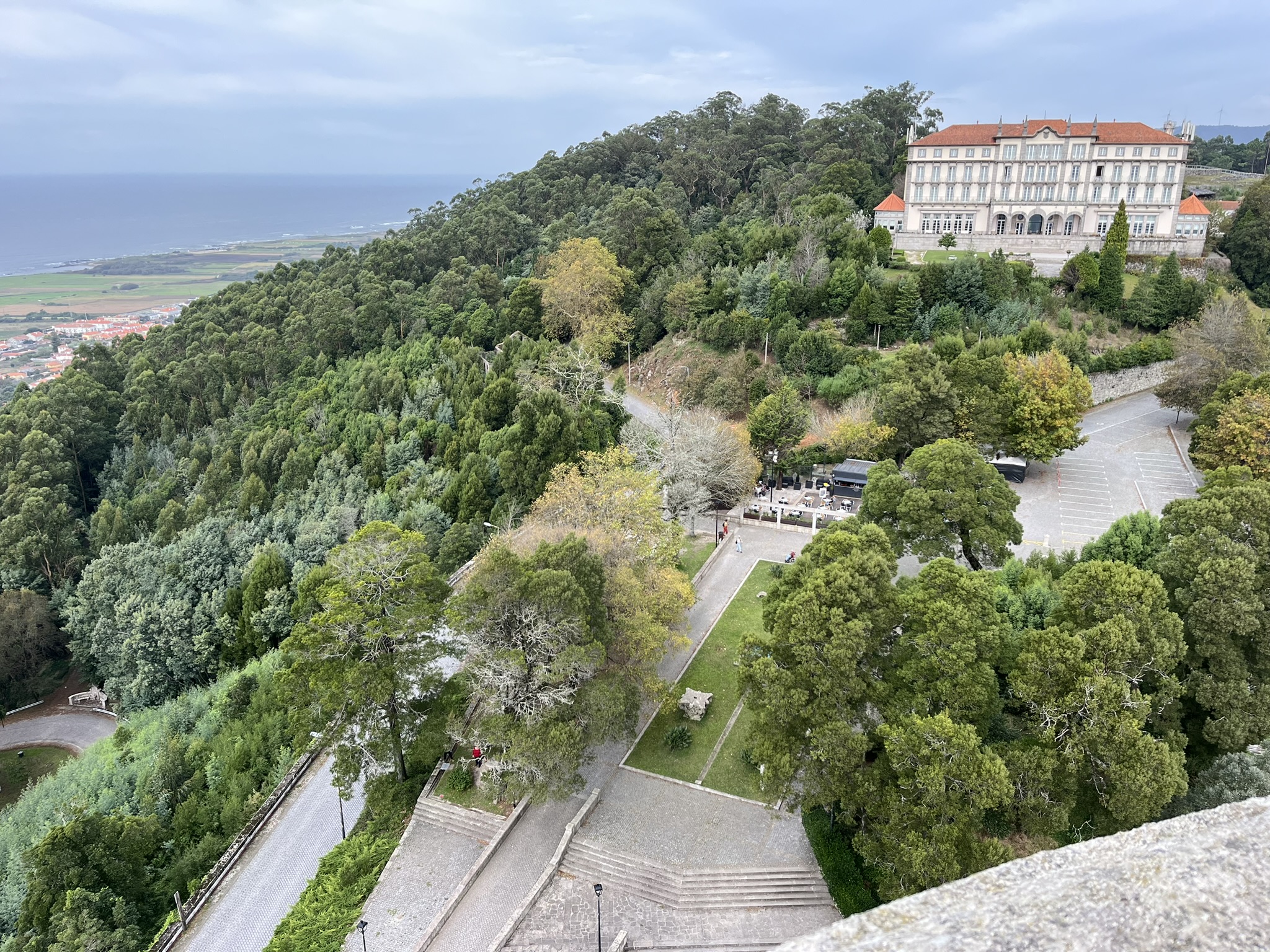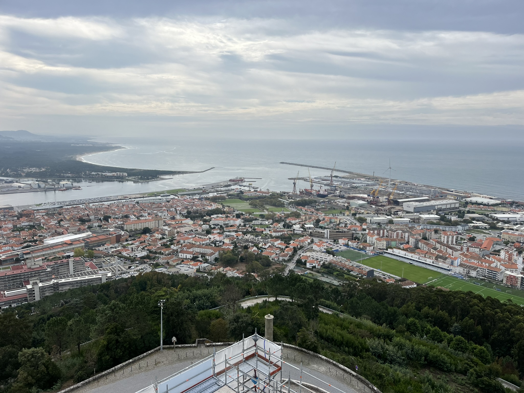 Da passt es doch, dass sich das nächste Wetterfenster mit segelbarem Wind weiter nach Porto erst am Mittwoch auftut, und wir uns noch von unseren Viren oder was es auch immer war, erholen können. Wir fahren mit der Zugbahn rauf zum Castelo auf 180m und genießen einen unglaublichen Blick auf die Stadt und die Umgebung. Der Skipper fühlt sich schon wieder ganz fit, und marschiert noch die Wendeltreppe im Castelo hoch auf die Aussichtsplattform. Am Abend gehen wir nach längerer Zeit mal wieder in die Kneipe mit Stegnachbarn von der Inti aus Brandenburg und der Lucia aus Holland. Es ist ein lustiger Abend mit interessanten Gesprächen über Segeln, und die Welt in der sich die Langzeitsegler befinden.
