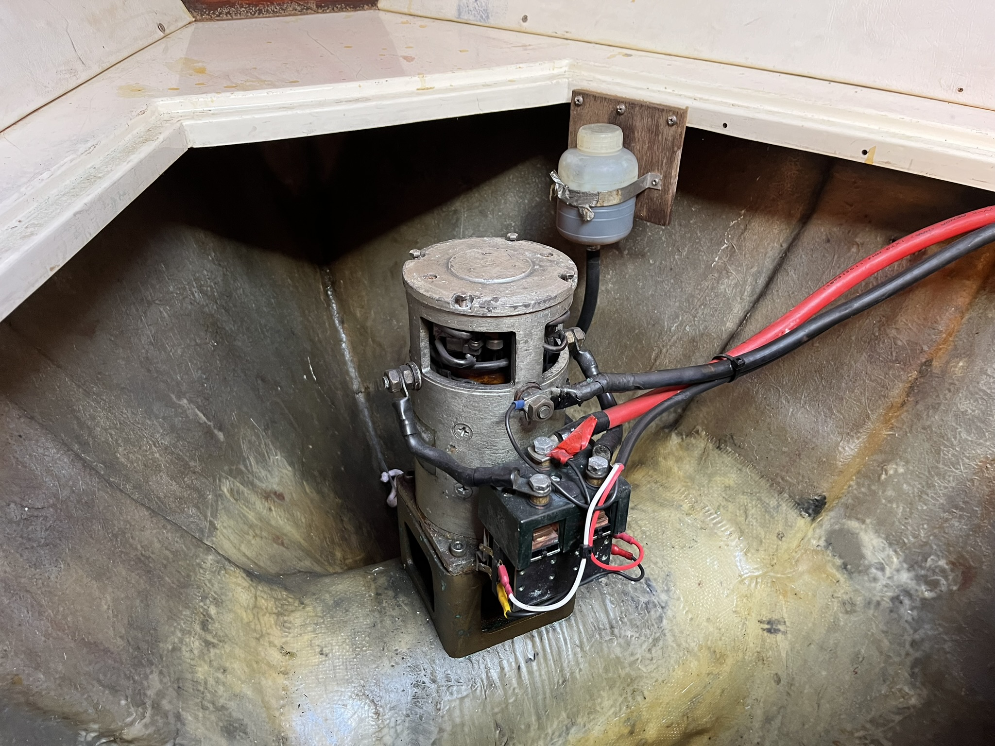 Zwischendurch haben wir auch einen Tag Schietwetter und schaffen es mal produktiv zu sein. Der Skipper beschäftigt sich mal wieder mit dem Bugstrahlruder was anfängt an Leistung einzubüßen. Die Skipperin macht etwas schöneres und näht eine Tasche.