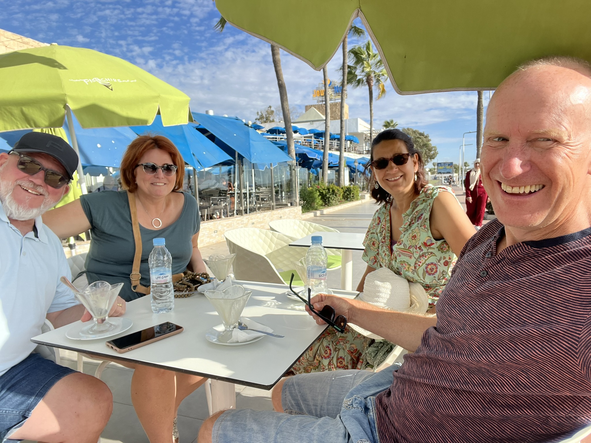 Alexandra und Achim sind gestern gelandet und verbringen ihren Urlaub 10 Tage in einem Hotel am anderen Ende der Stadt. Wir freuen uns schon sehr und sind gegen Mittag bei ihnen und lümmeln zusammen in der mondänen Anlage am Pool herum und genießen Kaltgetränke. Am Nachmittag fahren wir noch auf ein Eis und weitere Getränke in die Stadt Richtung unserer Marina wo etwas mehr los ist. Es macht großen Spaß mal wieder alte Freunde aus Wuppertal um uns zu haben. Morgen gehen die Damen in ein Hamam sich etwas verwöhnen lassen, und die Herren treffen sich an Bord. Der Skipper muss mit den Handwerkern klären ob es eine Chance gibt den neuen Wassertank zu realisieren und wann das Getriebe fertig wird.
