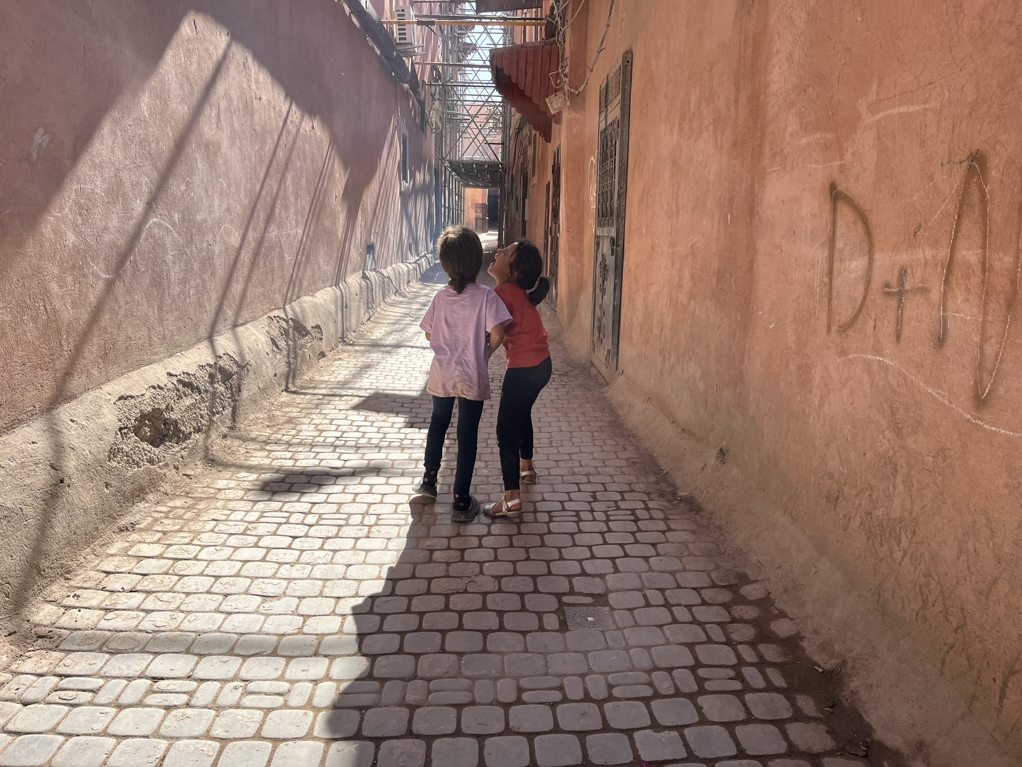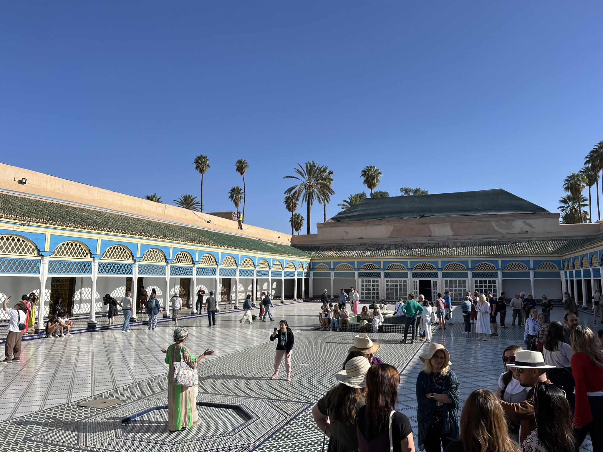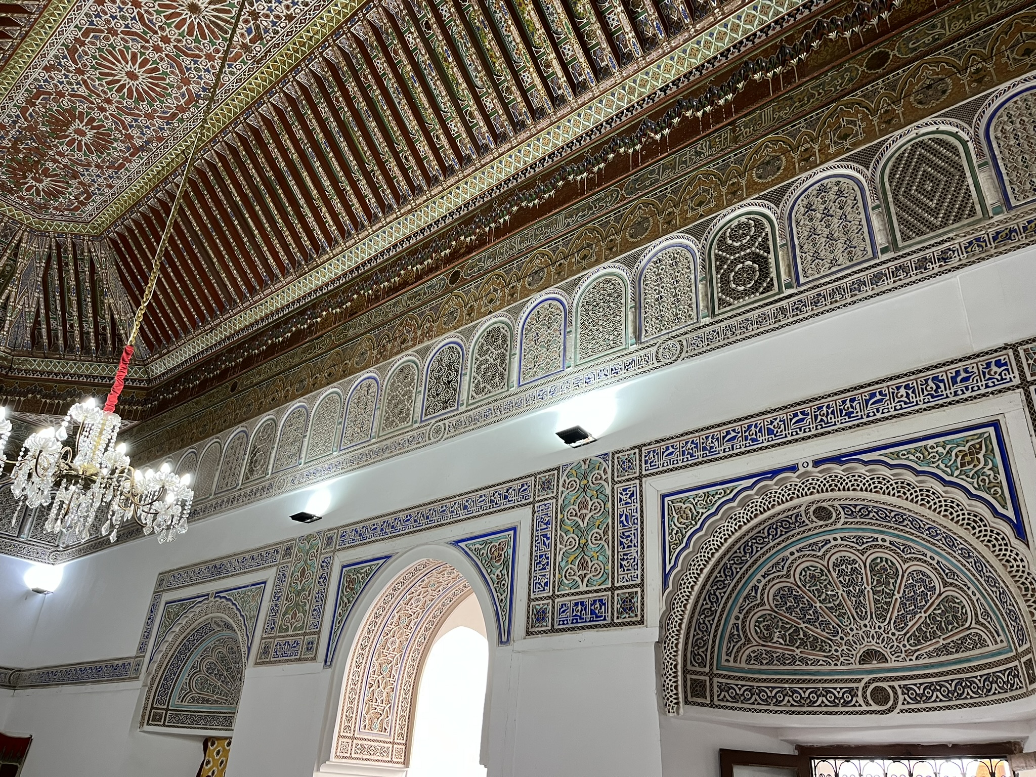 Am nächsten Tag besuchen wir eine Touristenattraktion, den Bahia-Palast. Der besteht aus 160 Zimmer und einer riesigen Gartenanlage. Wir werden bitter enttäuscht. Von den Zimmern sehen wir vielleicht 20, die Gartenanlagen sind fast alle nicht zugänglich und wir schieben uns mit Menschenmassen durch die paar Räume. Was wir sehen ist schön gestaltet, aber unter dem Strich lieblos und viel zu wenig für den hohen Eintrittspreis. Es fällt in die Kategorie: Das hätten wir uns schenken können. Am Nachmittag gehen wir noch ein paar interessante Viertel besuchen. Zum Beispiel gibt es ein hübsches jüdisches Viertel in dem es noch eine Synagoge gibt. Aber ansonsten wird es doch relativ stark vom Islam geprägt.