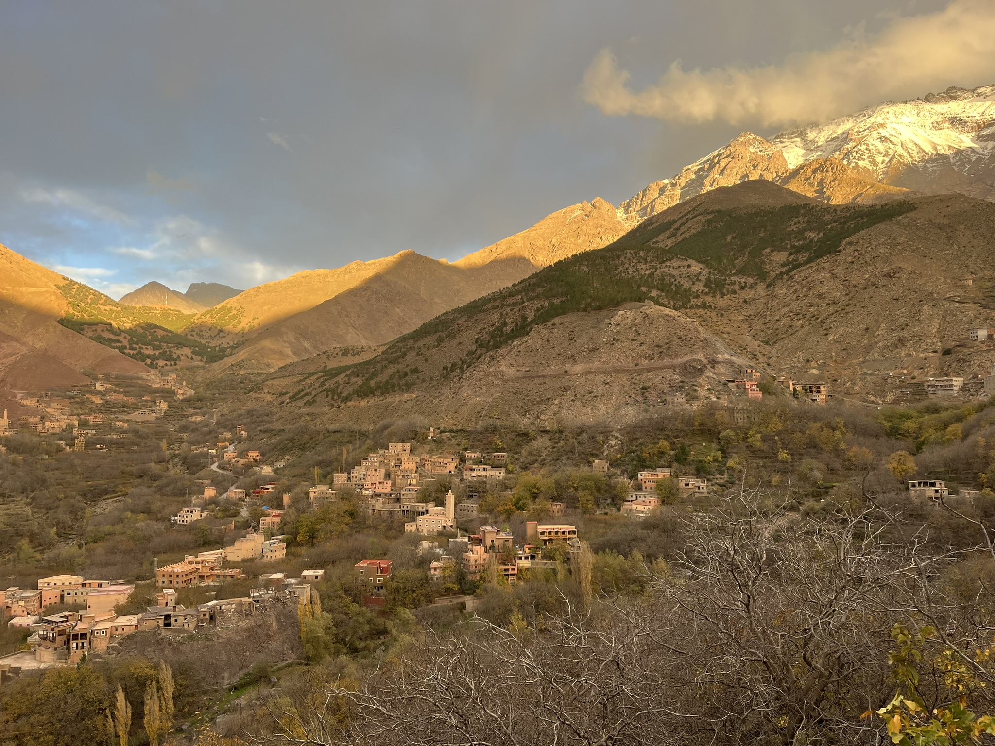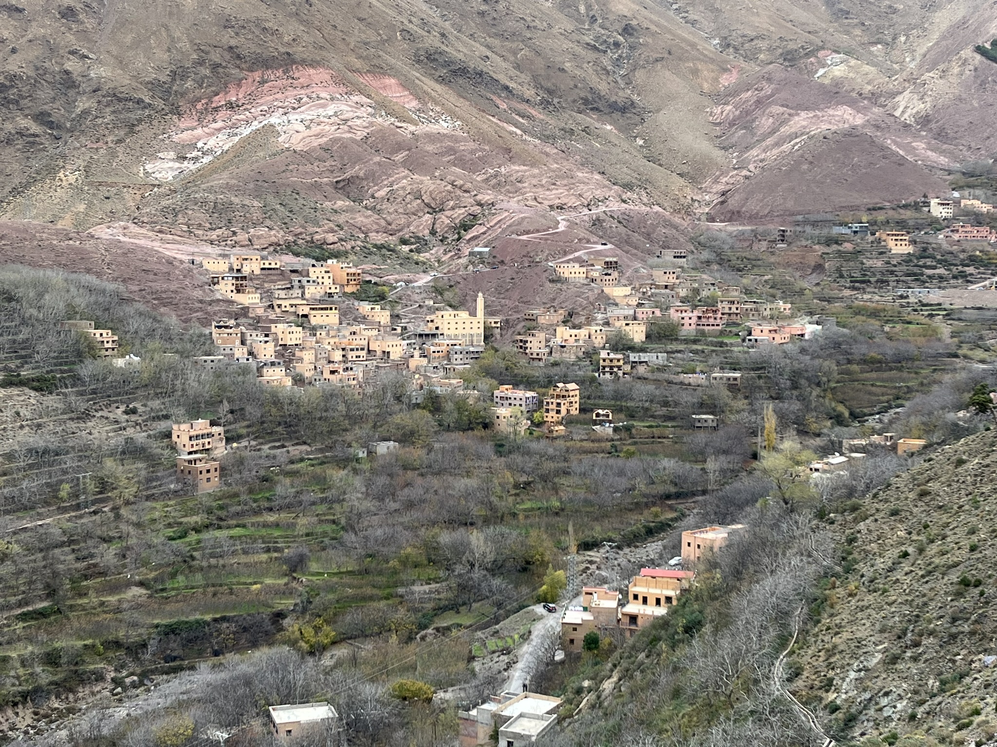 Wir hätten bestimmt noch einige Tage mehr in Marrakesch verbringen können aber irgendwie wird uns der Trubel hier etwas zu viel. Und so sind wir froh, dass wir Richtung Süden in das Atlas Gebirge fahren können. Dort erleben wir den absoluten Gegensatz nämlich Ruhe. Die Fahrt dauert gerade mal 2h und das Ziel ist der kleine Ort Imlil. Wir parken etwas außerhalb und suchen uns eine Wanderung bei Komoot raus. Es sind 8,5km und 320 Höhenmeter. Das sollten wir doch noch hinbekommen. Der Weg geht erstmal steil hinauf und führt dann über einige Schotterwege an einem Wasserfall vorbei durch ein kleines Bergdorf. Von weitem sieht es so aus, als wäre das Dorf verlassen. Wenn man dann hindurchgeht, sieht man aber doch den ein oder anderen Menschen und vor allem Katzen. Wunderschön, die Gipfel der 4000er Berge sind schneebedeckt und werden überragt vom höchsten Berg Marokkos, dem Jebel Toubkal. Zurück in Imlil müssen wir noch eine abenteuerliche Bergstraße mit viel Gegenverkehr überstehen, und kommen an unserer Herberge an. Über einen Abhang führt eine sehr steile Treppe nach unten wo wir mit einem Minztee empfangen werden. Unser Zimmer ist große Klasse. Gemütlich und relativ modern eingerichtet mit eigenem Balkon und One Billion Dollar View auf das Tal. Der Herbergsvater ist sehr bemüht und macht uns sogar noch ein tolles Abendessen, eine Tajine mit Zitronenhähnchen. Krass sind die Temperaturunterschiede, in Marrakesch war es Mittags noch 30° und hier in den Bergen werden es knapp unter 20°. Hier wären wir gerne noch ein paar Tage geblieben aber leider müssen wir zurück zum Boot wo gerade der Wassertank eingebaut wurde.