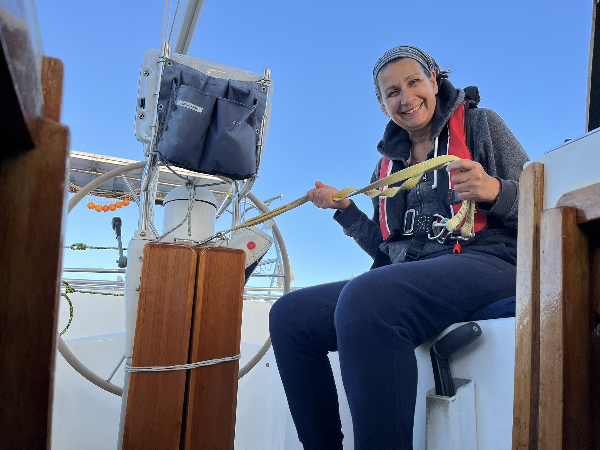 Zum ersten Mal müssen wir wegen zu wenig Wind den Motor anschmeißen. Die Welle hat dafür gesorgt, dass unsere Genua nur noch hin und her schlägt. Wir hoffen, dass am Abend der Wind zumindest für die Nacht noch mal zurückkommt.