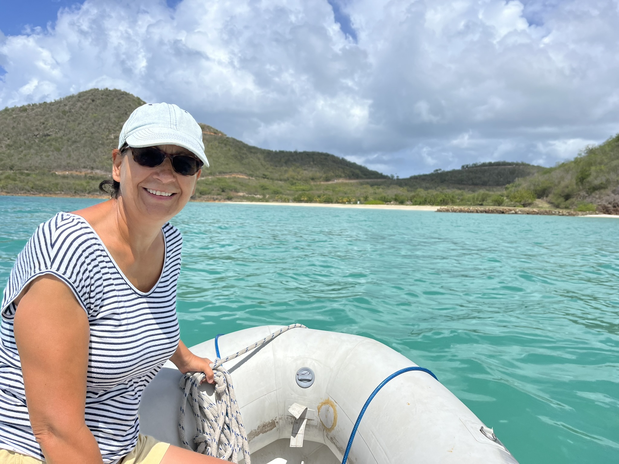 Nach soviel Arbeit haben wir uns mal einen Strandtag verdient. Auf der Westseite unserer Bucht gibt es einen einsamen Strand zu dem wir mit dem Beiboot rüberfahren. Das entpuppt sich als Glücksgriff. Wir plantschen eigentlich zum ersten Mal auf der Reise so richtig lange im Wasser und liegen am Strand rum. Und wir sind tatsächlich die einzigen hier, das ist ja wie in der Karibik….. :-).