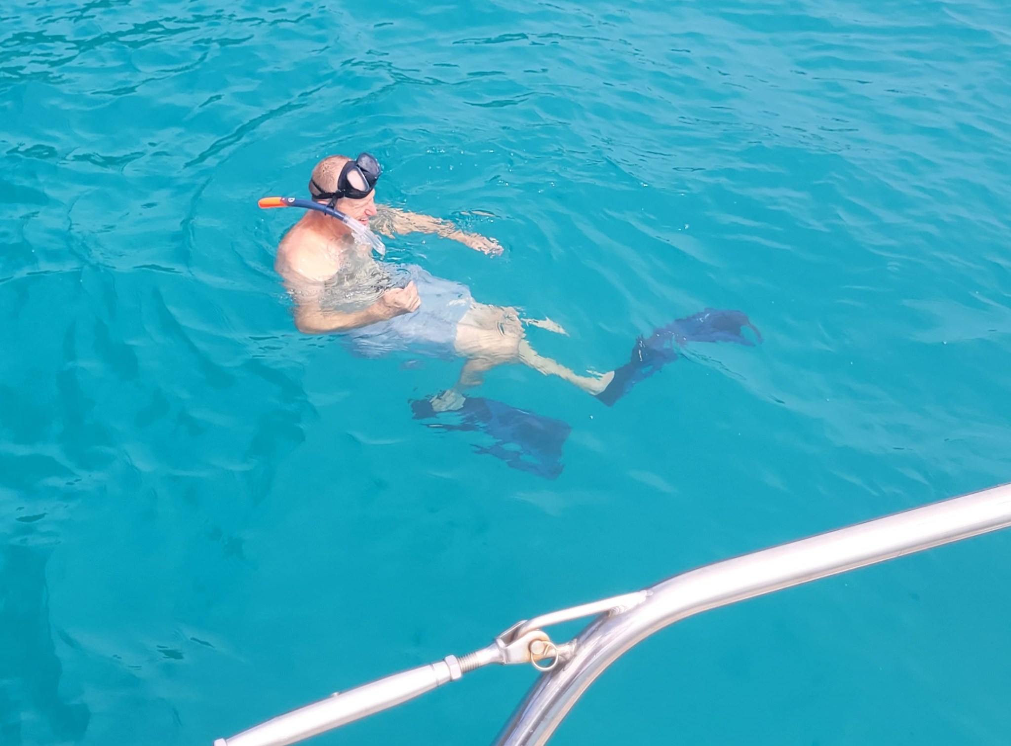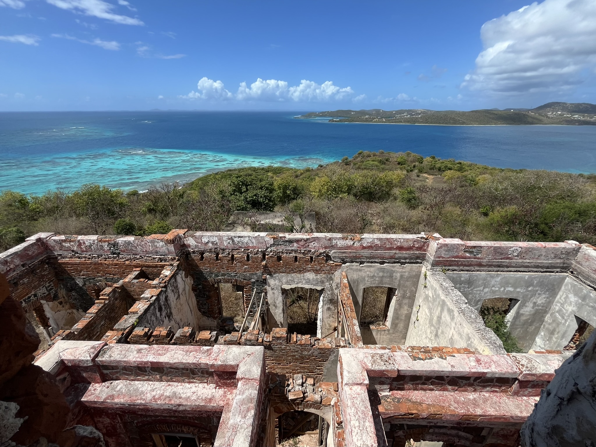 Wir fahren ein paar Meilen um Culebra herum auf die kleine Nachbarinsel Culebritas. Dort gibt es die Tortuga Bay, die gut geschützt in einem Riff an einem auch sehr schönen Strand liegt. Einwohner gibt es hier nicht. Tagsüber sind hier einige Boote mit Tagestouristen da, und in der Nacht so 3-4 Ankerlieger. Wir genießen die Zeit, lümmeln rum, gehen auf der Insel spazieren und liegen auch mal am Strand. Zwischendurch gehen wir am Riff schnorcheln und sehen bunte Fische und einen großen Rochen. Am Boot schwimmen auch immer wieder Schildkröten vorbei. Eine Tour geht hinauf zu einem Leuchtturm der vor 100 Jahren gebaut wurde, und inzwischen seit vielen Jahren vor sich hingammelt. Von oben hat man einen schönen Blick auf die Buchten der Insel.
