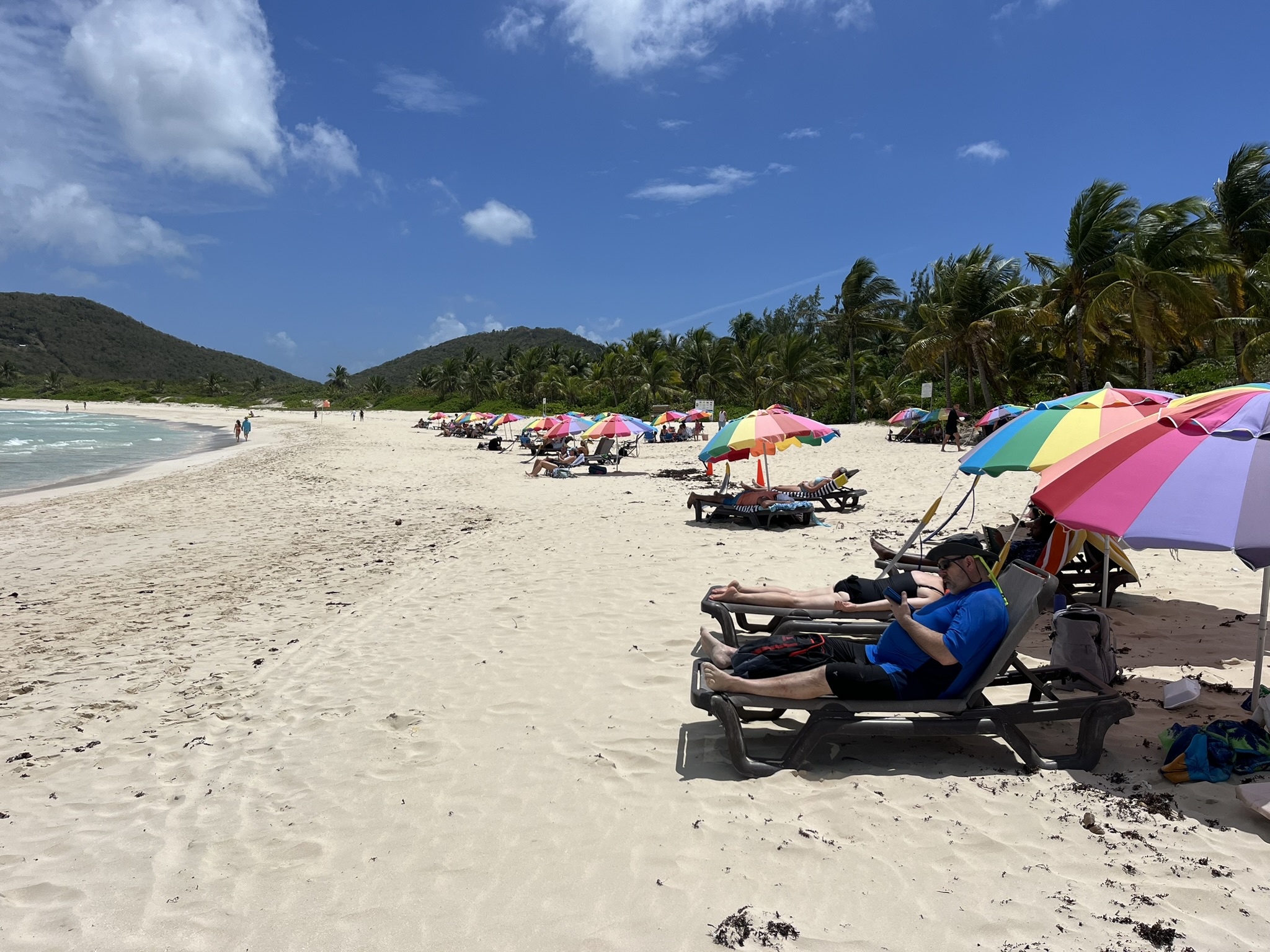 Eine weitere Tour über die Insel führt uns um die Bucht herum in der wir vor Anker liegen. Wir wollten uns ein kleines offenes Golfkart mieten, aber die waren zum einen zu teuer und zum anderen auch erst nächste Woche wieder verfügbar. Durch das schwüle Wetter fällt es uns aber schwer längere Strecken zu gehen und so bleibt es bei dem Spaziergang. Es scheint, als hätte jeder Einwohner der Insel (inkl. der Touris) ein eigenes Fahrzeug und daher gibt es keinen Busverkehr. Am Ende gehen wir noch mal groß einkaufen. Wir wollen als nächstes auf eine kleine Insel um die Ecke fahren, von wo aus wir dann weiterreisen werden. Das heißt, es gibt erst in 5 Tagen wieder eine Einkaufsmöglichkeit. Groß Einkaufen auf Culebra heißt, in einem der beiden kleinen Supermärkte hoffentlich das nötigste finden.