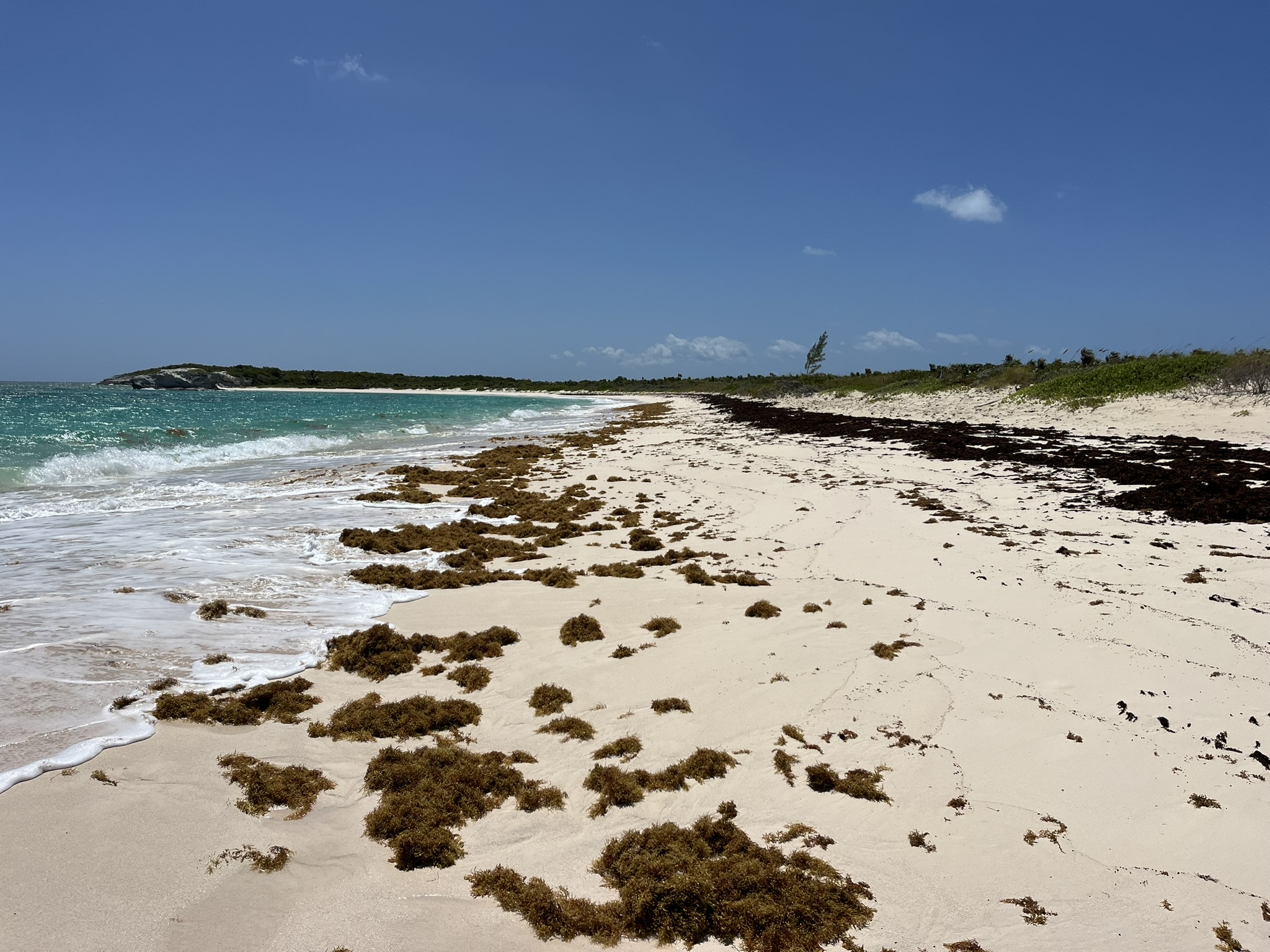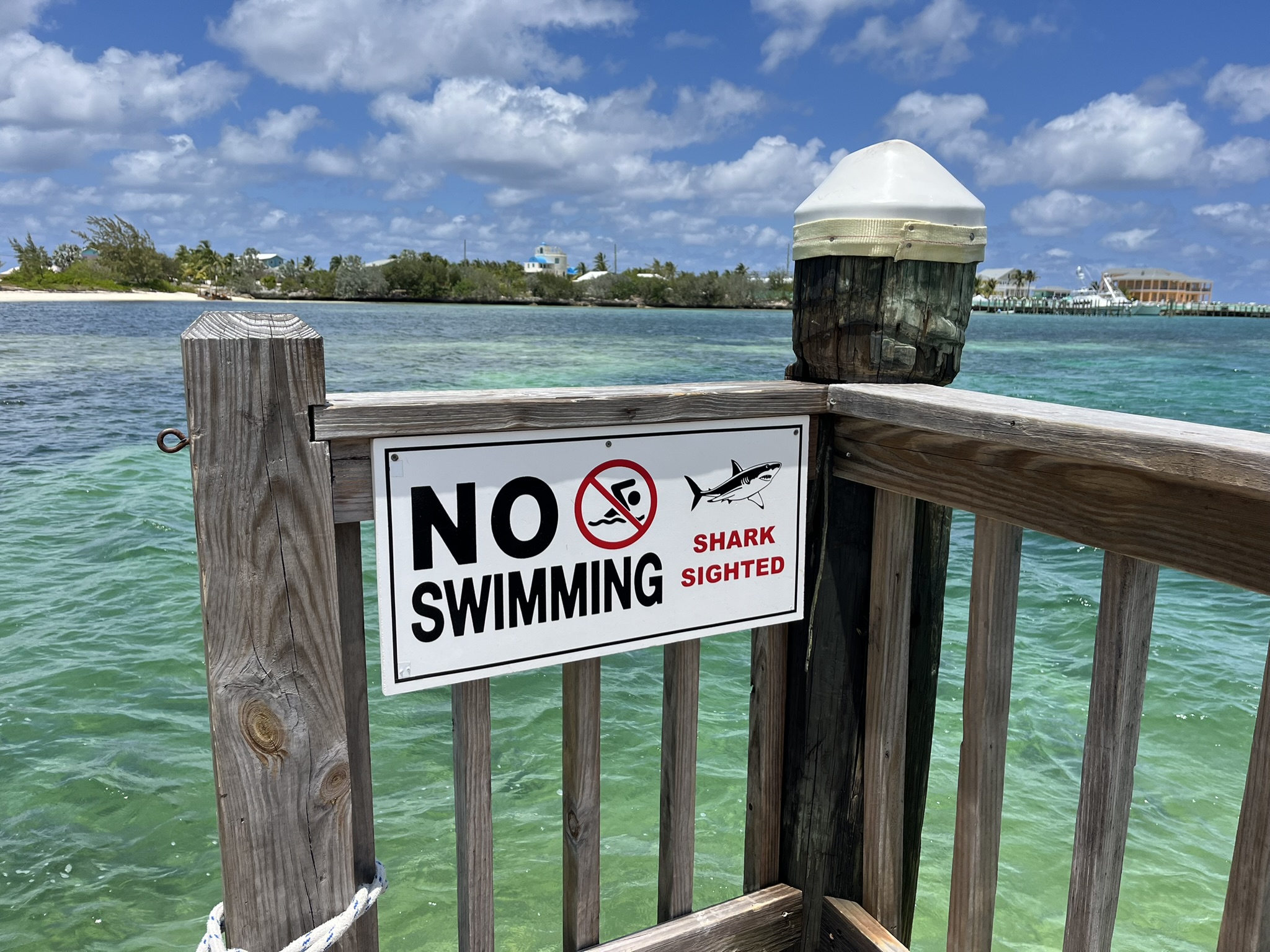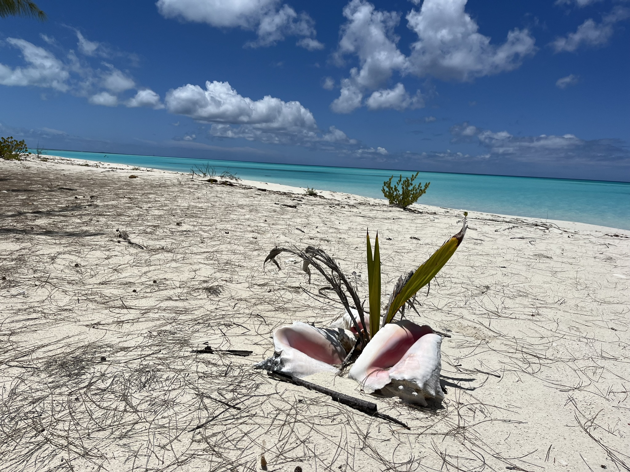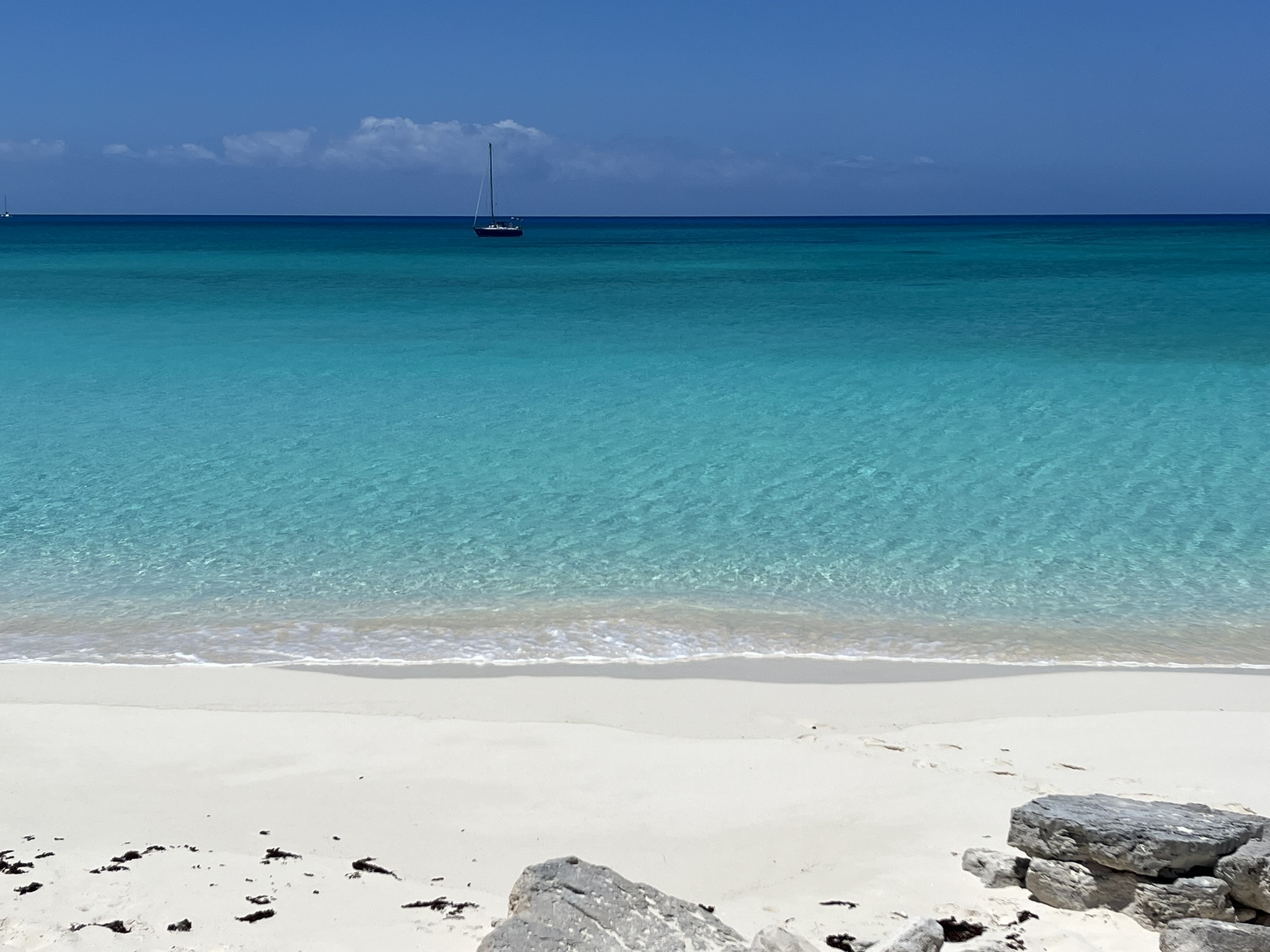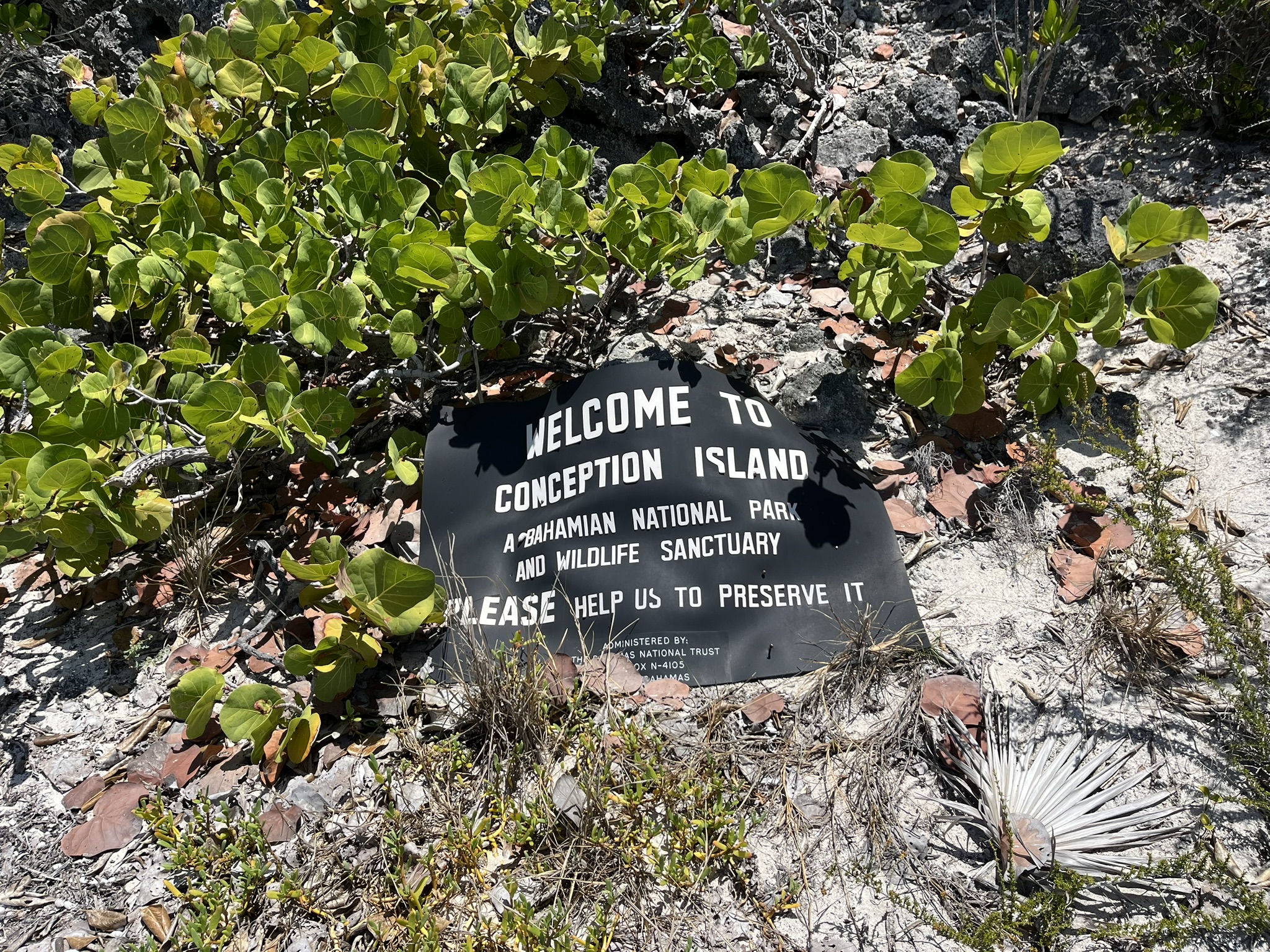 Heute geht es weiter zur nächsten Insel, nach Conception Island. Es ist ziemlich stürmisch, als wir den Anker hochholen. Und auch die Fahrt über 45 sm macht nicht so richtig Spaß, weil die Wellen von der Seite zwar nicht sehr hoch, aber in sehr kurzen Abständen kommen, was uns ordentlich durch die Gegend schaukeln lässt. Die Bucht vor Conception Island ist wunderschön und, zum ersten Mal auf den Bahamas, auch relativ ruhig. Die Insel ist ein Nationalpark, unbewohnt und voller schützenswerter Tiere. Das bemerkenswerteste Tier ist die „Conception Bank Silver Boa“. Das ist eine endemische Schlange, die es nur auf dieser Insel gibt und die erst vor 10 Jahren entdeckt wurde. Man schätzt die vorhandene Population auf weniger als 150 Tiere. Die Skipperin meinte nach dem Bericht, dass sie keinen Fuß auf die Insel setzen würde. Zum Glück hat sie es sich am nächsten Tag noch anders überlegt. Der Skipper macht sich eher Gedanken um die Haie, die hier im Wasser ihre Kreise drehen. Den ersten sehen wir direkt nach dem Ankern, neugierig um unser Boot schwimmen. Es ist ein etwa 2 Meter großer Riff- oder Ammenhai. Unser Tag auf Conception Island ist wunderbar. Wir machen einen langen Spaziergang über die Strände und Felsen auf die Nord- und Ostseite. Während es auf der Westseite, wo wir vor Anker liegen, ruhig ist, der Strand kaum Verschmutzung hat, ist es auf der gegenüberliegenden Seite wild, mit viel Seegras am Strand und einer ganzen Menge Plastikmüll. Das liegt halt am permanenten Ostwind, der alles auf die Strände schwemmt. Wir liegen anschließend noch am Strand rum und plantschen im Wasser. Allerdings nur solange, bis wir sehr nah am Ufer im flachen Wasser den nächsten Hai entdecken, der auf der Suche nach Futter seine Bahnen dreht. Dann lernen wir noch ein nettes amerikanisches Paar kennen, das auch in der Bucht ist. Die haben uns nach West Palm Beach eingeladen, wo wir gerne an einer Mooring festmachen dürfen, wenn wir mal vorbeikommen.