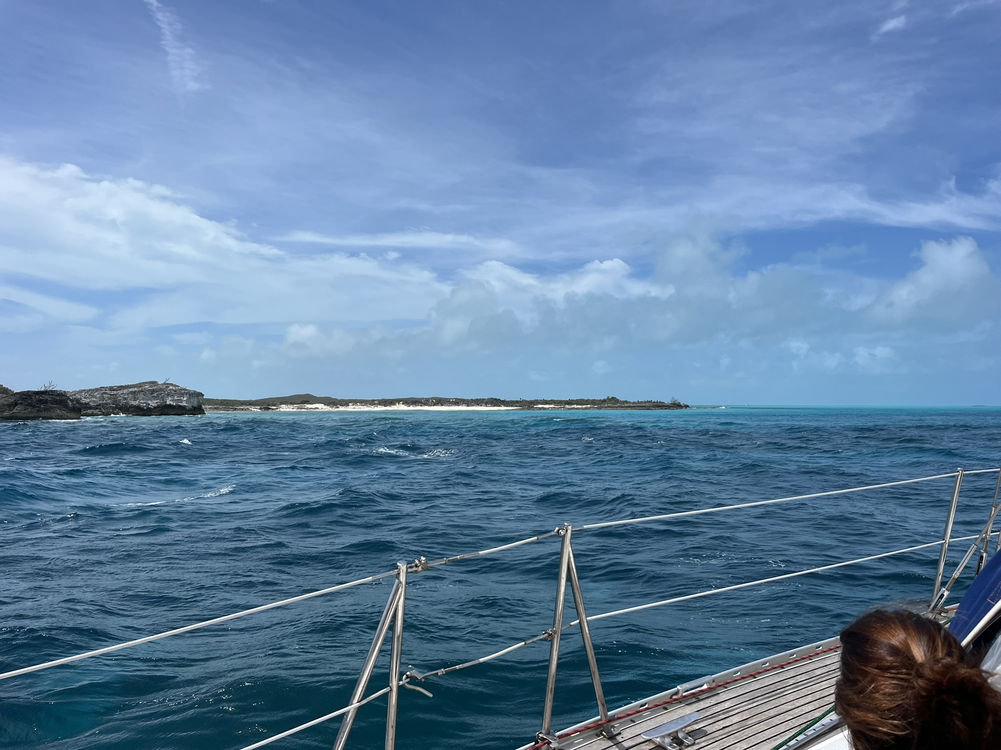 Wir wären gerne noch einige Tage auf den Exumas geblieben, aber unseren Takt bestimmt mal wieder der Wind. Der wird nämlich ab übermorgen für eine Woche seine Tätigkeit einstellen. Und da unser Schlag rüber nach Eleuthera fast 60 Seemeilen sind, wollen wir dieses letzte gute Wetterfenster nutzen, um nicht 12 Stunden motoren zu müssen. Der Wecker klingelt um 6 Uhr, und um 7 Uhr sind wir schon durch den Pass durch. Der Wind ist perfekt, und im Laufe des Tages auch die immer kleinere Welle. Am Abend erreichen wir den Paw Paw Beach, der sich allerdings als sehr unruhig herausstellt. Und zwar so furchtbar, dass wir am nächsten Morgen nach dem Frühstück die Flucht ergreifen und weiterfahren.