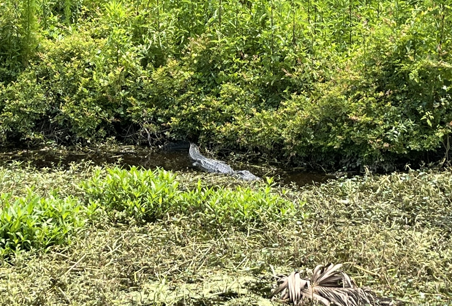 Wir müssen mal wieder die steifen Beine auf Vordermann bringen und laufen durch die Stadt, die breiten Boulevards hoch, bis zu einem wunderschönen Naturpark, dem Egan’s Creek Greenway Trail. Der Trail geht durch eine Mischung aus Steppe, Urwald und Sumpflandschaft und wird von diversen wilden Tieren bewohnt. Neben Unmengen an Vögeln gibt es Schildkröten, die sich an dem Flüsschen tummeln, und auch ein paar Alligatoren. Es sollen dort mindestens acht unterschiedliche Schlangenarten leben und natürlich deren Futter, z. B. kleine Hasen und viele Mäuse. Das Besondere an diesem Park ist: Es gibt keinerlei Zäune oder Ähnliches. Die Tiere sind anscheinend nicht gefährlich, solange man auf den Wegen bleibt und z. B. die Alligatoren nicht füttert. Das ist uns schon beim letzten Mal aufgefallen. Parks und Natur miteinander zu verbinden und sehr natürlich zu halten, können die Amerikaner. Wir laufen stundenlang durch die Gegend, sind ständig auf der Suche nach Tieren und genießen diese Umgebung.