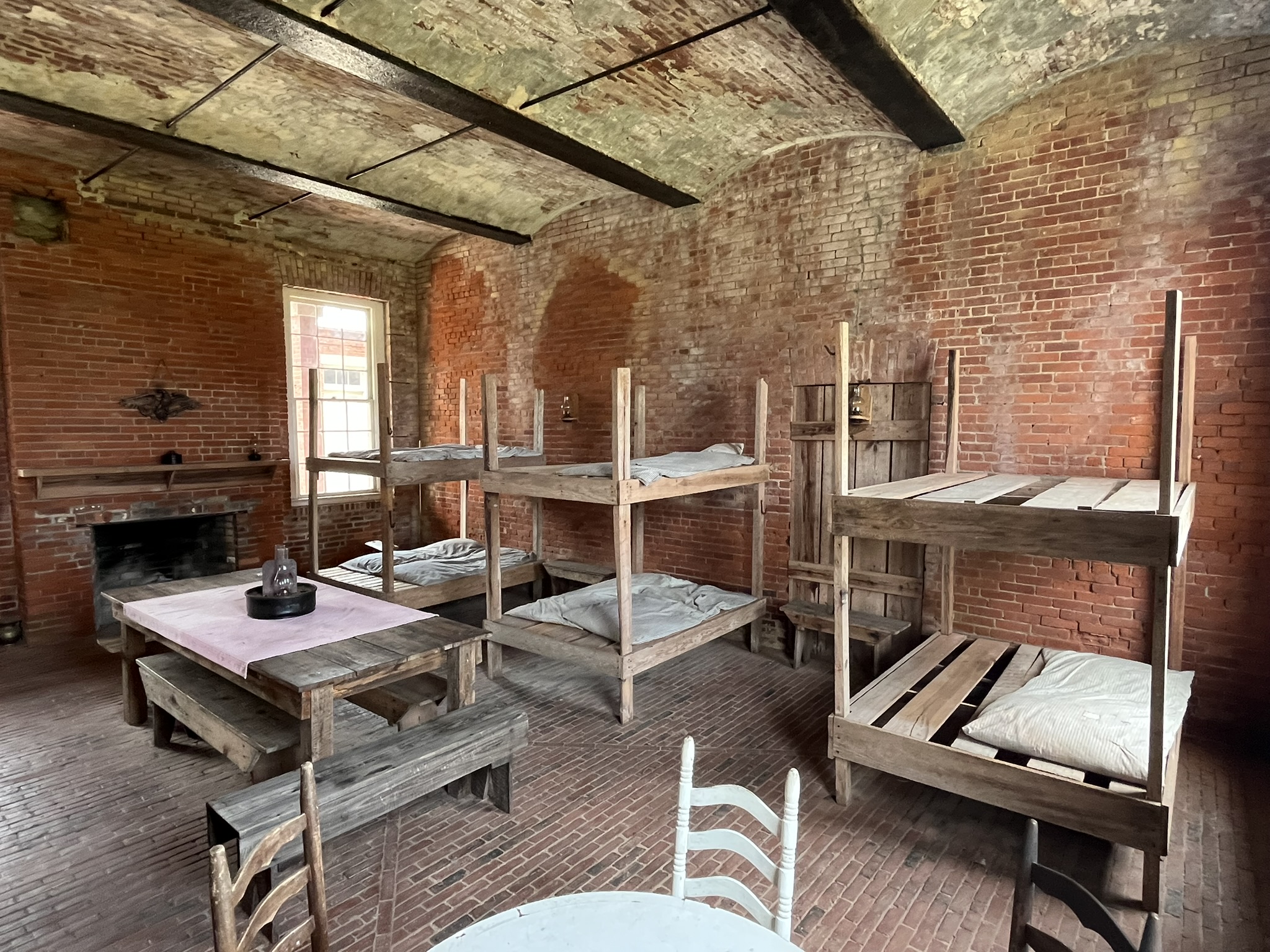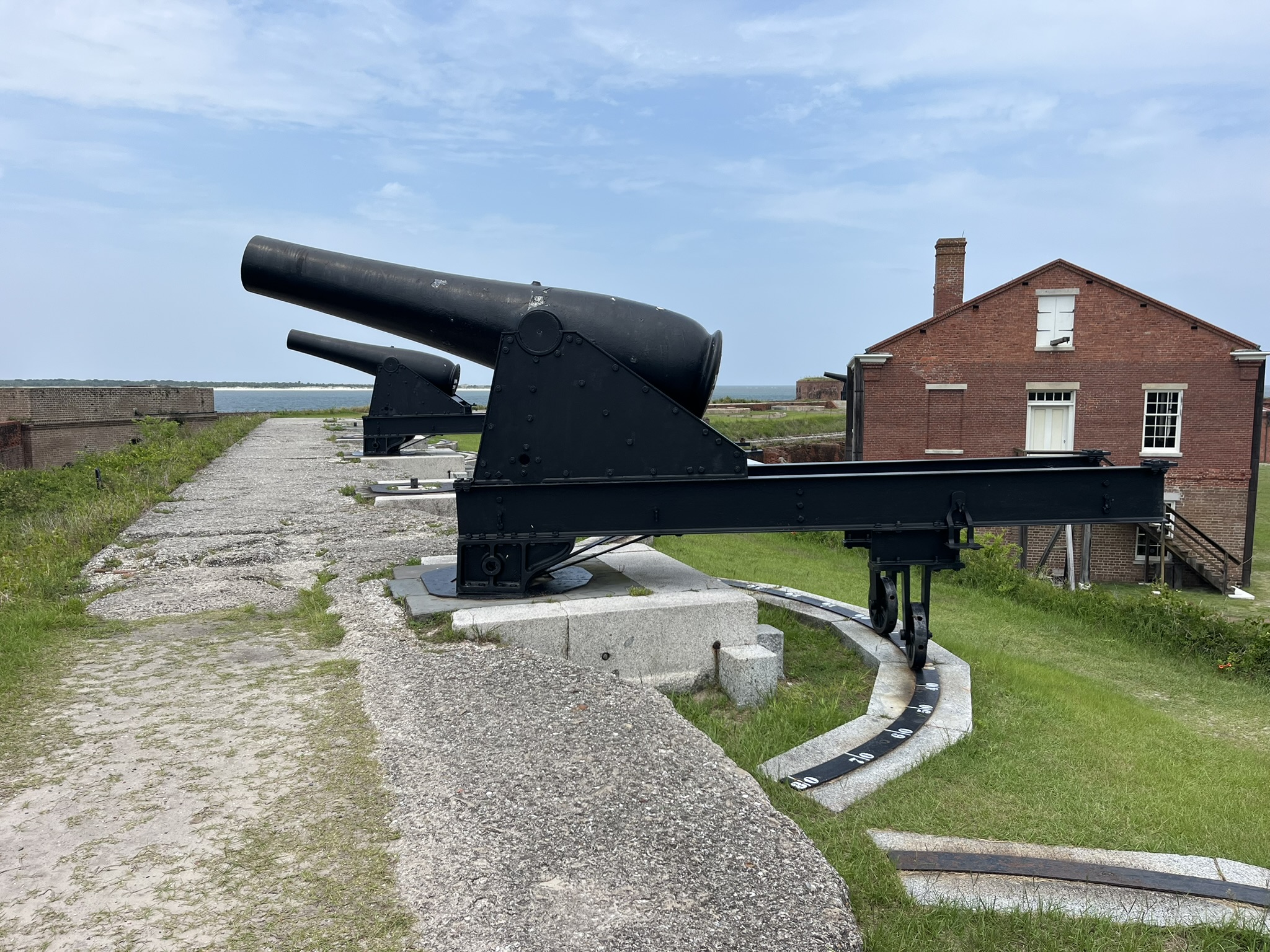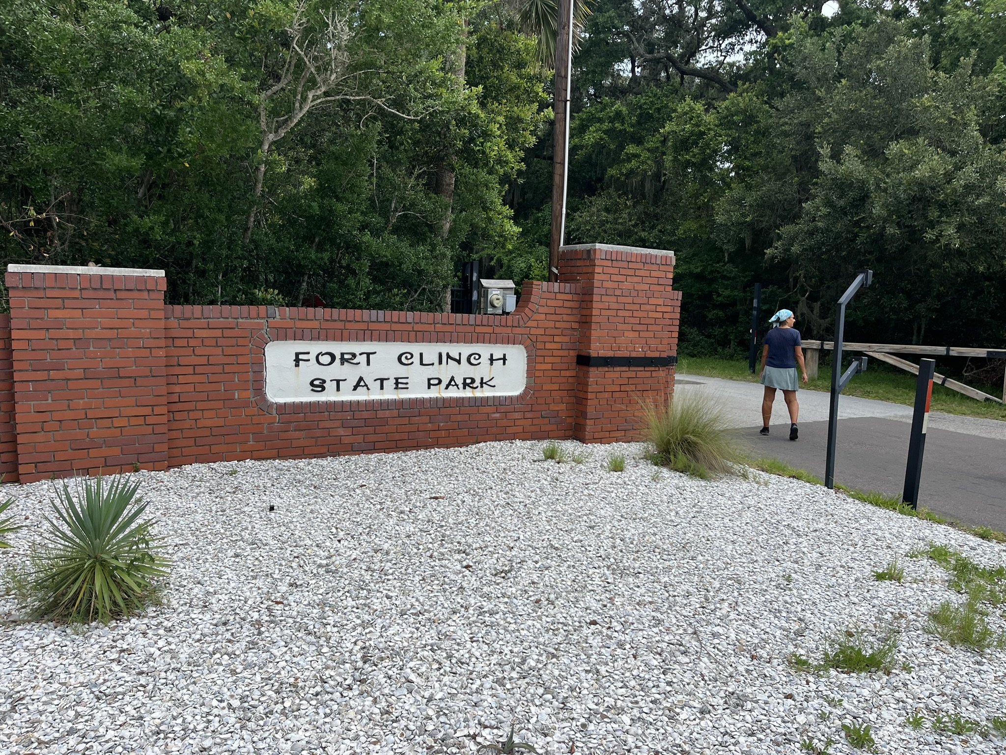Nach diesem bewegungsmäßig kleinen Ausruhetag machen wir heute einen Ausflug in Richtung amerikanischer Geschichte. Es gibt im Norden der Insel ein altes Fort aus dem amerikanischen Bürgerkrieg. Der Weg dorthin ist wieder ganz schön weit, aber auch wunderschön. Diesmal ist das Dickicht etwas dichter, und die Wege sind schmaler. Fort Clinch stammt aus der Zeit um 1864, als die Südstaaten gegen die Nordstaaten kämpften. Alles ist nicht wenig patriotisch, aber eigentlich ganz interessant. Man kann die originalen Baracken besichtigen und bekommt einen guten Eindruck davon, wie furchtbar es damals gewesen sein muss, Soldat zu sein.