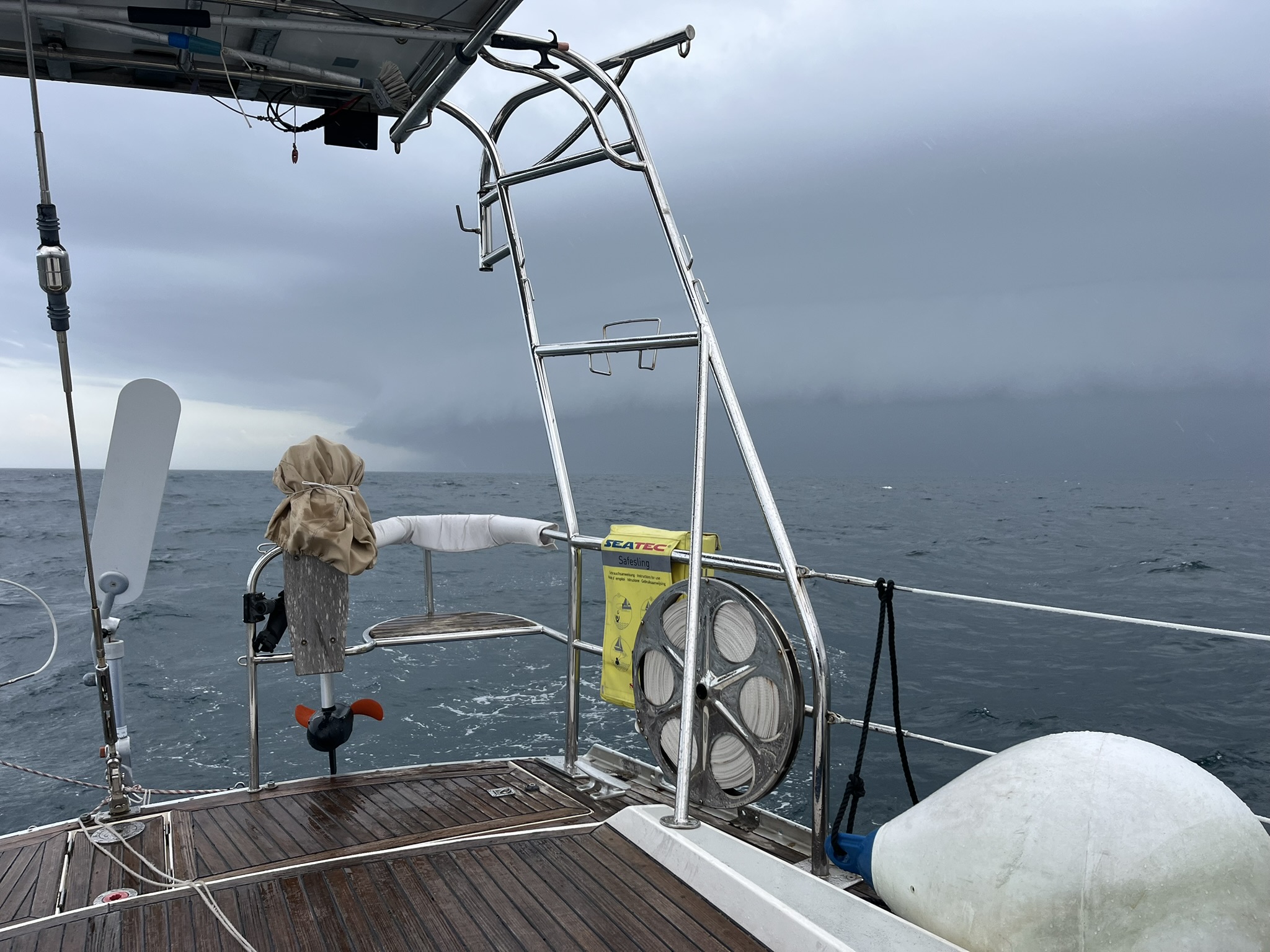 Am Boot sind wir auch aktiv und widmen uns der ein oder anderen Reparatur. Da wären zum Beispiel der Geschwindigkeitssensor, der nichts mehr anzeigt, weil er sich in dem Wasser zugesetzt hat. Die Windfahne bekommt ihre Pflege und wird komplett mit Silikonfett eingeschmiert. Die Heckleuchte geht nicht mehr, es kommt kein Strom an. Die Kabel davor sehen ziemlich verrottet aus und müssen getauscht werden. Nachdem ein Kabel durchgerissen ist, scheint klar, dass das eine größere Aktion wird, und die Aufgabe wird vertagt.