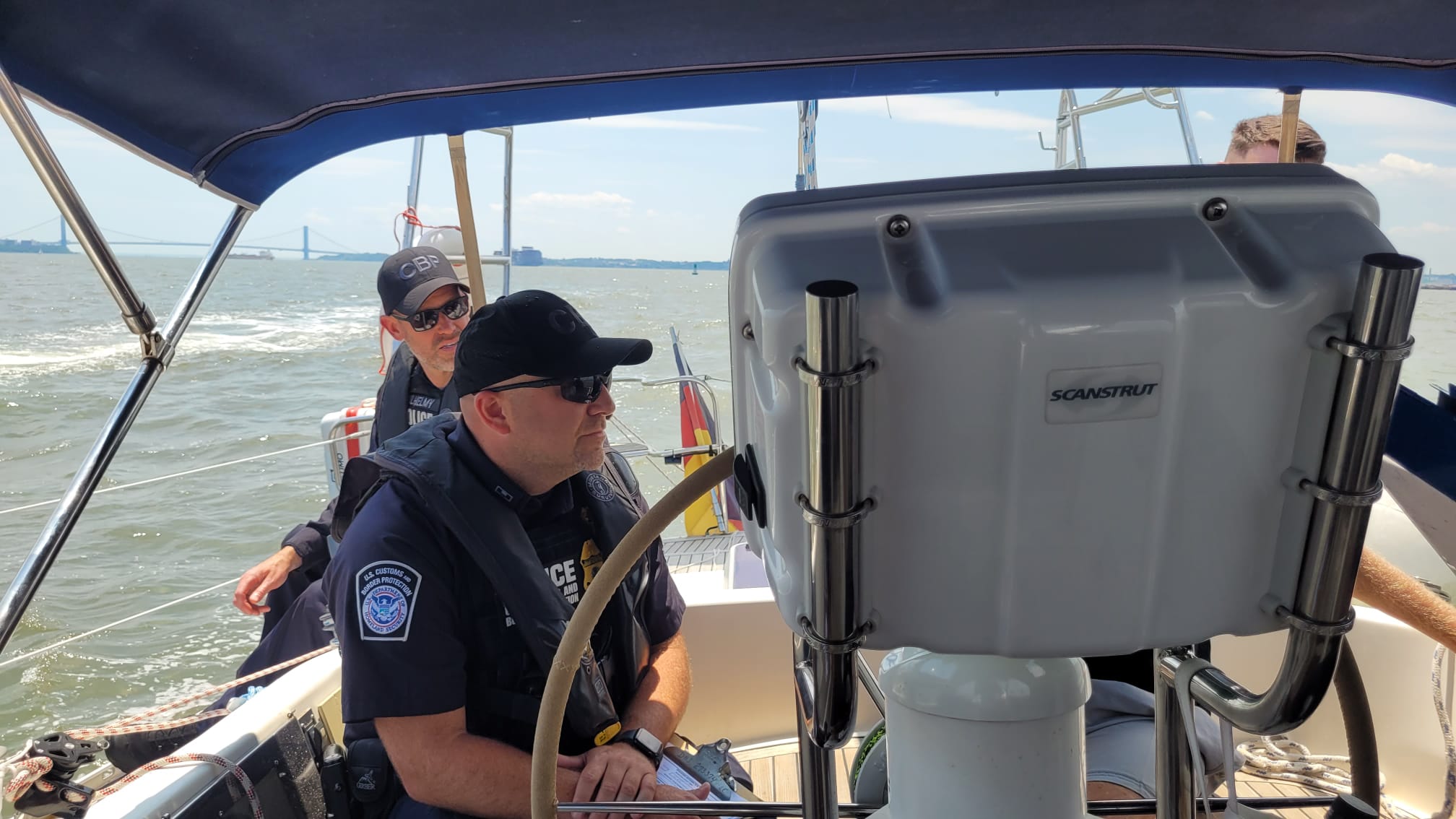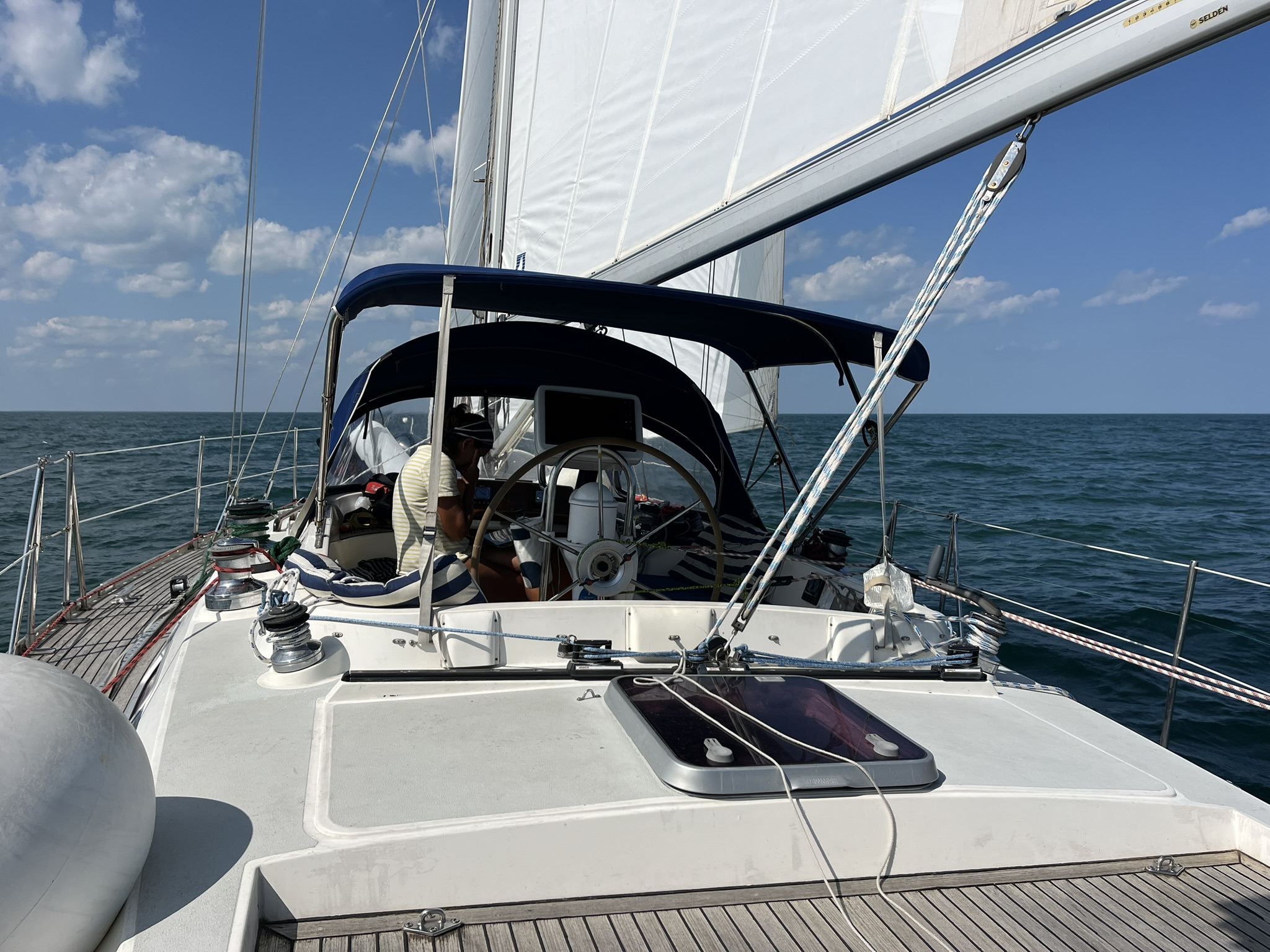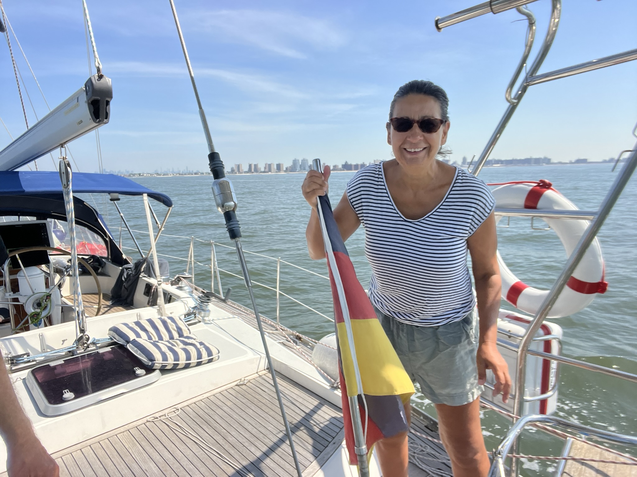 Am Anfang der 4-tägigen Tour Richtung NYC ging alles nach Plan, frische Ladung Diesel und Wasser für unsere Tanks an der Tanke bekommen und gemütlich die lange Bucht von Beaufort rausgeschippert. Zum ersten Mal verließ uns der Plan, als das Großsegel sich nicht aus dem Mast ausrollen ließ. Bestimmt eine Stunde lang haben wir es ein- und ausgerollt, bis es endlich stand. Ab dann hatten wir die ersten 2 Tage lang guten Wind. Wir mussten erstmal um das Kap Hatteras herum, welches nur bei südlichen Winden umfahren werden sollte. Das liegt daran, dass es vom Golfstrom gestreift wird und ansonsten unberechenbare Wellen entstehen können. Hat gut geklappt, und wir genossen einige Stunden lang die 3 kn zusätzliche Geschwindigkeit mitten in der Nacht. Anschließend geht es nach Norden an den Outer Banks hoch. Dort kommt der Wind von hinten, und die schrägen Wellen werfen uns ordentlich hin und her. Wir versuchen diverse Segelstellungen, bis wir ein Setup gefunden haben, bei dem die Segel aufhören zu schlagen. Am 3. Tag kommt dann der angekündigte Winddreher auf Nordwest, und wir bekommen einen halben Tag lang Wind und Welle mit 6 Bft von der Seite, was uns strapaziert, aber auch gut fortkommen lässt. Eine Welle nach der anderen überspült das Deck. Die folgende Nacht bietet dann wieder ein ganz neues Bild, nur noch schwache Winde, und wir dümpeln mit 3–4 kn weiter die Küste hoch. Am Morgen des letzten Tages, 30 sm vor dem Ziel, muss dann erwartungsgemäß der Dieselwind ran. Danach schält sich im Morgengrauen am entfernten Horizont die Skyline von New York durch den Nebel. Sehr, sehr, sehr aufregend – ein riesiger Meilenstein auf unserer Reise kommt näher. Da wir spät dran sind, verpassen wir leider den mitlaufenden Strom nach New York rein und müssen die letzten 6 Stunden gegen den Strom motoren und haben nur halbe Geschwindigkeit. Kurz vor unserem Ankerplatz an der Freiheitsstatue noch ein Aufreger. Wir bekommen Besuch von der US-Coast Guard, die sich mit einem Schnellboot nähern und ungefragt mit 4 schweruniformierten Beamten an Bord kommen. Einer checkt mit Natascha unten das Boot und will Sicherheitsausrüstung sehen. Die anderen checken Papiere und unseren Aufenthaltsstatus. Alles in Ordnung, insgesamt sehr freundlich, und nach einer halben Stunde sind sie wieder verschwunden. Sie meinten, sie würden nur ausländische Boote kontrollieren, es gäbe zur Zeit nicht so viele. Warum wohl? Und dann der große Moment, wir ankern neben der Freiheitsstatue, mit dem One-Million-Dollar-View auf Statue und die Skyline von Manhattan. Wir sind sehr glücklich und genehmigen uns das Anlegerbierchen bzw. Weinchen.