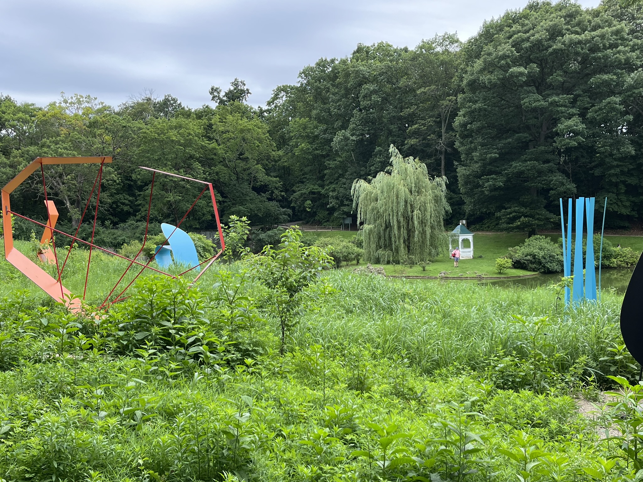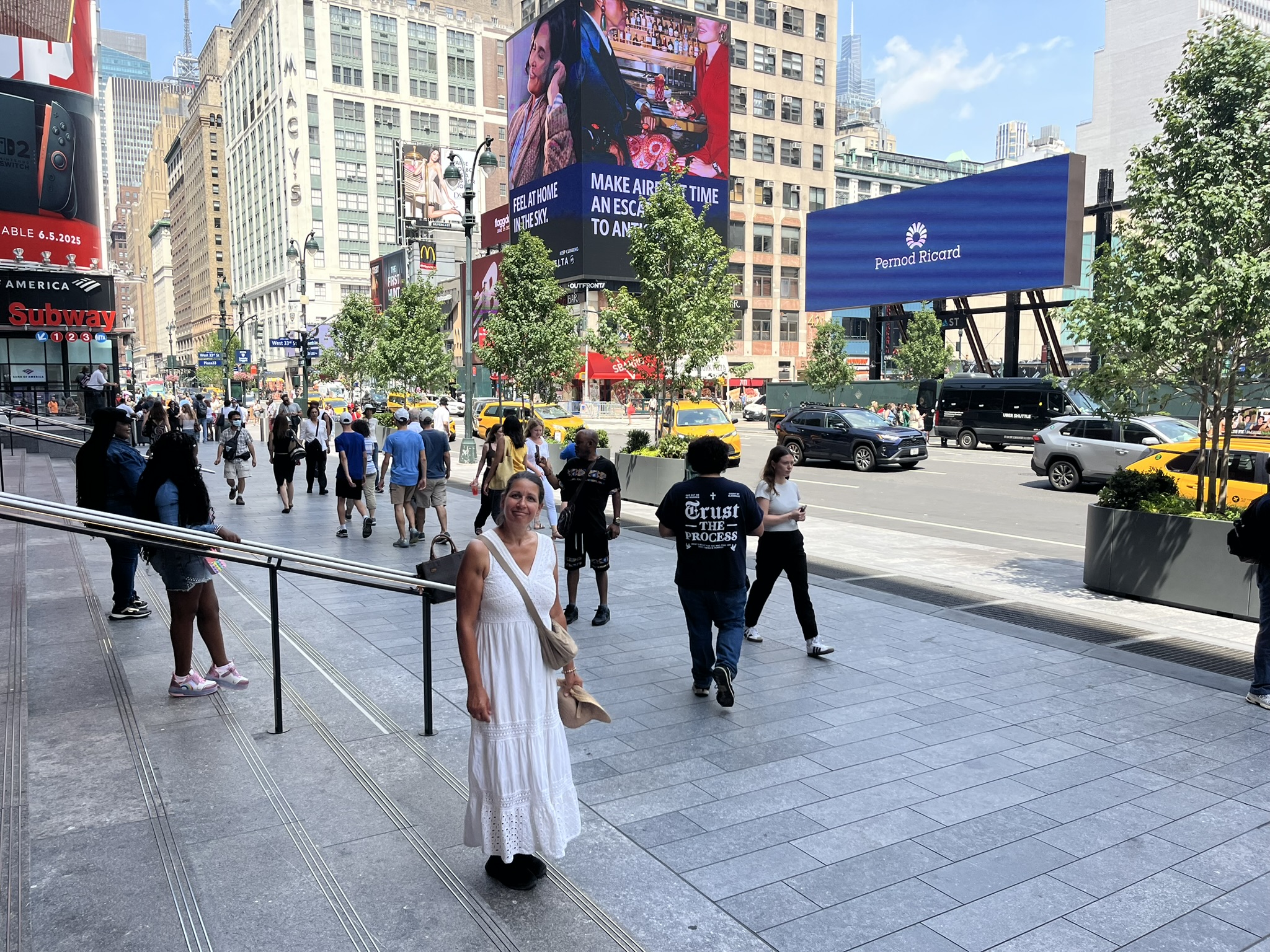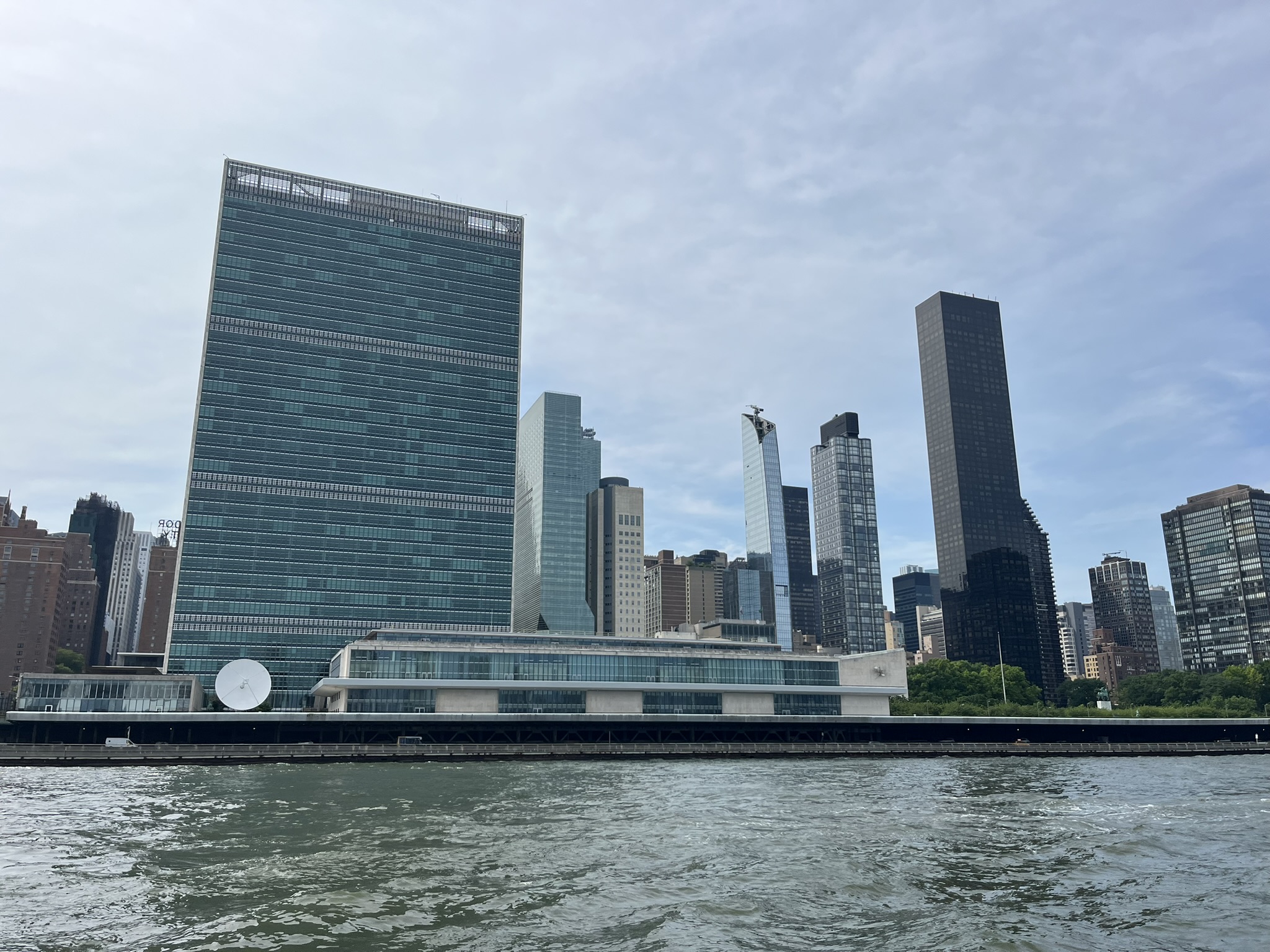 Obwohl es heute bis 38 °C werden soll, entscheiden wir uns, nach New York zu fahren. Lustigerweise gab es nicht nur bei der Freiheitsstatue die Huihui aus Remscheid, sondern neben uns liegt auch der Kat Momo, der ebenfalls aus Remscheid kommt. Unser Nachbarstädtchen scheint der Nabel der Welt zu werden. Wir hatten in der Vergangenheit schon Kontakt per WhatsApp mit Carla und Volker, aber persönlich kannten wir uns noch nicht. Also holen wir die beiden mit unserem Beiboot ab und fahren gemeinsam nach New York. Der Zug braucht 50 Minuten, und schon ist man mitten im Getümmel an der Penn Station. Wir waren vor acht Jahren schon einmal hier und möchten nun in den nächsten Tagen möglichst Orte entdecken, die wir damals noch nicht gesehen haben. Einer davon ist die High Line. Das ist eine ehemalige Hochbahn, die durch den Stadtteil Chelsea führt. Sie ist nur 2,5 km lang und wunderschön angelegt. Überall ist grün, und man ist immer etwas oberhalb der Straßen und hat einen guten Überblick. Danach biegen wir zum Hudson River ab und landen am Pier 57. Das ist eine kleine Halbinsel, die sehr nett gestaltet ist, und man kann dort mit Blick auf den Fluss verweilen. Anschließend schlendern wir die verschiedenen Avenues wieder hoch, bis es uns eindeutig zu heiß wird. Wir verziehen uns ins größte Kaufhaus Amerikas, in das Macy’s. Dort gibt es 12 Ebenen, und oben sind sogar noch historische Rolltreppen aus Holz. Ansonsten ist es ein Kaufhaus wie alle anderen auch, nur halt größer.