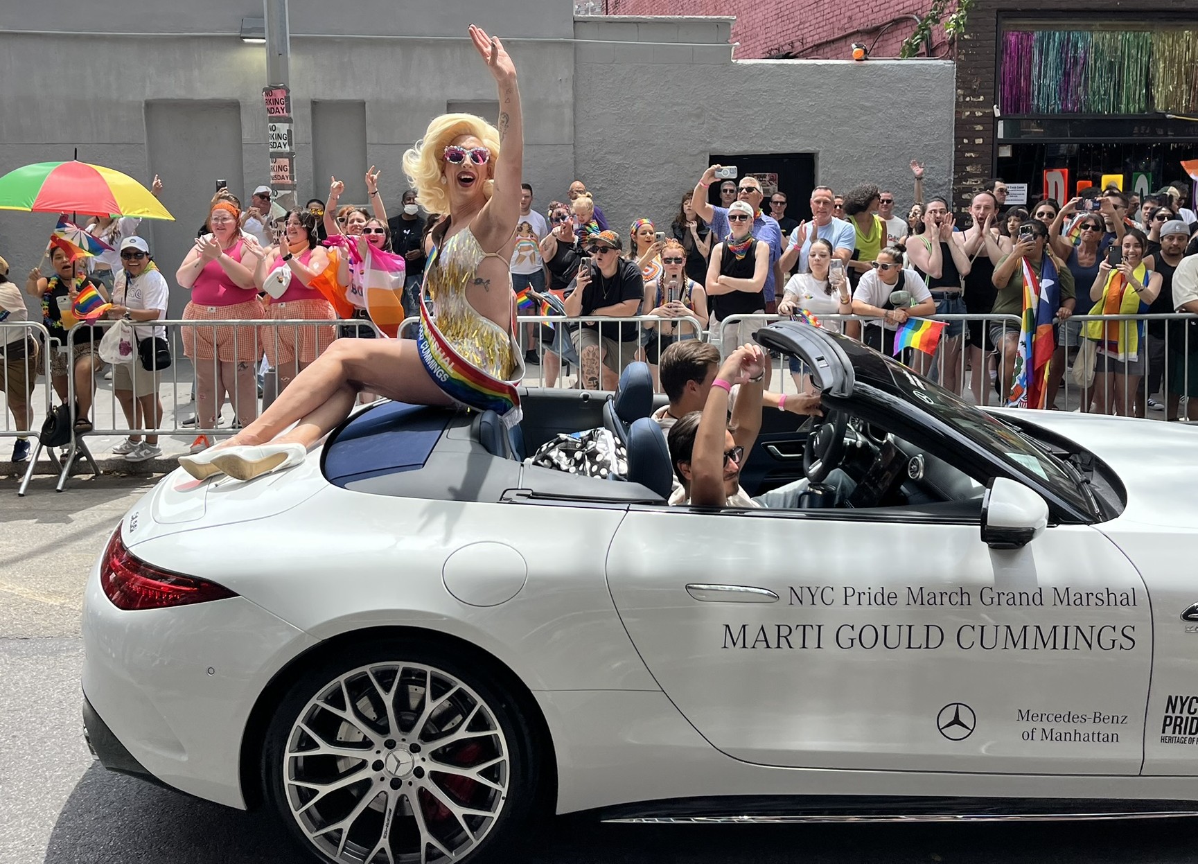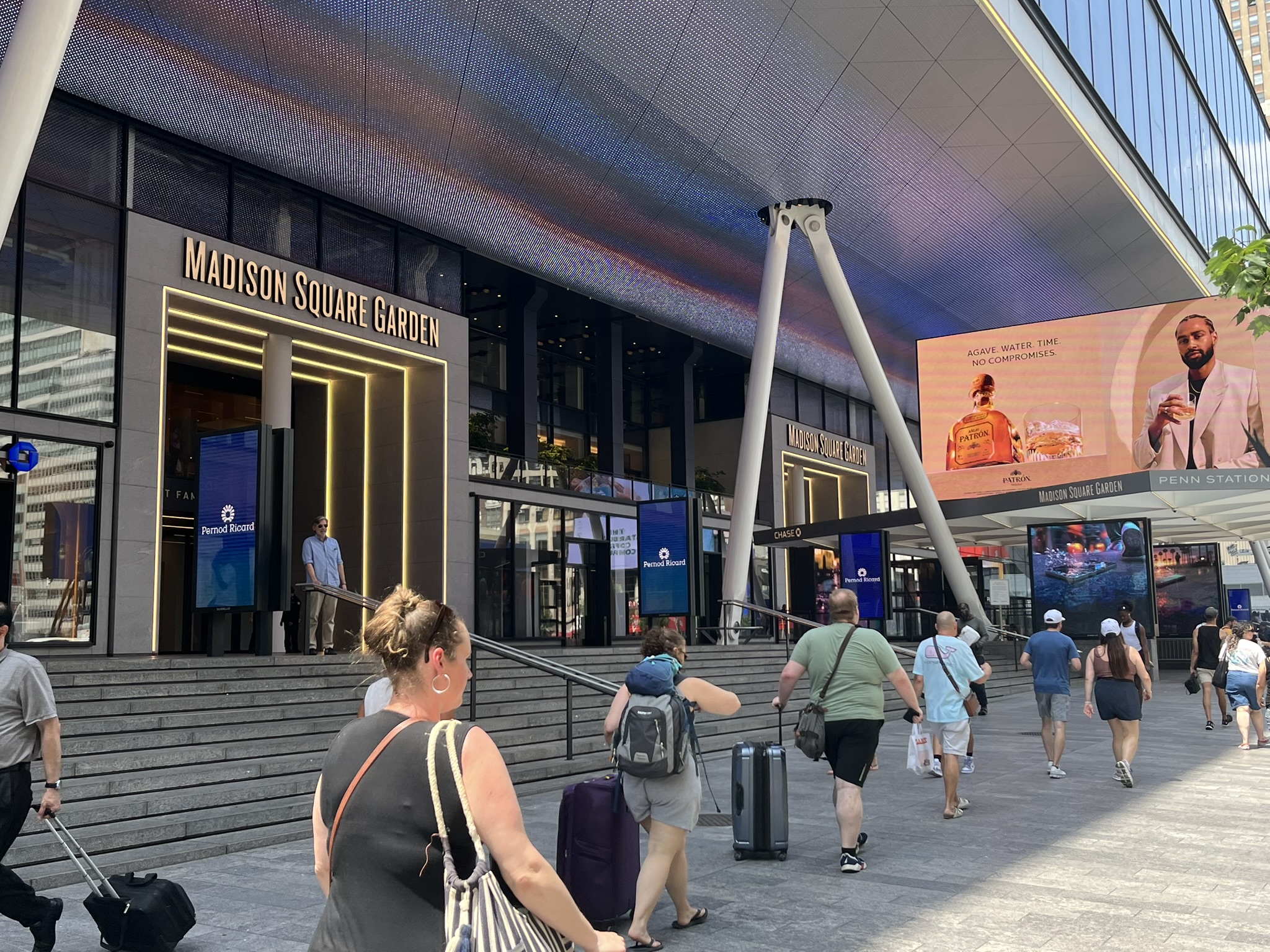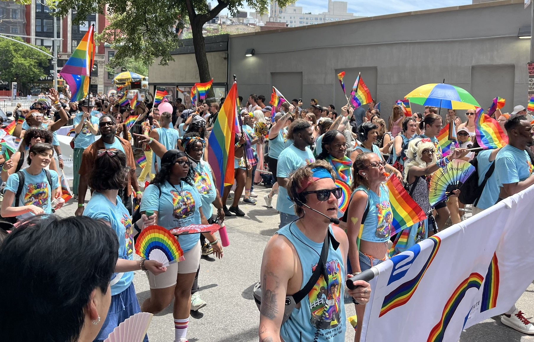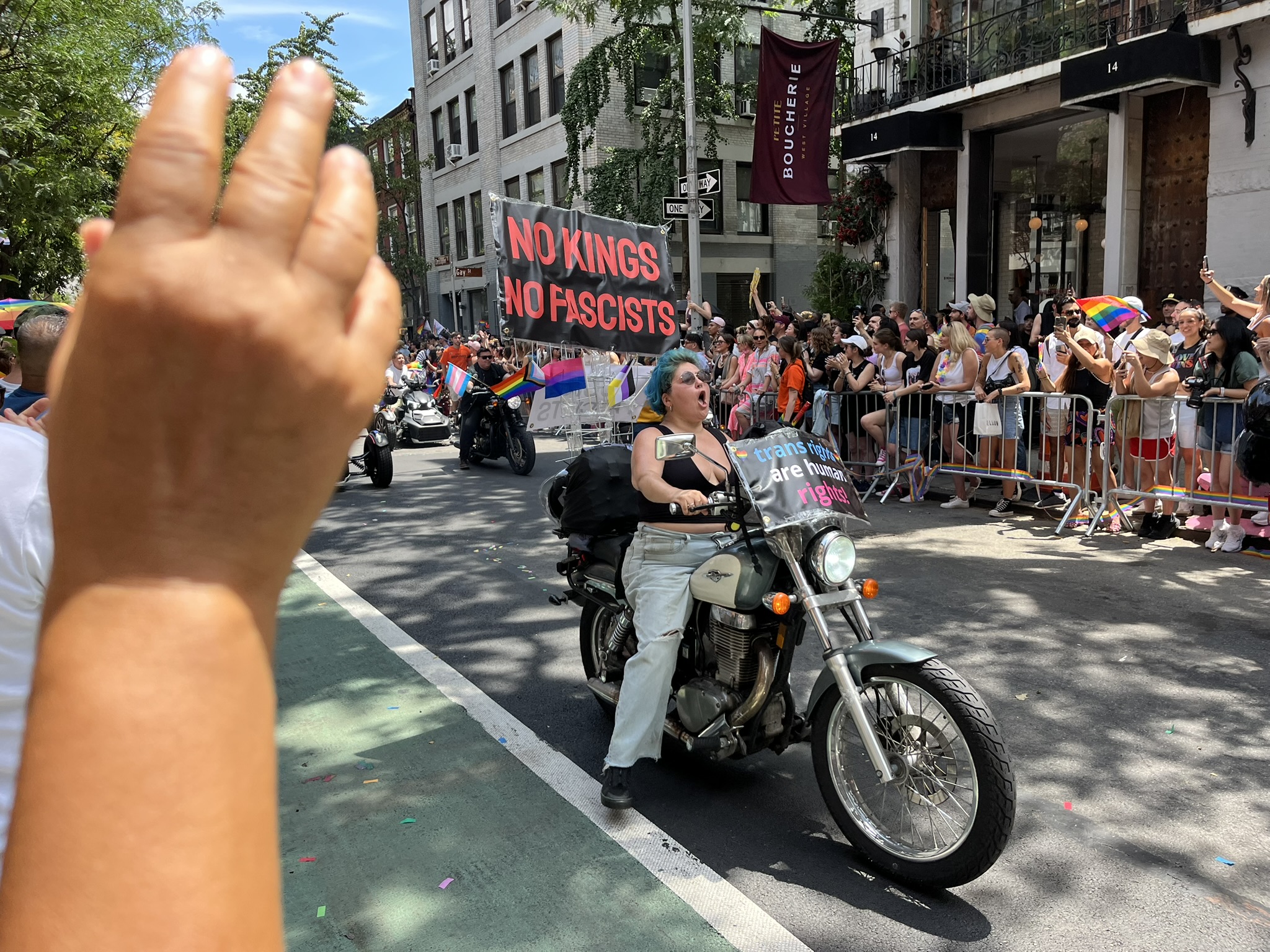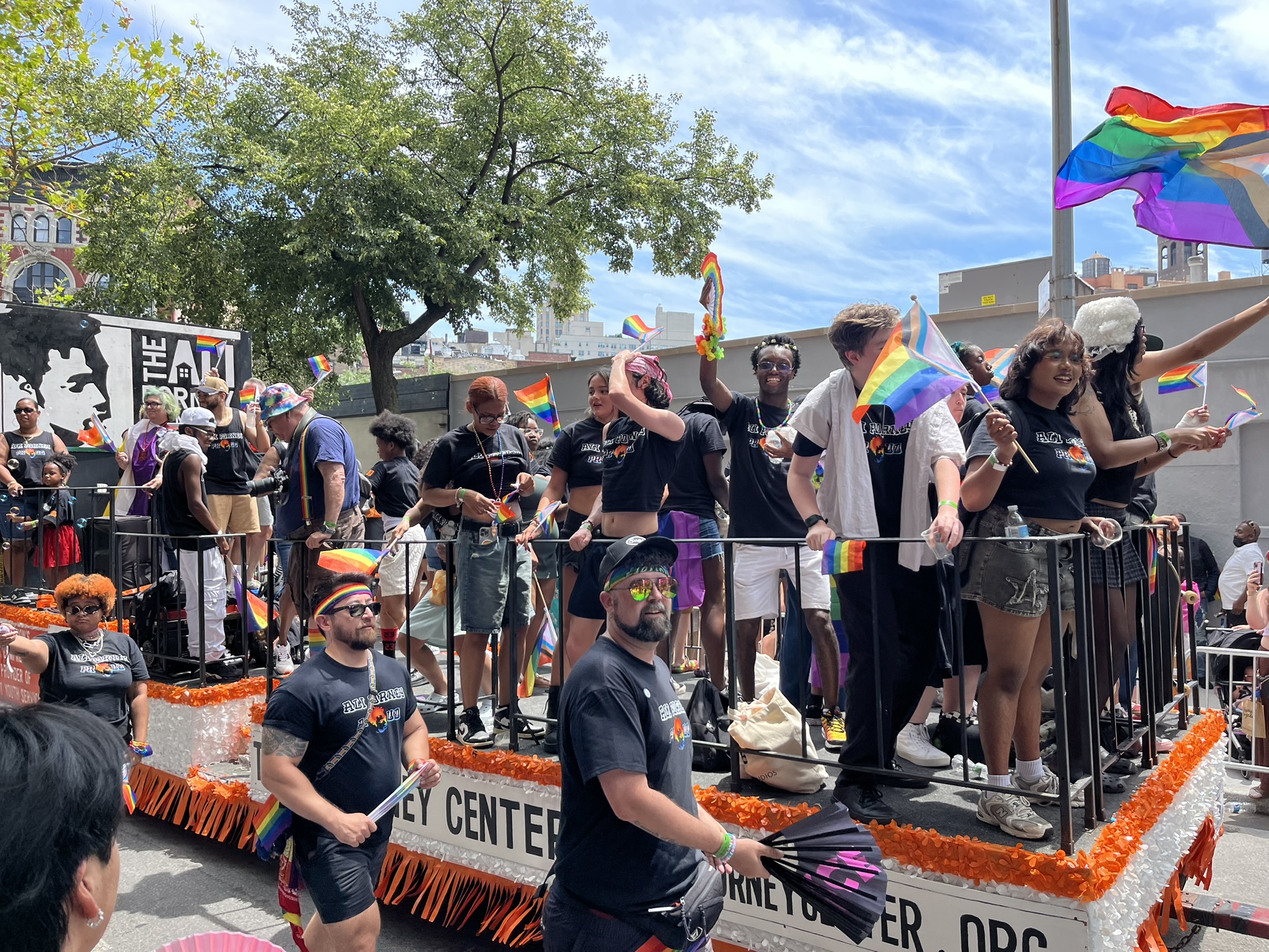 Am vorerst letzten Tag in New York gibt es noch mal ein ganz besonderes Highlight, der Christopher Street Day. Und zwar das Original, findet heute statt. Wir machen uns früh auf und stürzen uns in das sehr schräge Getümmel. Am Bahnhof und auch danach überall in der Stadt sind die Leute verkleidet, und kaum einer hat nicht eine Regenbogenfahne dabei und entsprechende Klamotten an. Sogar die Spitze des One World Trade Centers war am Abend davor in Regenbogenfarben beleuchtet. Die Strecke ist, wie bei uns beim Karneval, von viel Polizei gesichert, und überall sind Absperrungen. Die Wagen mit Fußvolk kommen nicht alle hintereinander, sondern es gibt manchmal auch 10 Minuten Pause, bis der Nächste kommt. In der Regel wird auf den Wagen und dahinter zu lauter Musik getanzt, und das Publikum jubelt und kreischt. Natürlich gibt es jede Menge Botschaften gegen die aktuelle Politik, die oft sehr lustig zum Besten gegeben werden. Etwas irritierend ist, dass die ersten paar Wagen von Politikern (alles Demokraten, natürlich) mit Wahlplakaten sind. Alles in allem hätten wir es uns fast noch etwas größer vorgestellt, aber es war ein echt großer Spaß.