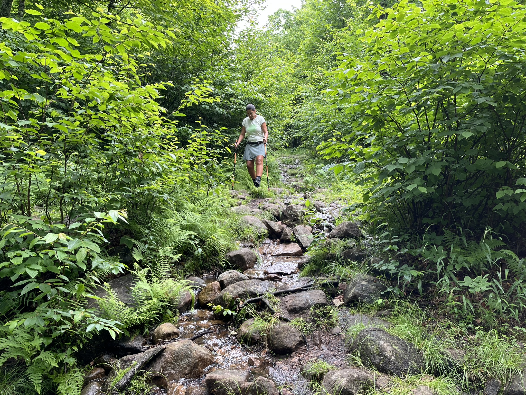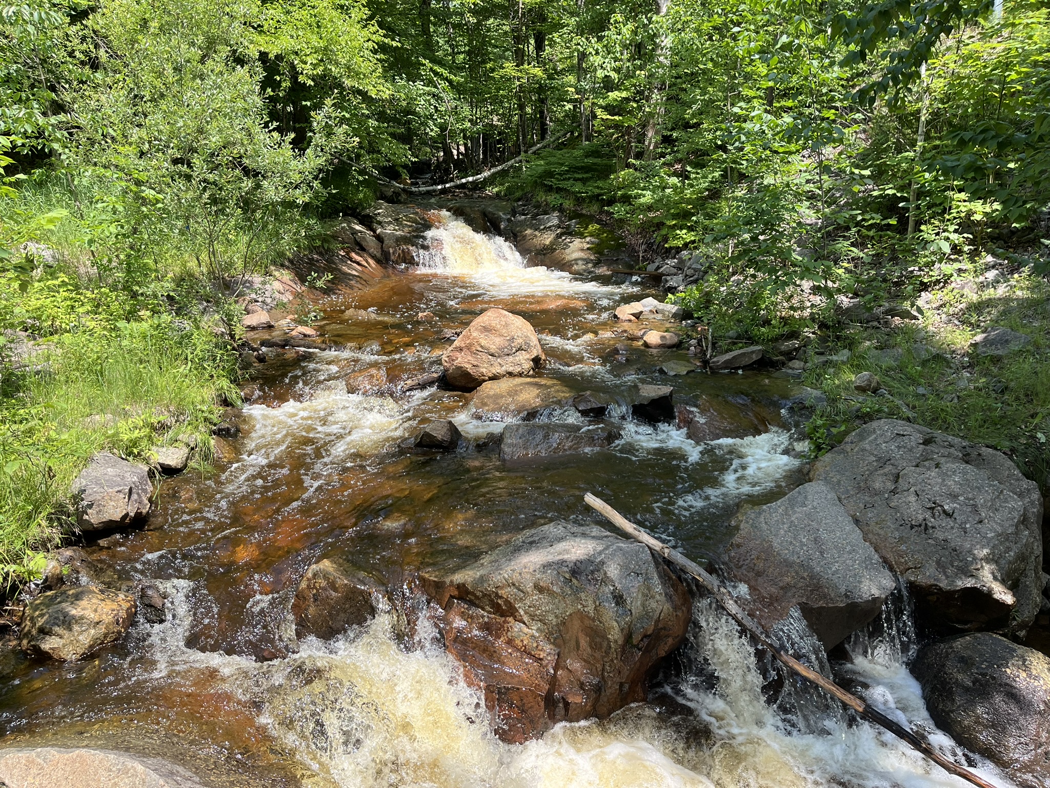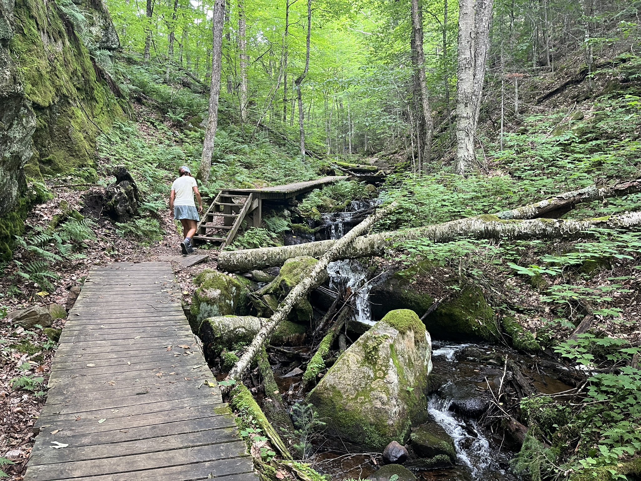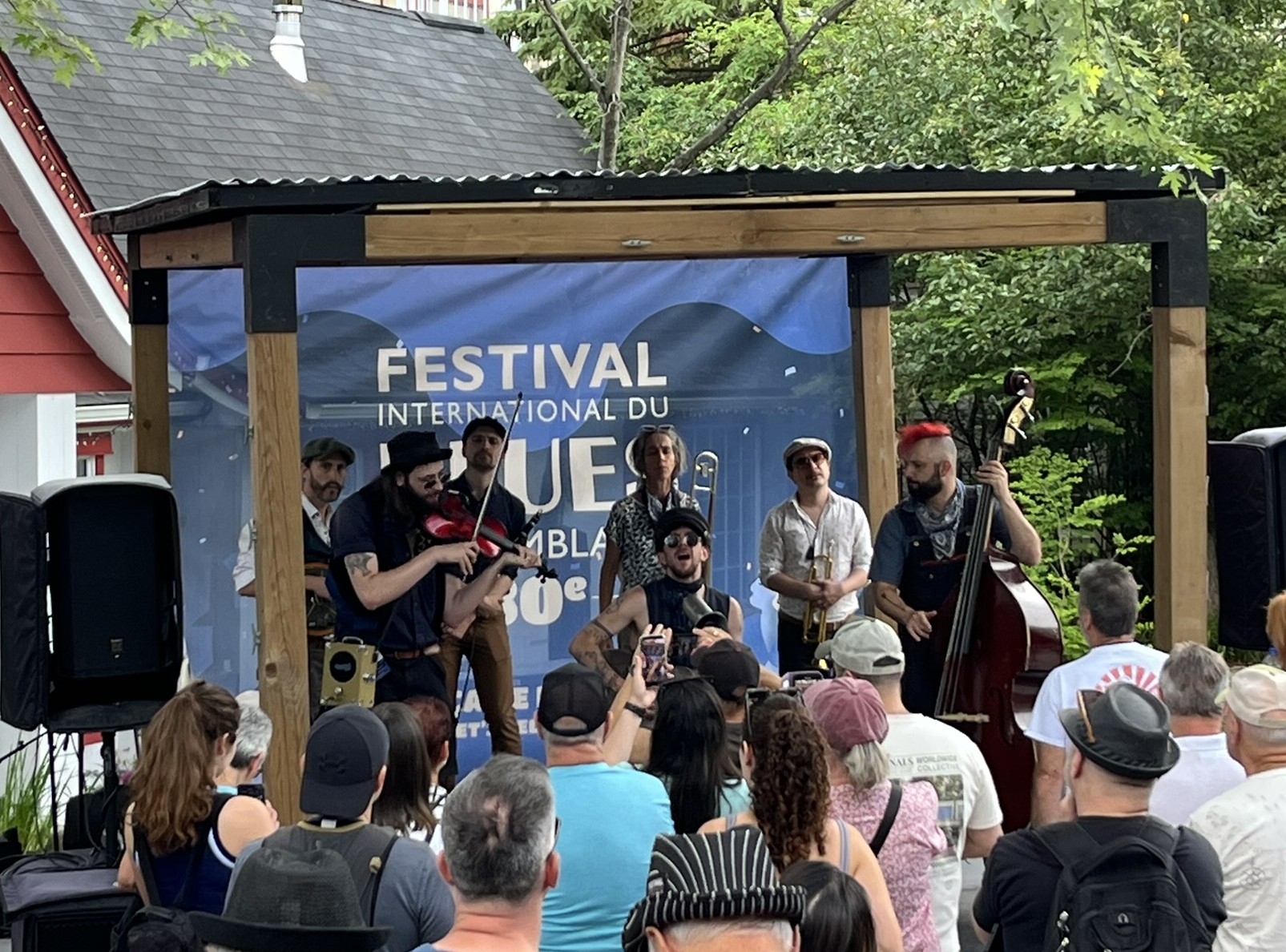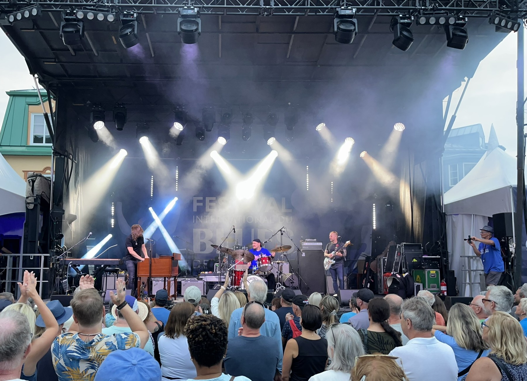 In der Nähe von Mont-Tremblant haben wir ein Zimmer in einer Herberge gebucht, die ruhig an einem See gelegen ist. Dort erfahren wir, dass es gerade in Mont-Tremblant ein mehrtägiges Bluesfestival gibt. Was haben wir doch Glück mit unserer Terminplanung in Kanada. Erst kommen wir am Canada Day in Niagara an, und jetzt gibt es hier ein großes Festival. Es gibt insgesamt 4 Bühnen, die über den Ort verteilt sind. Der Ort Mont-Tremblant ist recht mondän. Es erinnert etwas an die Städtchen in Österreich. Im Winter ist das hier ein durchorganisierter Skiort mit Liften und allem, was man braucht. Wir nutzen den nächsten Morgen erstmal für einen schönen Spaziergang um den Ort herum und schauen dann mal, was das Festival zu bieten hat. Es geht über 5 Tage, und es treten über 100 Acts auf. Es gibt kleine Bands, die immer wieder zwischendurch auf den kleinen Bühnen spielen, und auch große Bands, die echt gut abrocken und gepflegten Blues spielen. Das Highlight ist für uns am Abend Lachy Doley, ein australischer Rock-Blues-Musiker, der eine sehr coole Show bietet. Das gute Wetter lässt uns am nächsten Tag im Stich. Wir wollen durch den Wald die Berge hinaufmarschieren und bekommen ein paar ordentliche Regenschauer ab. Die führen dazu, dass die Wege sich in Bäche verwandeln und wir komplett vermatscht wieder runterkommen. Egal, hat trotzdem Spaß gemacht, und wir schauen uns am Nachmittag noch ein paar weitere Shows an und trocknen dabei wieder. Endlich mal wieder ordentlich Live-Musik! Wir hatten schon Entzugserscheinungen und sind total glücklich.