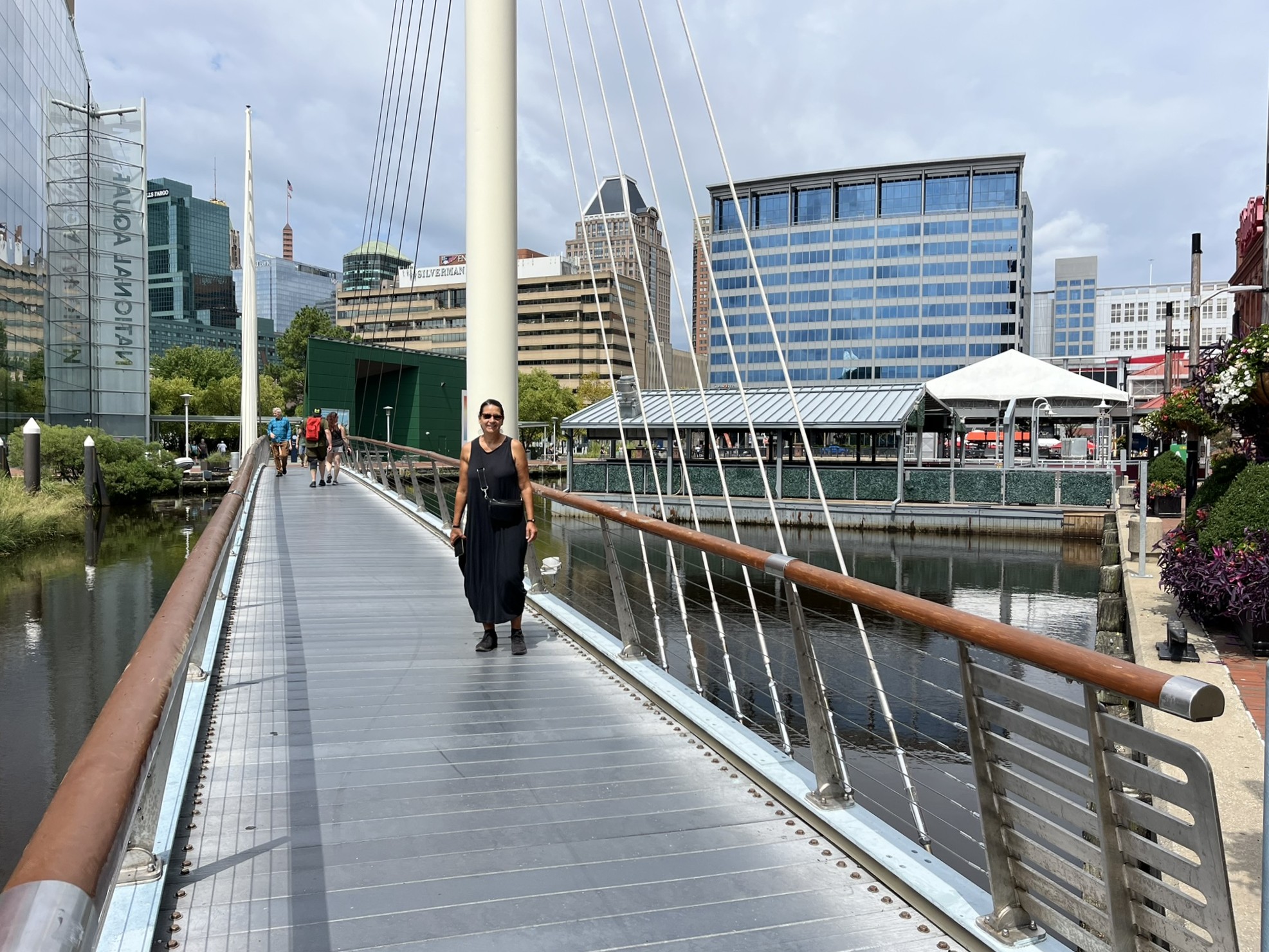 Wir sind sehr gespannt, was uns an unserem nächsten Ziel erwartet. Gilt doch Baltimore als eine der interessantesten Städte der Ostküste. Wir schaffen es mangels Wind nicht, die 46 sm bis dorthin zu segeln, und legen einen Stopp in einer wunderschönen Ankerbucht auf der anderen Seite der Chesapeake Bay ein. Am nächsten Tag ist dann der Wind gut, und wir können fast bis in die Stadt hinein segeln. Dort gibt es einen erstklassigen Ankerplatz in der Nähe eines Beibootsteges, von wo man schnell im Zentrum ist. Bei der Einfahrt kommen wir an einer Brücke vorbei, die letztes Jahr von einem Frachter gerammt wurde und komplett einstürzte.