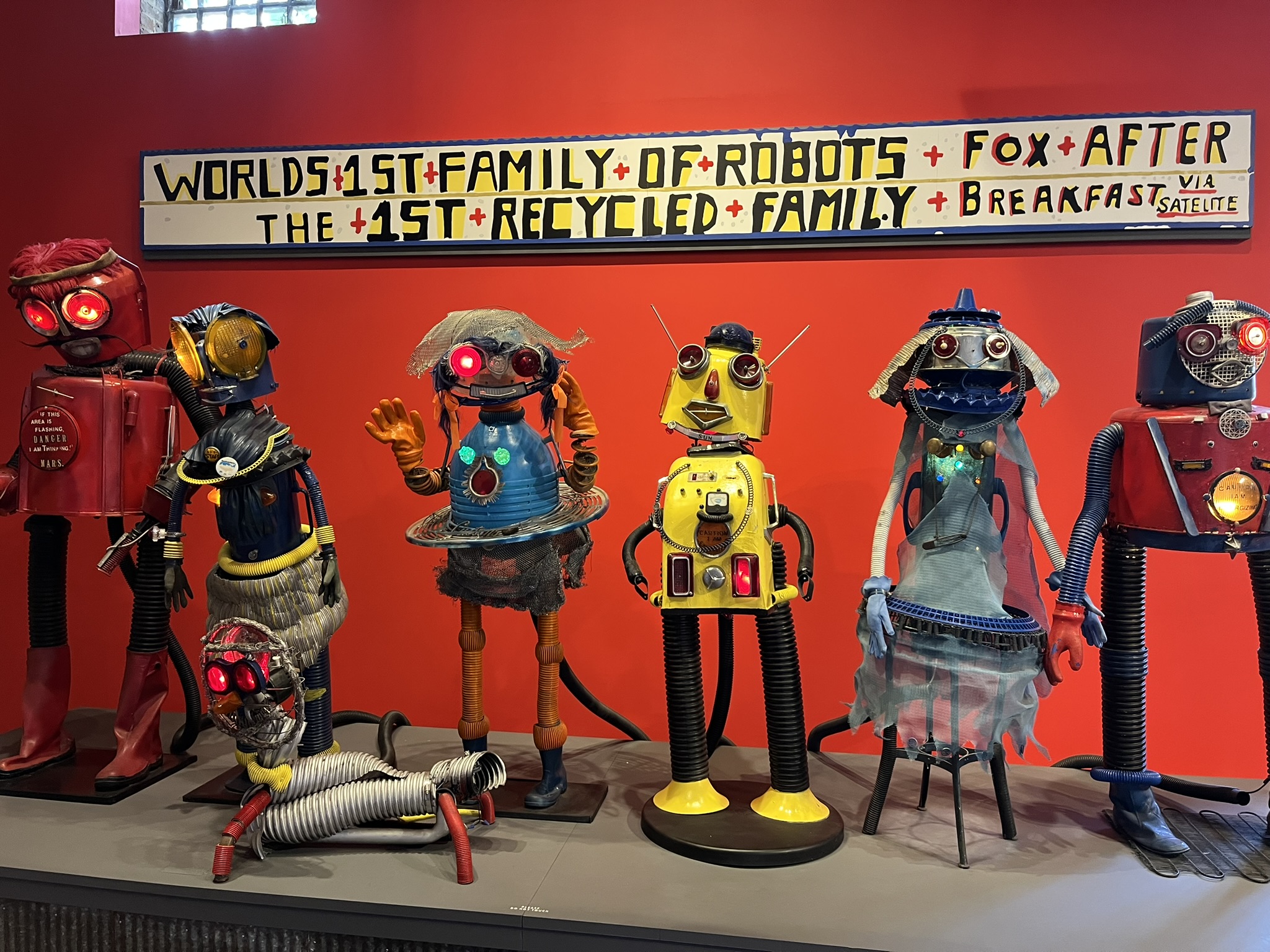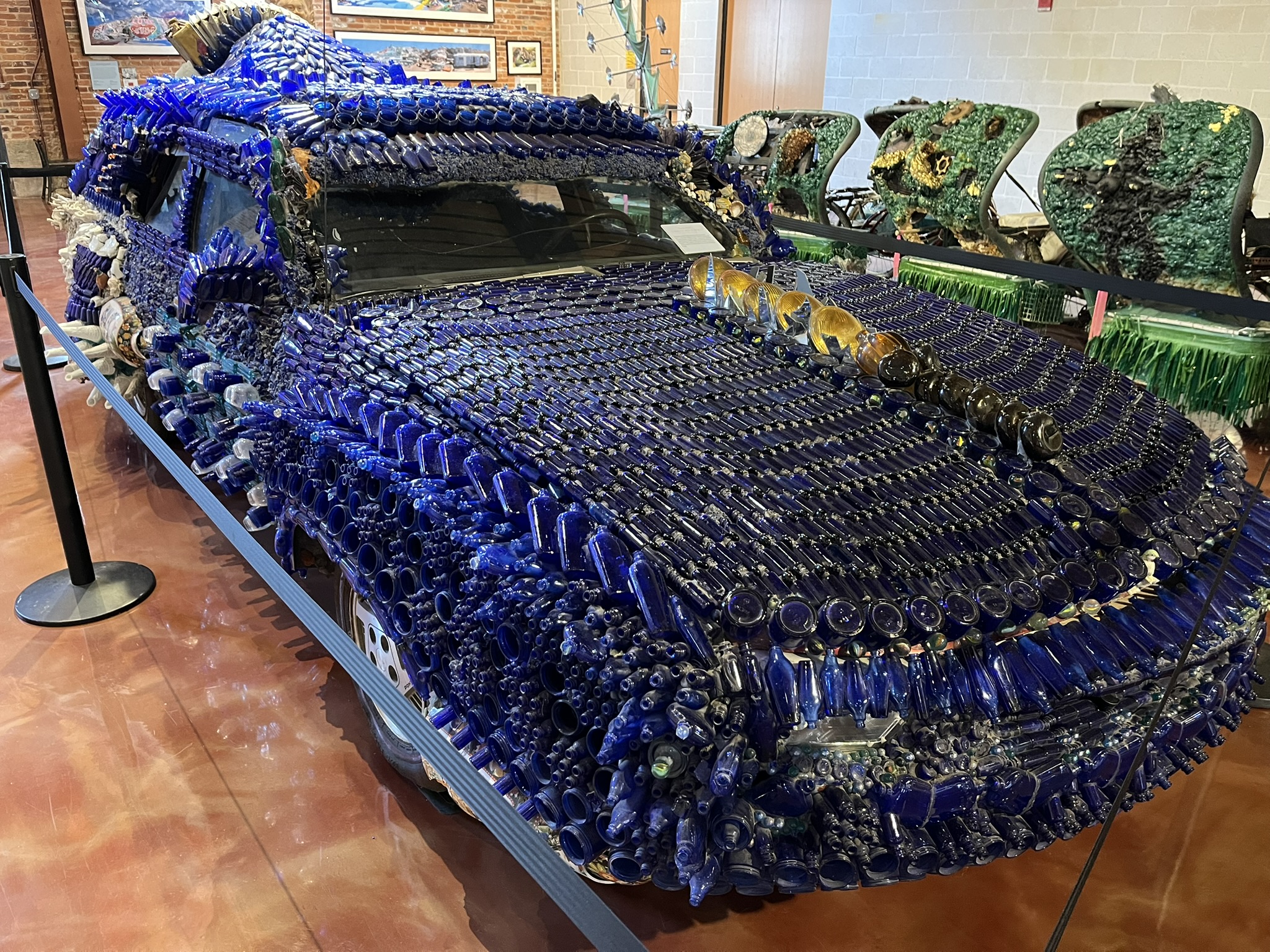Wir gehen am Nachmittag in das außergewöhnliche Museum of American Visionary Arts. Dort hängt teilweise sehr spektakuläre und lustige Kunst, wie riesige verrückte Figuren oder verzierte Autos. Es gibt aber auch die sehr nachdenkliche und bedrückende Kunst einer Holocaust-Überlebenden, die ihre Geschichte während der Nazizeit in Form von gestickten Bildern verarbeitet hat.