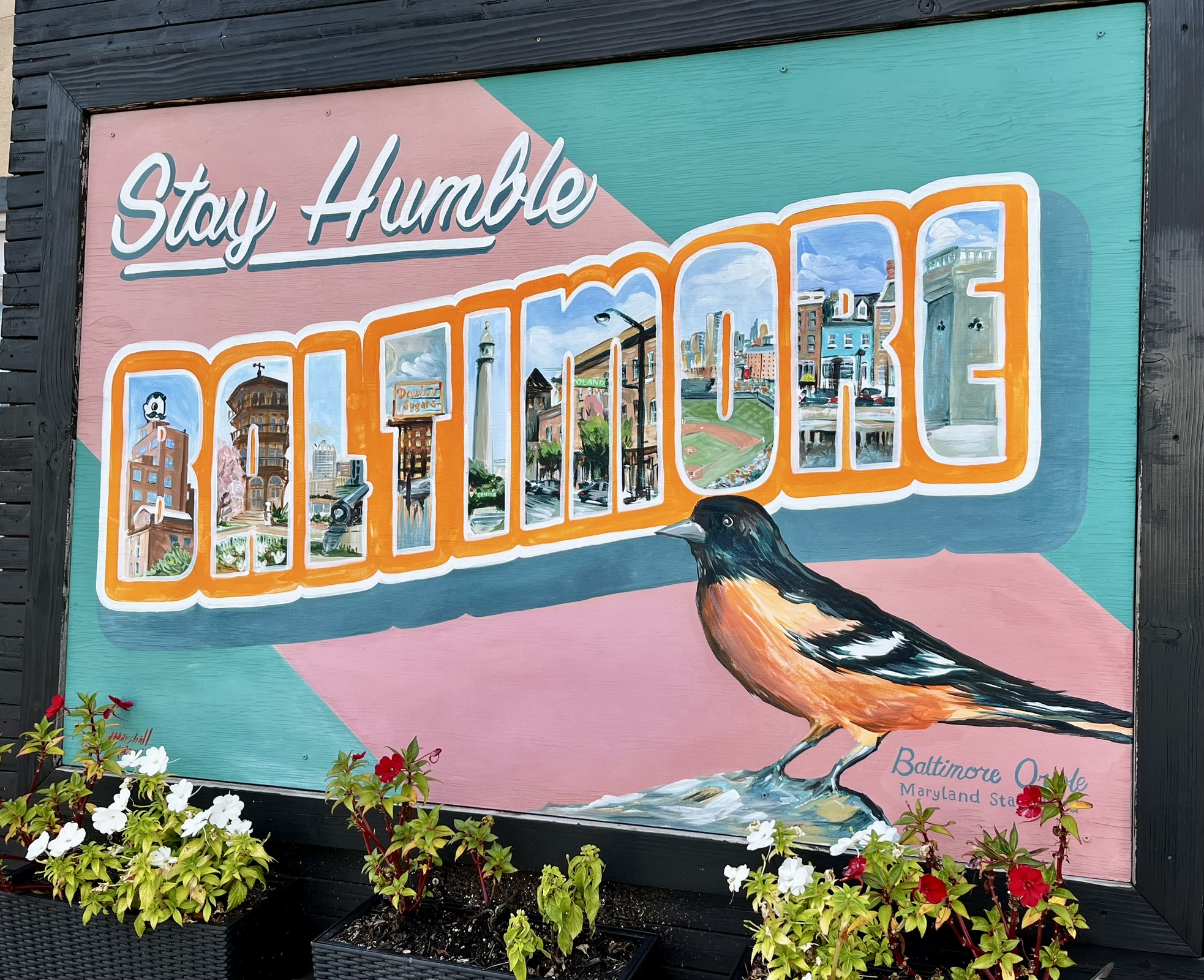 Baltimore ist sehr vielseitig, sagt man. Zum einen gibt es wunderschöne Ecken und Viertel mit netten Häusern, Kunst, Kultur und gemütlichen Cafés. Zum anderen ist Baltimore allerdings in Sachen Kriminalität in den Top-10 der USA. Es gibt Viertel, wo man sich als Tourist nicht aufhalten sollte. Wir bekamen von unserem Freund Willi den Tipp von einer alten, sehr erfolgreichen Serie „The Wire“, die diese Thematik in der Stadt sehr realistisch darstellt. Wir nehmen uns etwas mehr Zeit und wollen in den nächsten 5 Tagen Baltimore ausgiebig erkunden. Der Name Charm City kommt übrigens aus einem Marketing-Gag aus den 70er Jahren, in denen die Stadt versucht hat, ihr Image zu verbessern und mehr Touristen anzulocken. Es wurde daraufhin vor allem von der Bevölkerung angenommen (und weniger von auswärtigen Besuchern), die den Charm in diversen Bezeichnungen ihrer Läden zum Beispiel aufgenommen haben. Ein Eisladen heißt statt Creamery halt Charmery.