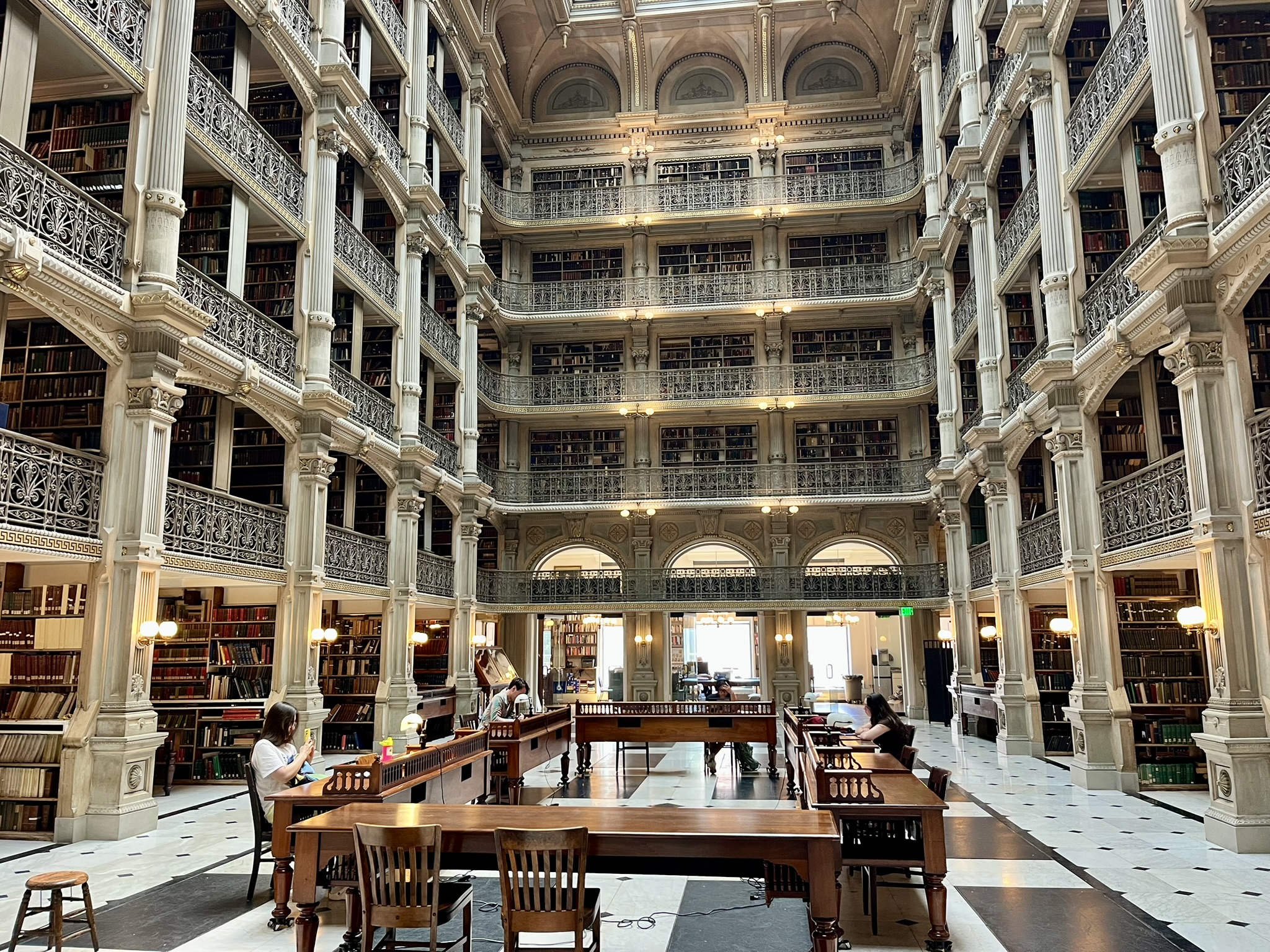 Die nächsten Tage verbringen wir dann wieder touristischer Natur. Wir fahren ins Viertel Hampdon, wo es viele kleine Boutiquen und Antiquitätenläden gibt. Dann verbringen wir einen Tag in Mount Vernon, einem Viertel, das sich um ein riesiges Washington Memorial herum aufgebaut hat. Dort besuchen wir die George Peabody Library. Das ist eine völlig beeindruckende Bibliothek aus dem Jahre 1878. Direkt auf der anderen Straßenseite ist das Walters Arts Museum. Es ist kostenlos und beinhaltet eine unglaubliche Anzahl an alten Bildern und sehr alten Artefakten. Die Räume sind alle nach Themengebieten wie das alte Ägypten, das alte Griechenland, Amerikanische Geschichte, Europäische Geschichte usw. aufgeteilt. Wir sind irgendwann so überfrachtet, dass wir richtig erschöpft sind. Auf einer längeren Busfahrt kommen wir auch mal durch die Viertel, in die es die Besucher weniger hinzieht. Und man muss schon sagen, da wird sich von Seiten der Stadt anscheinend nicht sehr drum gekümmert, im Gegensatz zu den Hafenvierteln.