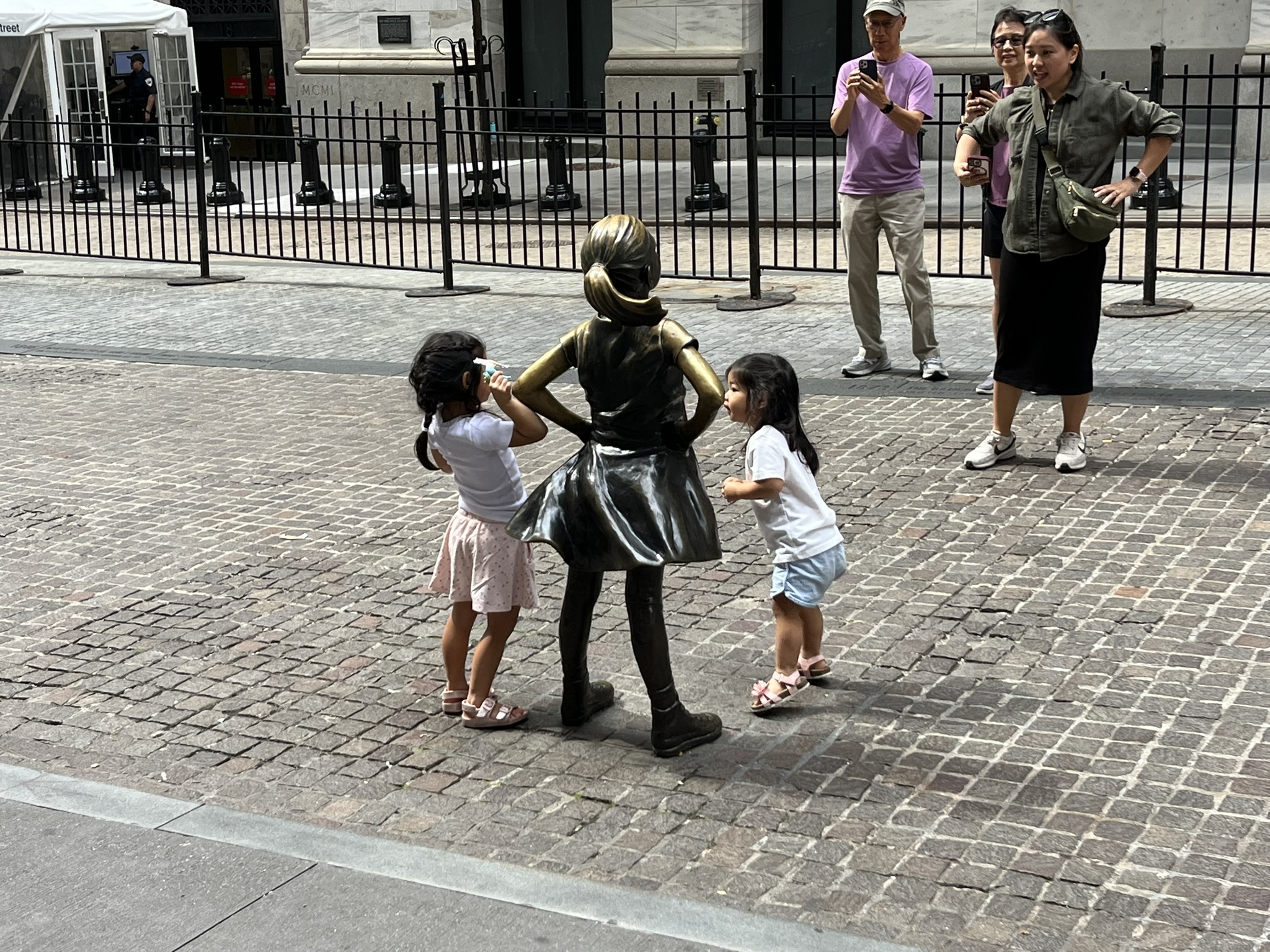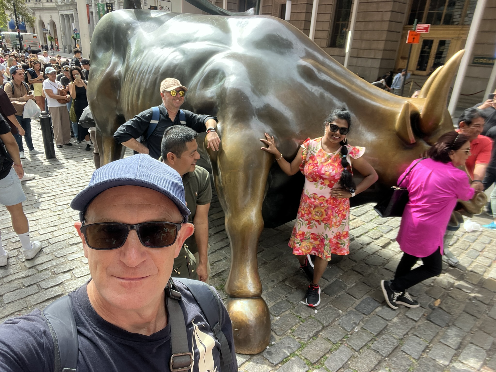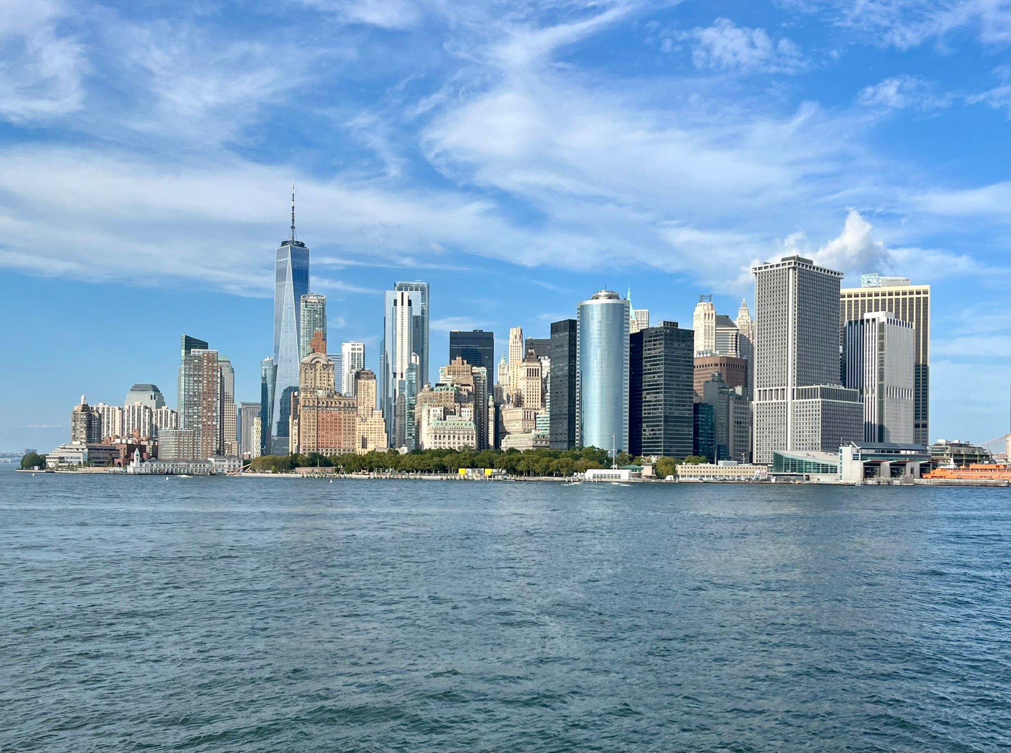 Am Montag fahren wir mit der Fähre von Jersey direkt rüber zur Südspitze und besuchen Ground Zero. Natascha und ich waren vor 8 Jahren schon mal hier, aber es ist immer wieder ergreifend, die beiden Löcher der Türme mit dem hineinfließenden Wasser und den Namen der vielen Opfer drum herum zu sehen. Inzwischen sind auch alle Gebäude, Bahnstationen und die vielen Gedenkstätten fertig, so dass normaler Alltag herrscht. Wir schlendern weiter zur unvermeidlichen Wall Street und zum Charging Bull. Die Schlange, um sich mit dem Bullen fotografieren zu lassen, ist unglaublich lang. Zum Abschluss fahren wir noch mit der kostenlosen Fähre rüber nach Staten Island. Diese Insel ist der südlichste der fünf New Yorker Stadtbezirke und hat eigentlich nichts Weiteres zu bieten. Das Einzige ist die schöne Fahrt mit der Fähre, die auch an der Freiheitsstatue und Ellis Island vorbeifährt.