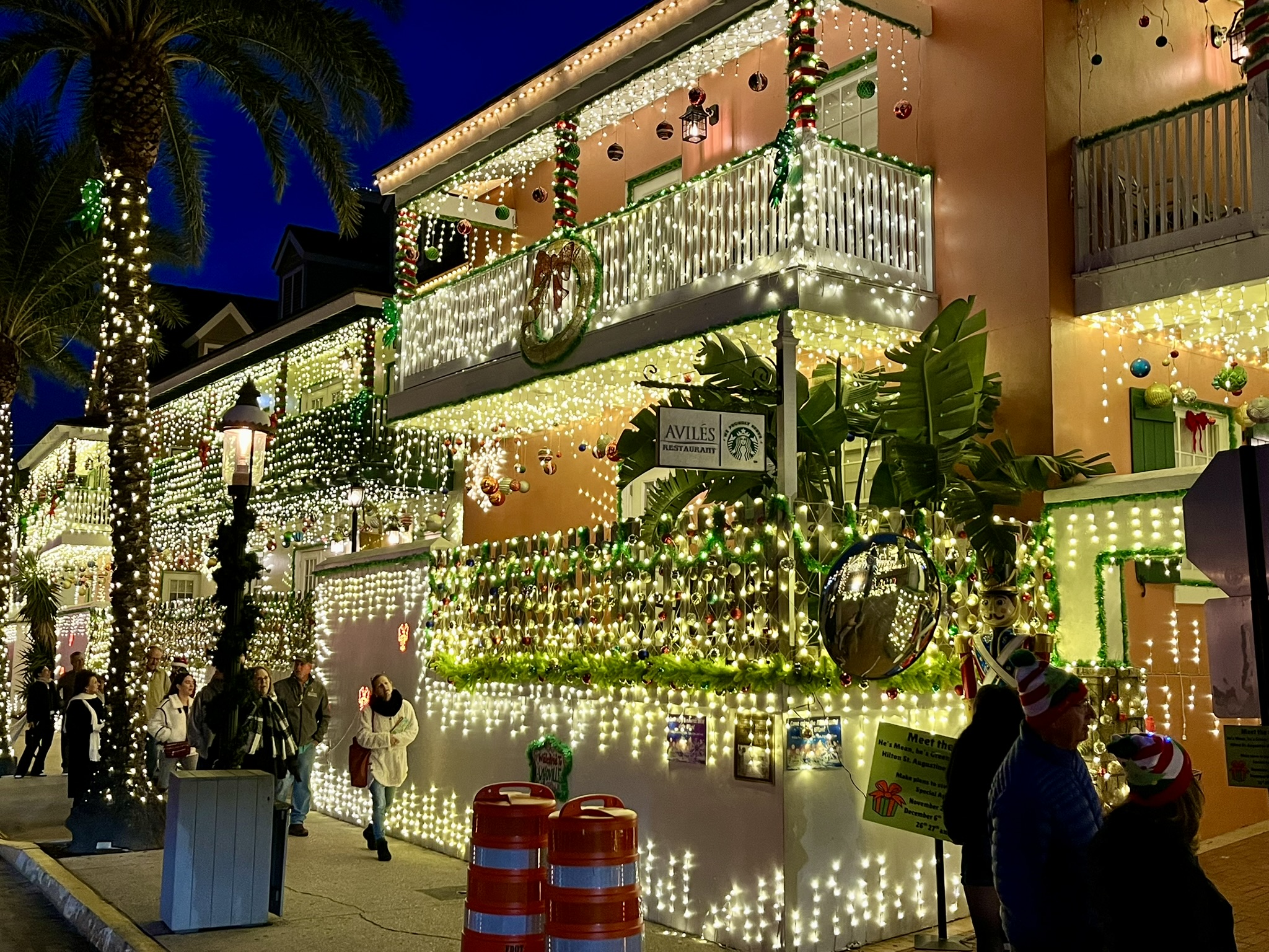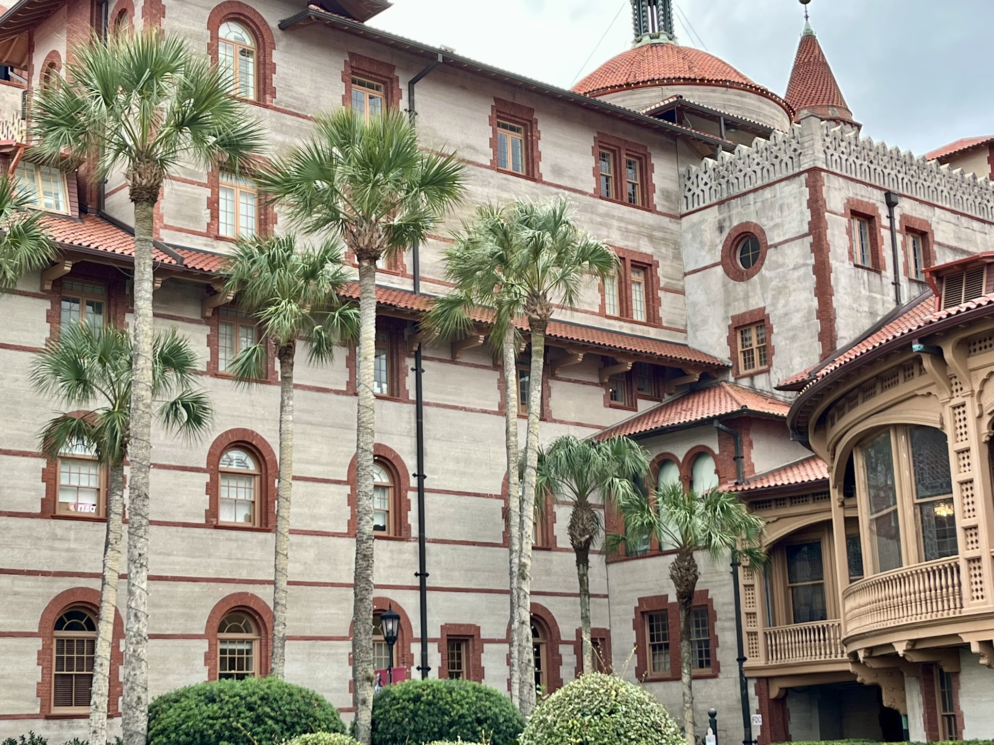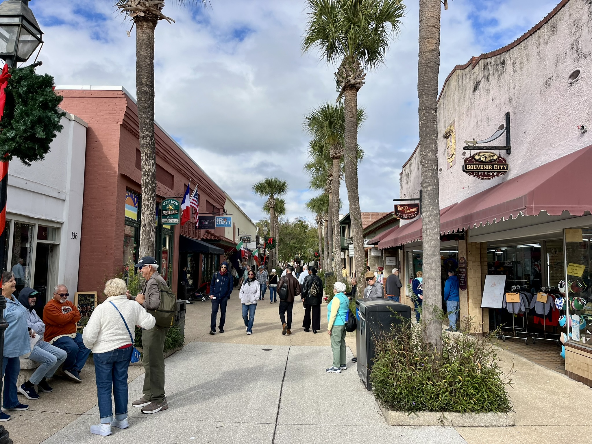 Am nächsten Morgen wird erstmal der neue Inverter eingebaut. Er hat die Aufgabe, unseren 12V Bordstrom in 220V normalen Strom umzuwandeln. Dieser ist allerdings amerikanischer Bauart und macht nur 110V. Ist aber nicht schlimm, die Geräte kommen damit gut klar. Das sind hauptsächlich Auflader diverser Geräte und Starlink. Danach machen wir uns auf in den Ort und müssen erstmal 15 Dollar für das Abstellen des Beibootes im Hafen abdrücken. Dafür dürfen wir allerdings die Duschen benutzen, was wir am Abend auch ausgiebig machen. Dafür sind wir aber auch mitten in der Stadt und können uns direkt ins Getümmel stürzen. St. Augustine behauptet von sich, die älteste Stadt der USA zu sein. Die Geschichte ist sehr wechselhaft, was man auch an den unterschiedlichen Baustilen in der Stadt erkennen kann. Gegründet wurde sie 1565 von Spaniern. Danach gab es im Laufe der Jahrhunderte mehrere Wechsel der Herrschaft mit England. Am auffälligsten sind die Bauten von einem gewissen Henry Flagler aus dem späten 19. Jahrhundert. Zu seinen prächtigen Gebäuden gehören einige Schulen und städtische Gebäude. Wir schlendern die St. George Street rauf, in der viele Läden, Restaurants und kaufkräftige Touristen sind. Wir bleiben extra bis zum Abend, weil die weihnachtliche Beleuchtung sehr berühmt ist. Dagegen ist das, was wir bei uns zu Hause haben, ein bisschen Kerzenlicht. Wirklich schön dieser Ort, aber eigentlich reicht auch ein Tag aus. Und da nur noch morgen der Wind für die Weiterfahrt passt, wird uns die Entscheidung abgenommen, ob wir noch länger bleiben wollen.