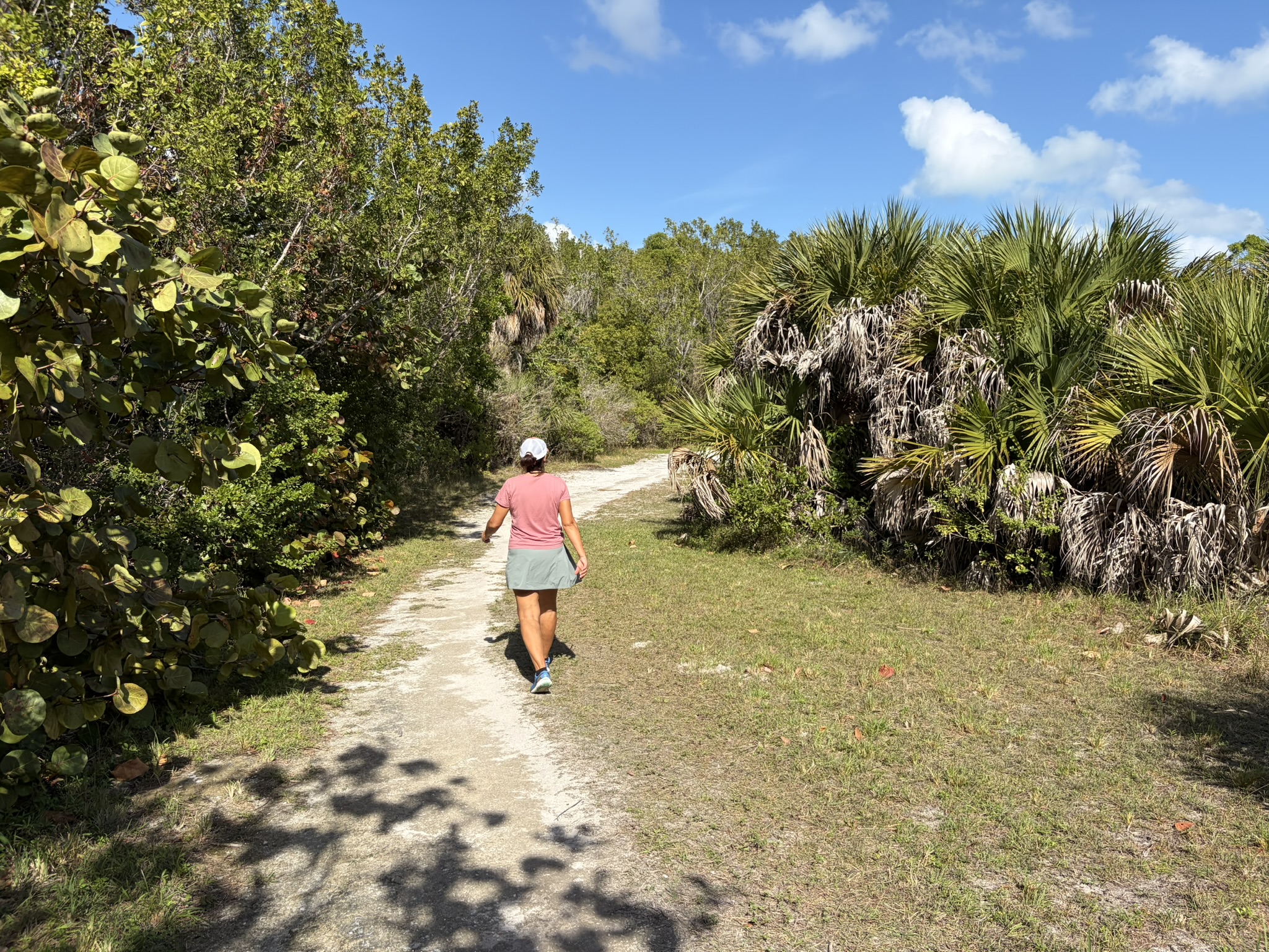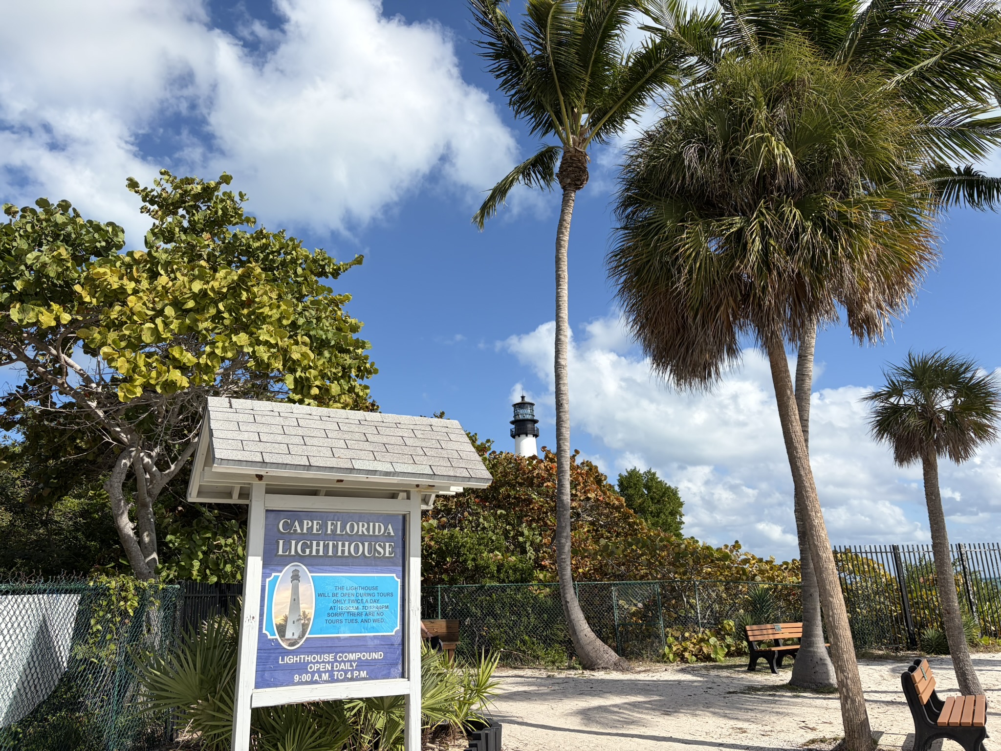 Auf Großstadt haben wir heute noch keine Lust und erkunden erstmal den Park vor uns. Er hat den leicht zu merkenden Namen „Bill Baggs Cape Florida State Park“. Wie die meisten State Parks in Amerika ist auch dieser Top-angelegt und gepflegt. Wir kommen mit dem Dinghy in einem kleinen Hafenbecken an, wo wir in der Ecke anlegen dürfen. Für den Parkeintritt und sein Boot soll man auf freiwilliger Basis 8 Dollar in einen Umschlag tun und in eine Box werfen. Als das erledigt ist, können wir uns die Füße vertreten. Wir laufen wunderschöne Wege runter bis zum Leuchtturm, auf den wir leider nicht mehr raufkommen, er macht schon mittags zu. Dafür gibt es ein kleines Museum, wo man die Wohnung der Leuchtturmwärter seit 1825 anschauen kann. Wir finden später noch einen kleinen Urwald mit verwurzelten Wegen, wo so ganz nebenbei vor Alligatoren gewarnt wird. Sehen tun wir keine, aber der Trial ist cool.